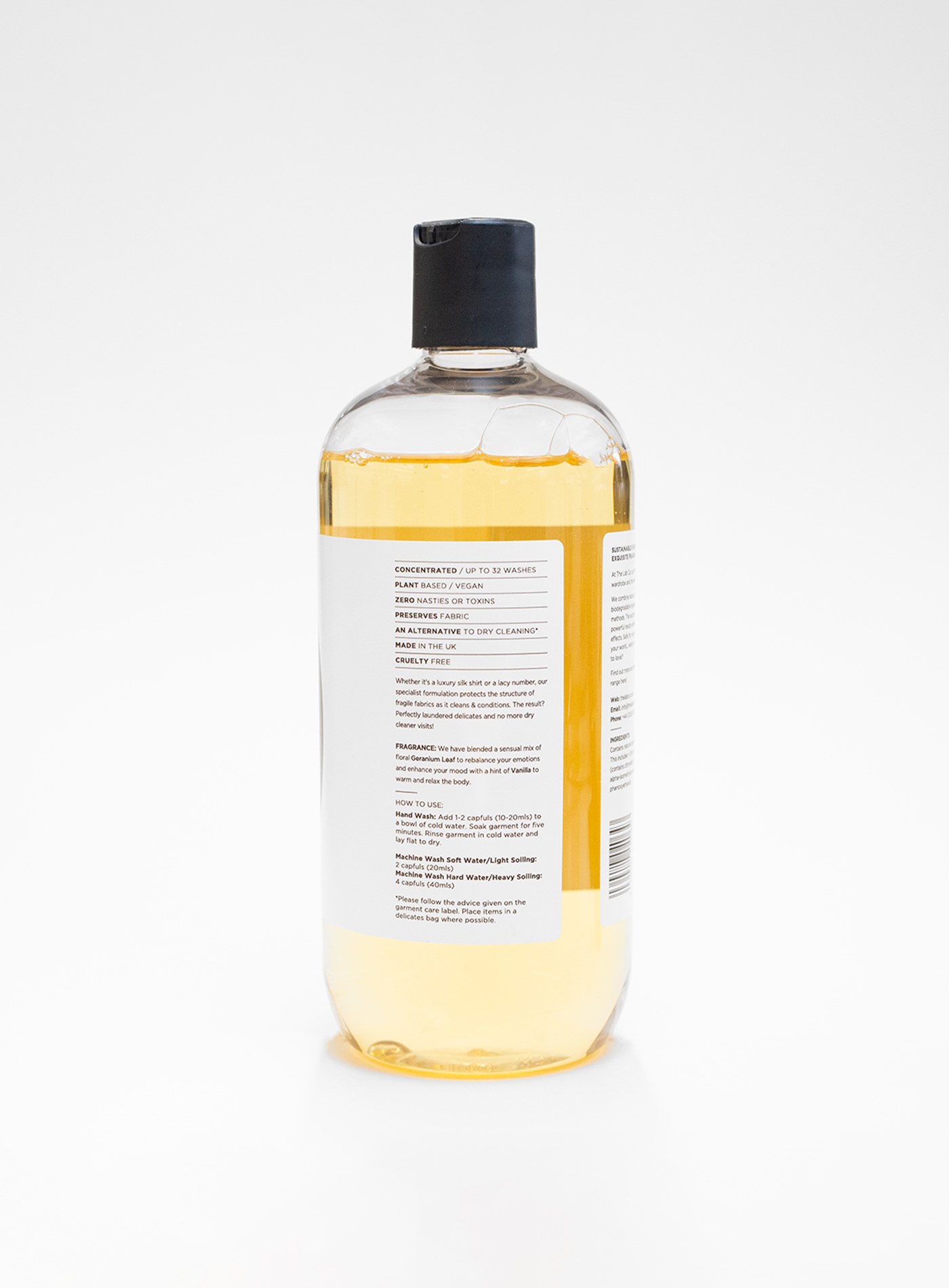 手洗:將 1-2瓶蓋(10-20 毫升)的量加入一盆冷水中,使之浸泡五分鐘。並用冷水沖洗衣物後平放晾乾。