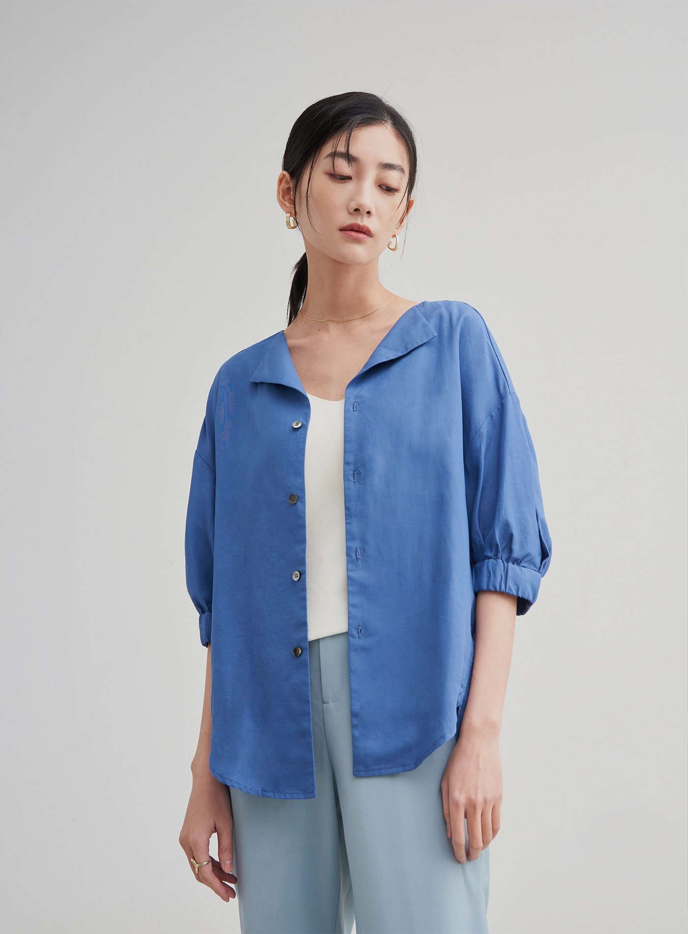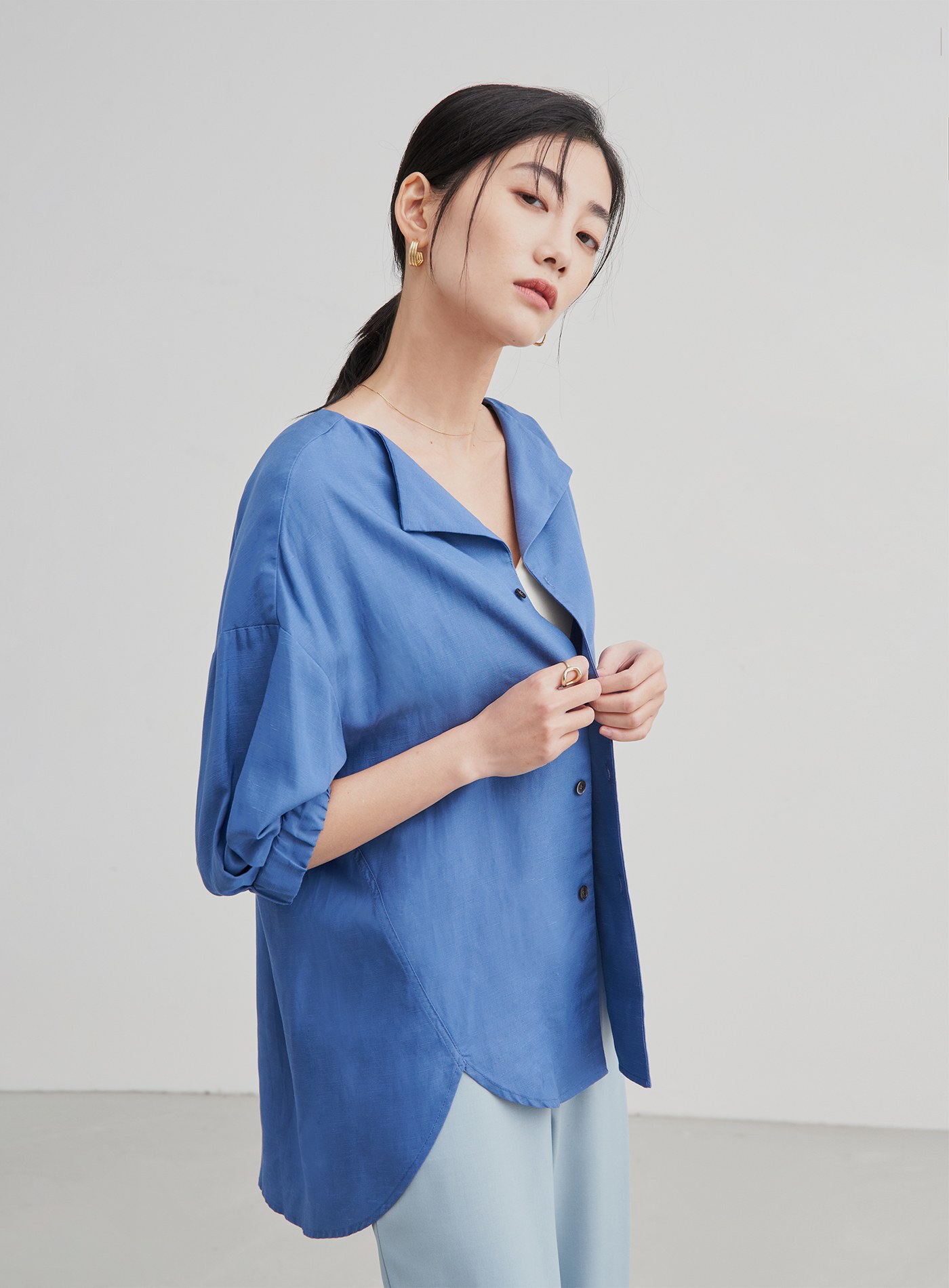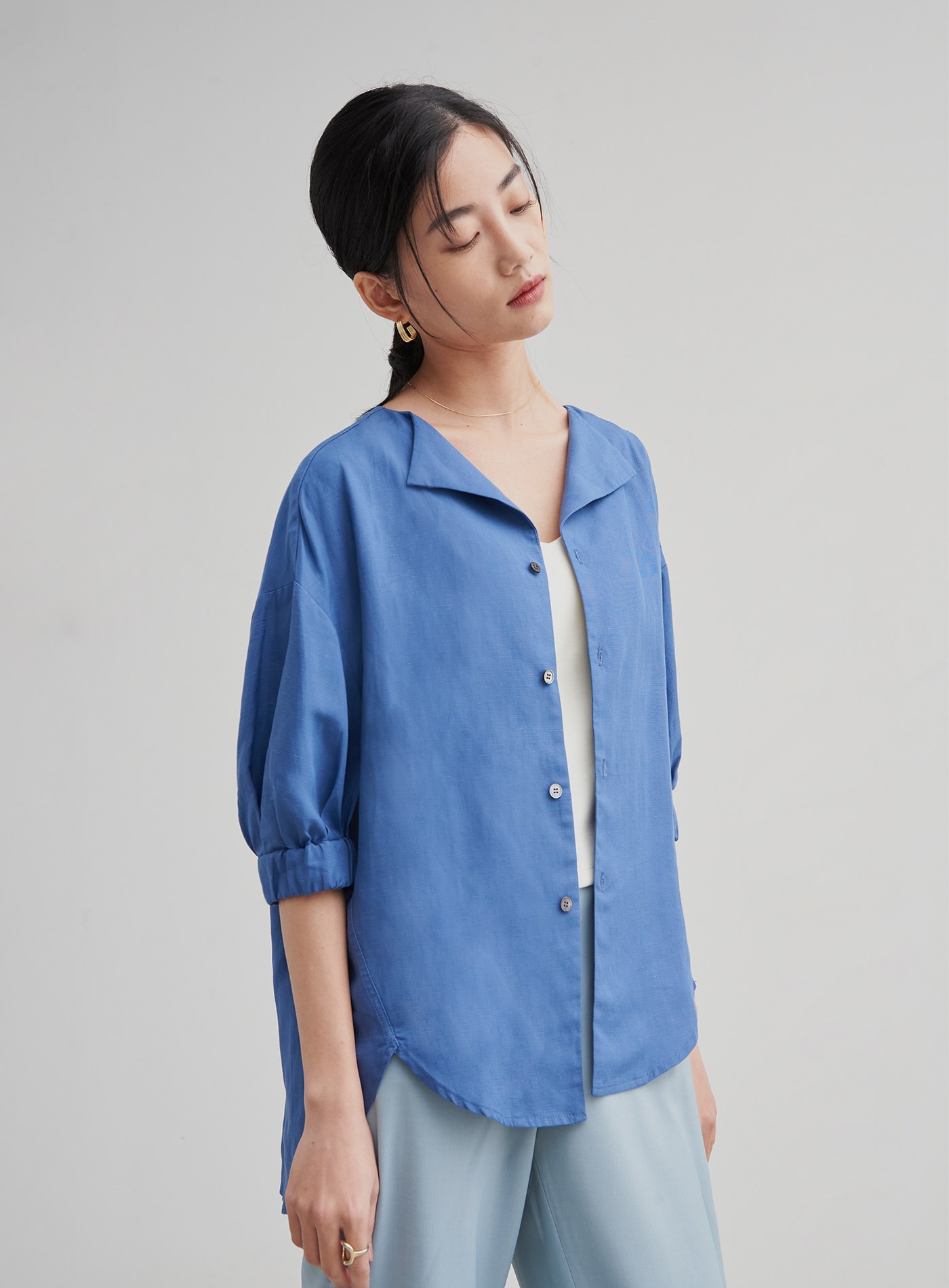 精緻小立領飄逸開襟襯衫$76 USD