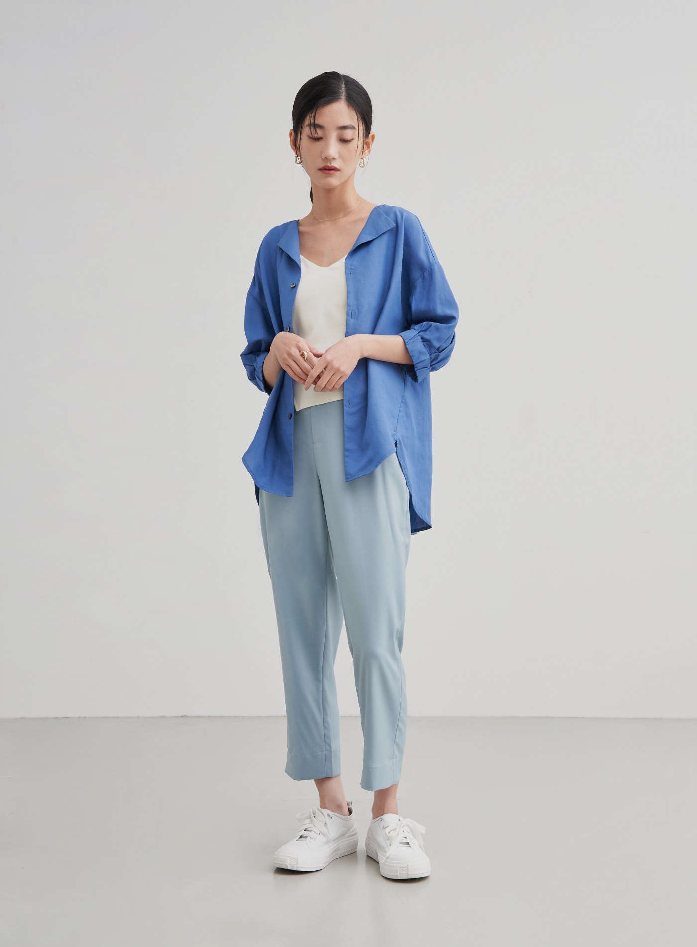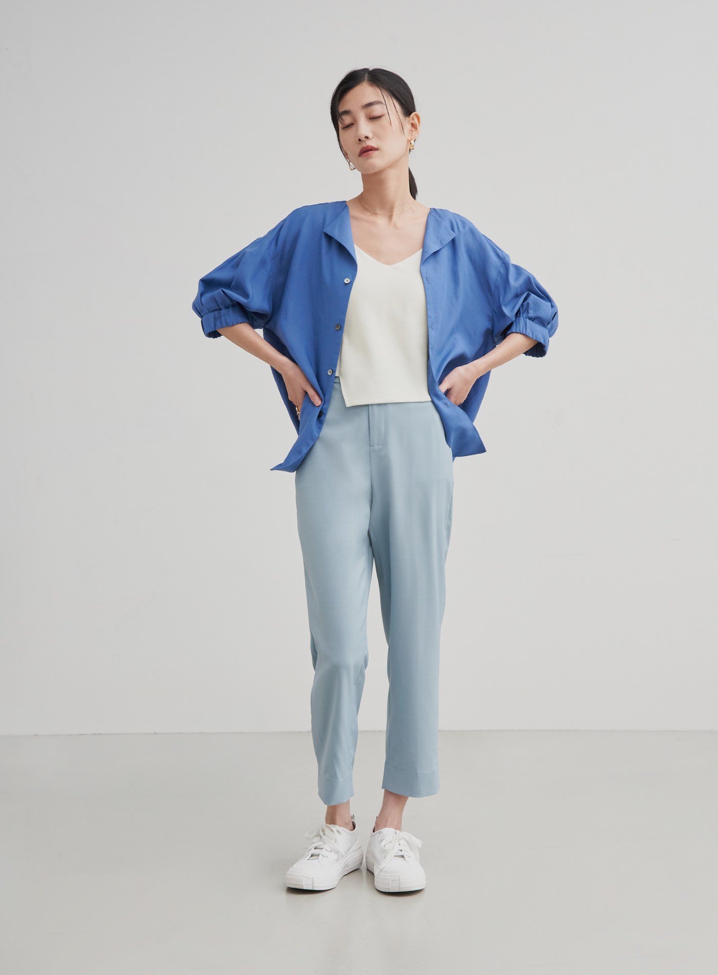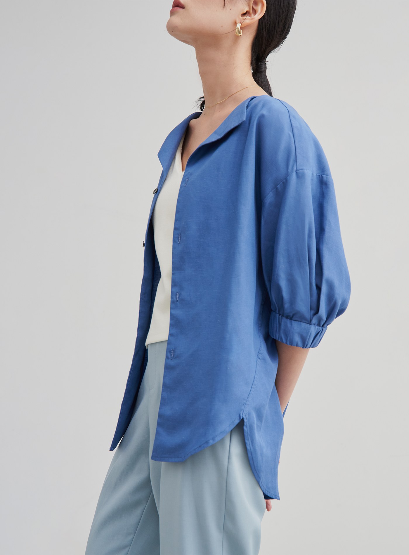精緻小立領飄逸開襟襯衫$76 USD