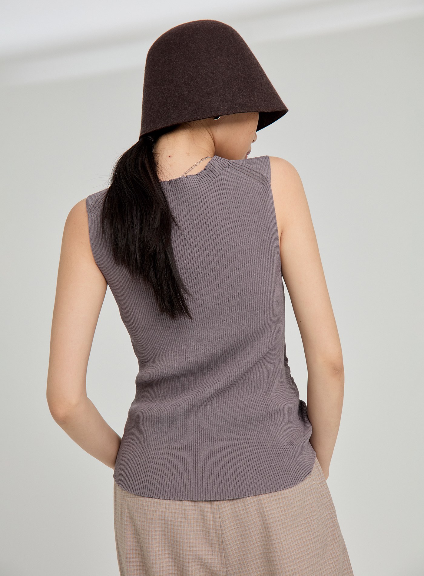 無袖格紋拼接背心上衣$41 USD