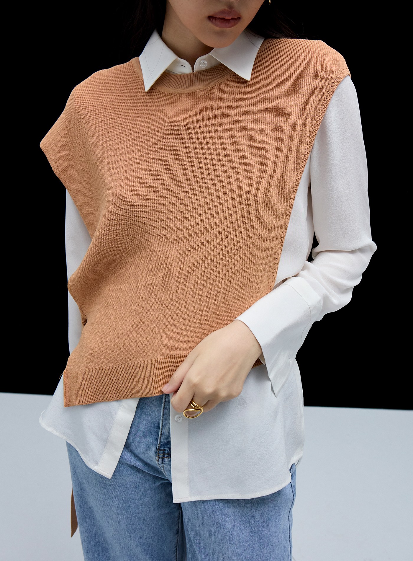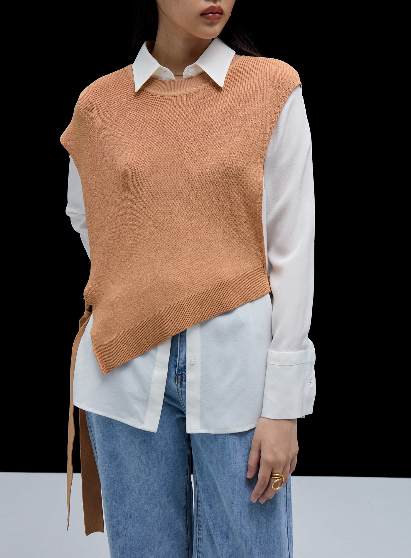 挖洞不對稱無袖背心$35 USD