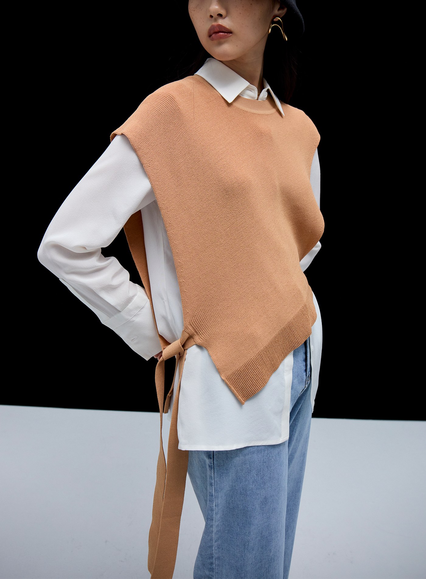 寬鬆羊毛落肩無袖上衣$51 USD