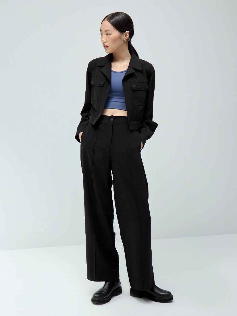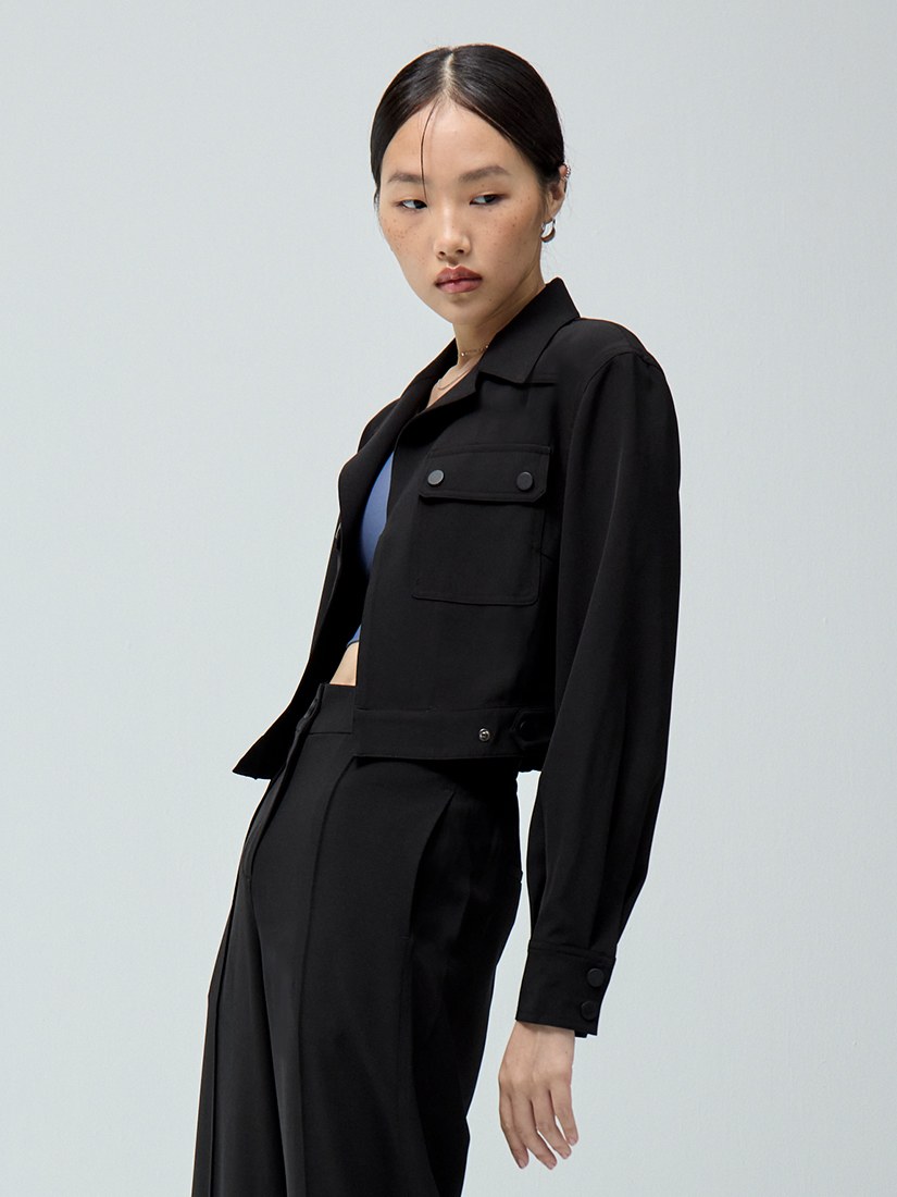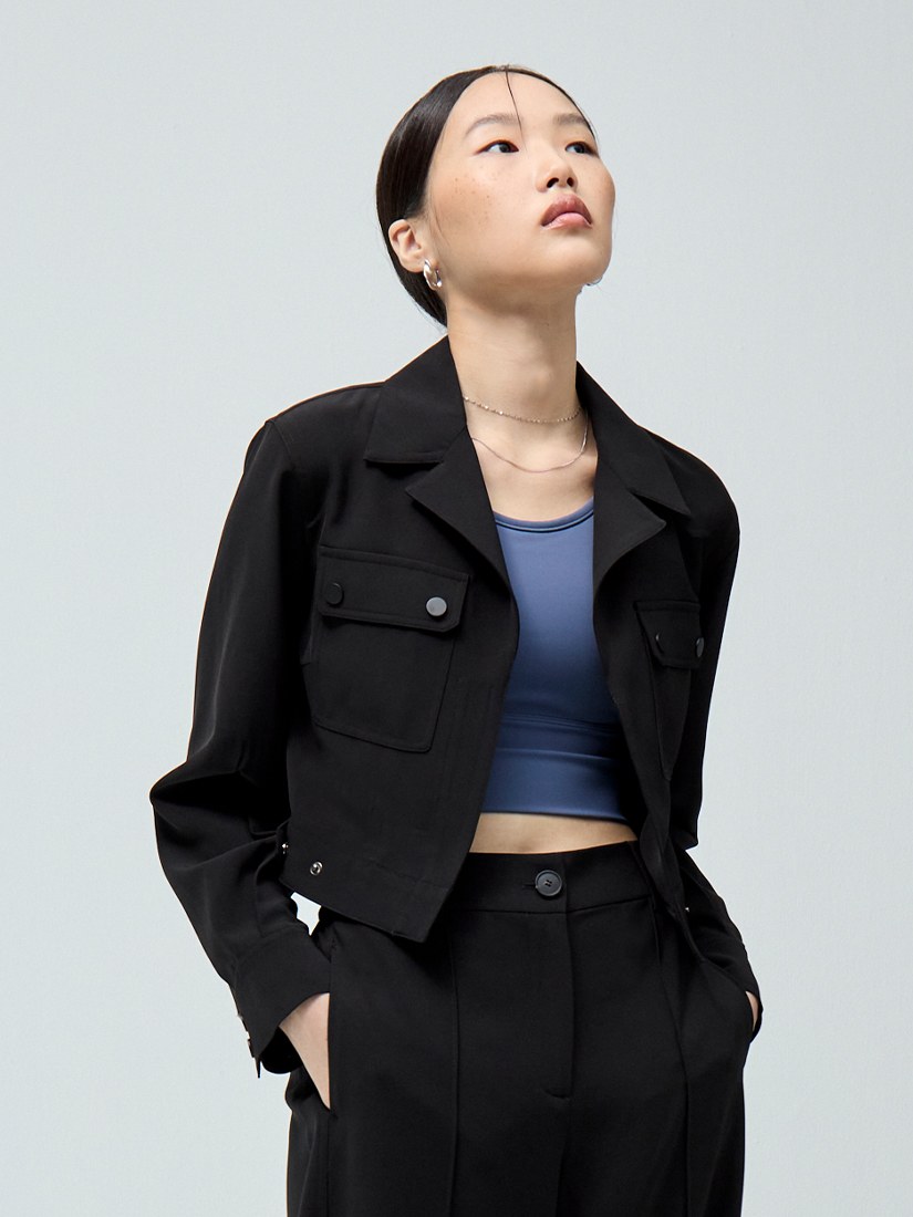 鋪棉立體坑條不對稱領型西裝外套$127 USD