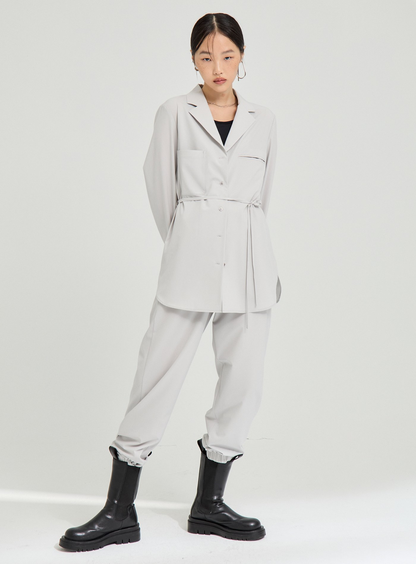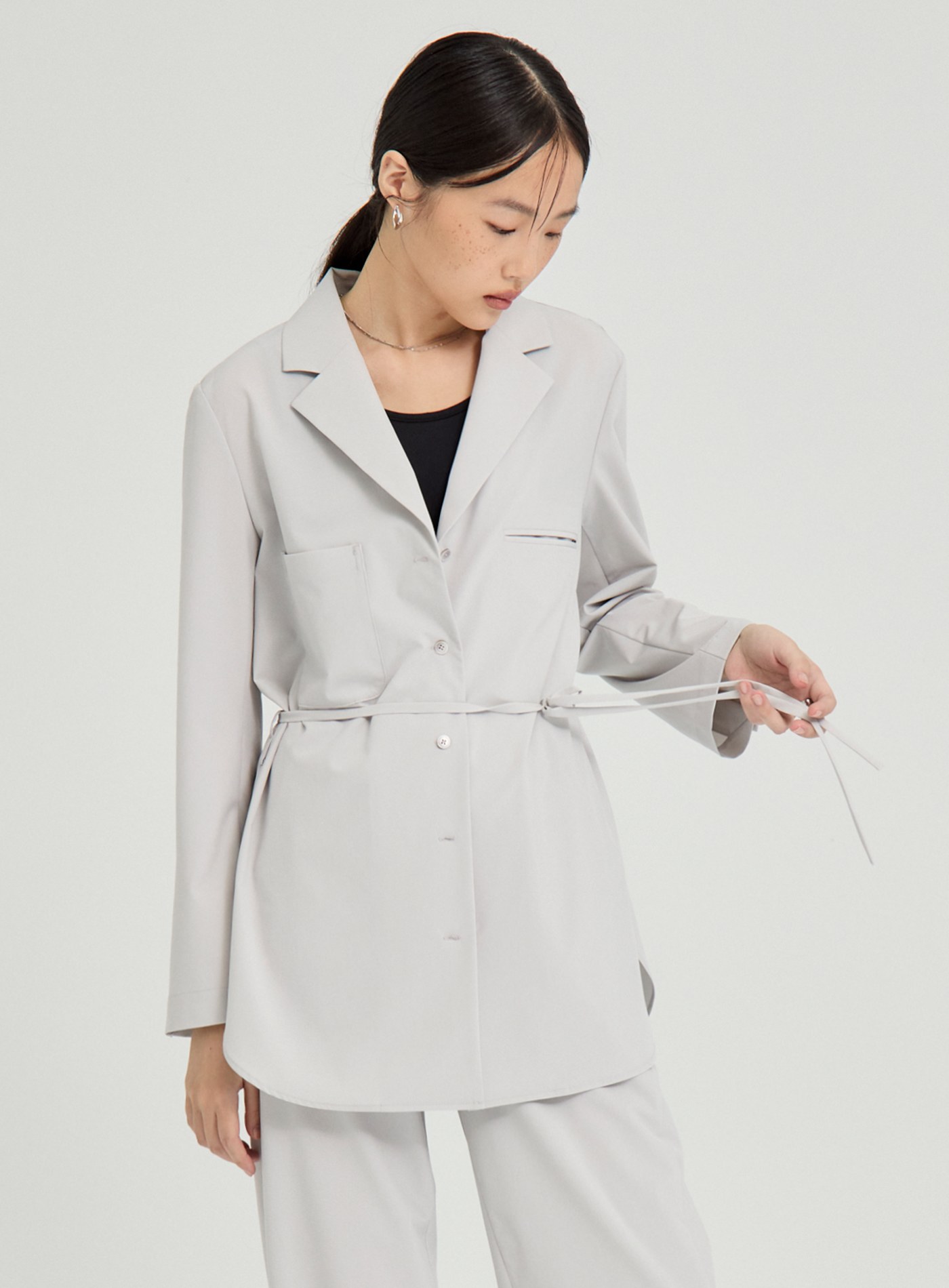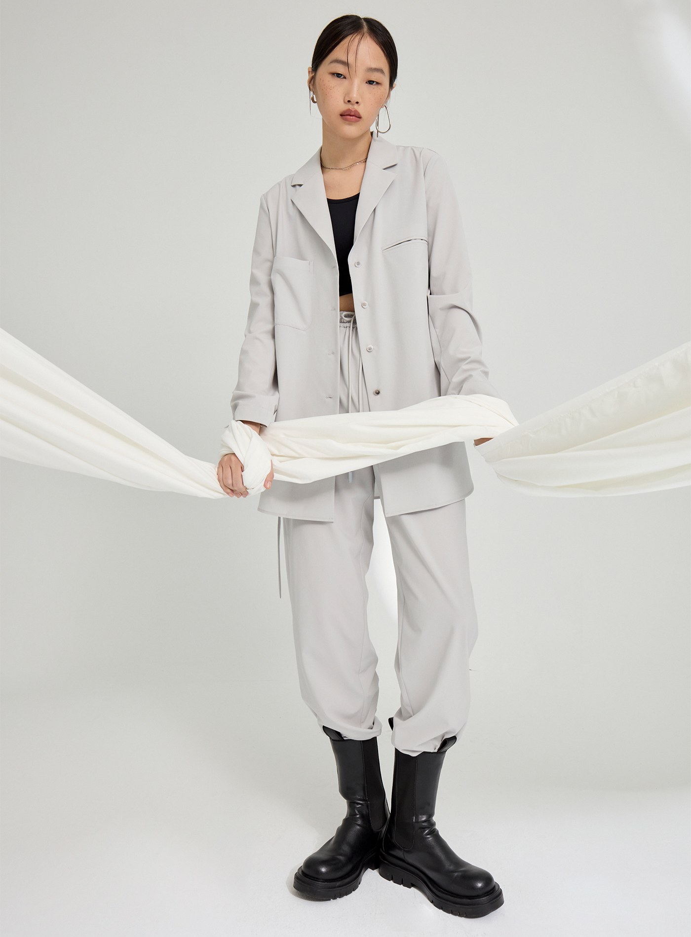 鋪棉立體坑條不對稱領型西裝外套$127 USD