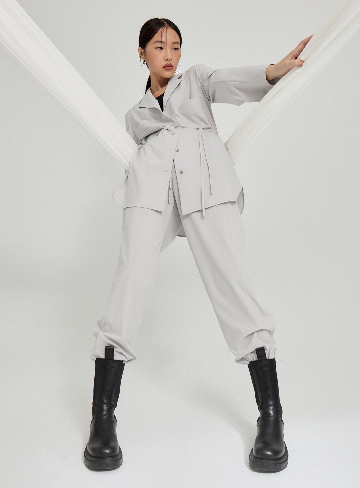 俐落輕挺寬鬆落肩風衣外套$124 USD
