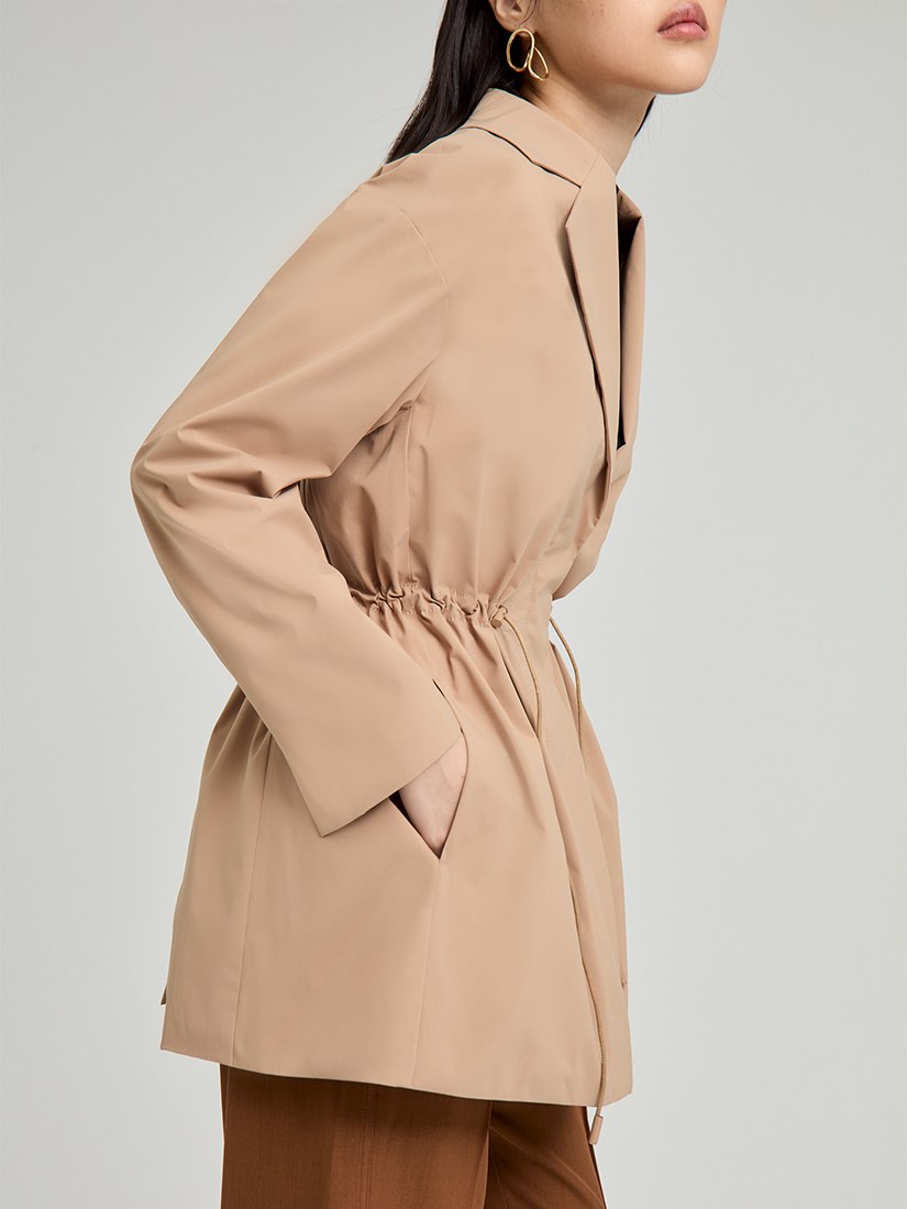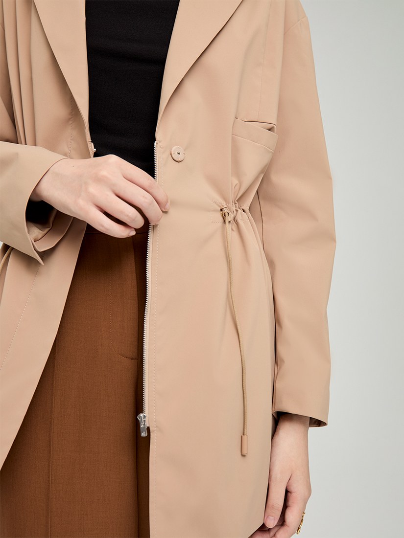 羊毛雙面呢圓領不對稱拼接大衣$191 USD