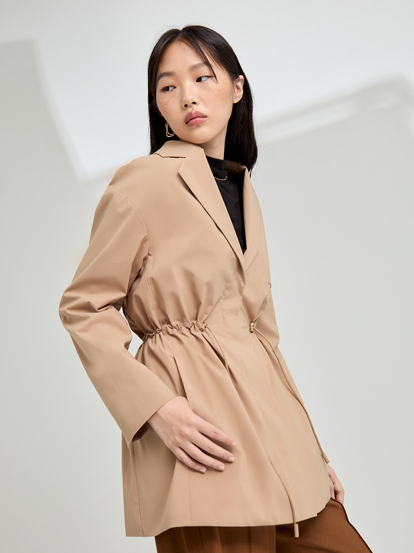鋪棉立體坑條不對稱領型西裝外套$127 USD