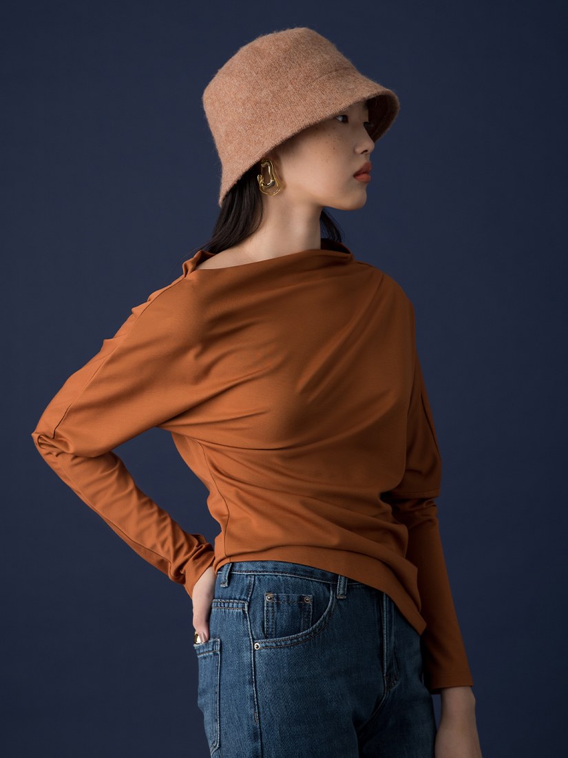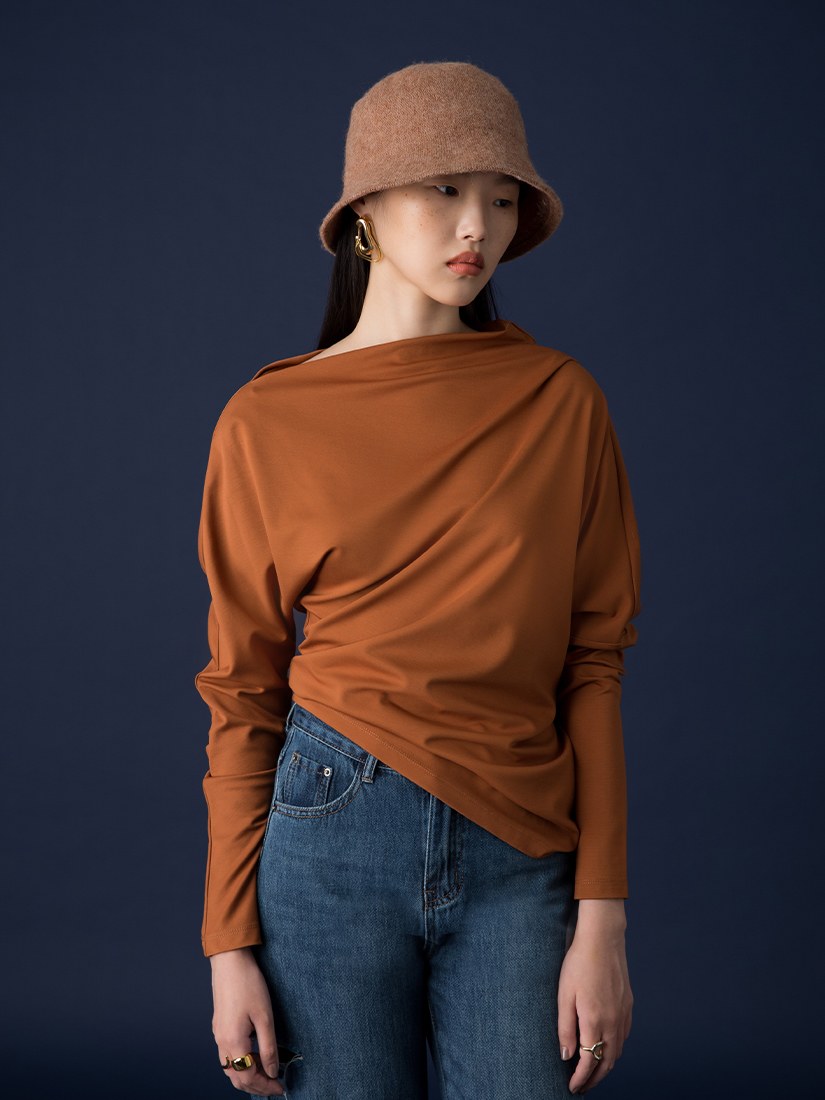 斜領不對稱落肩袖上衣$38 USD