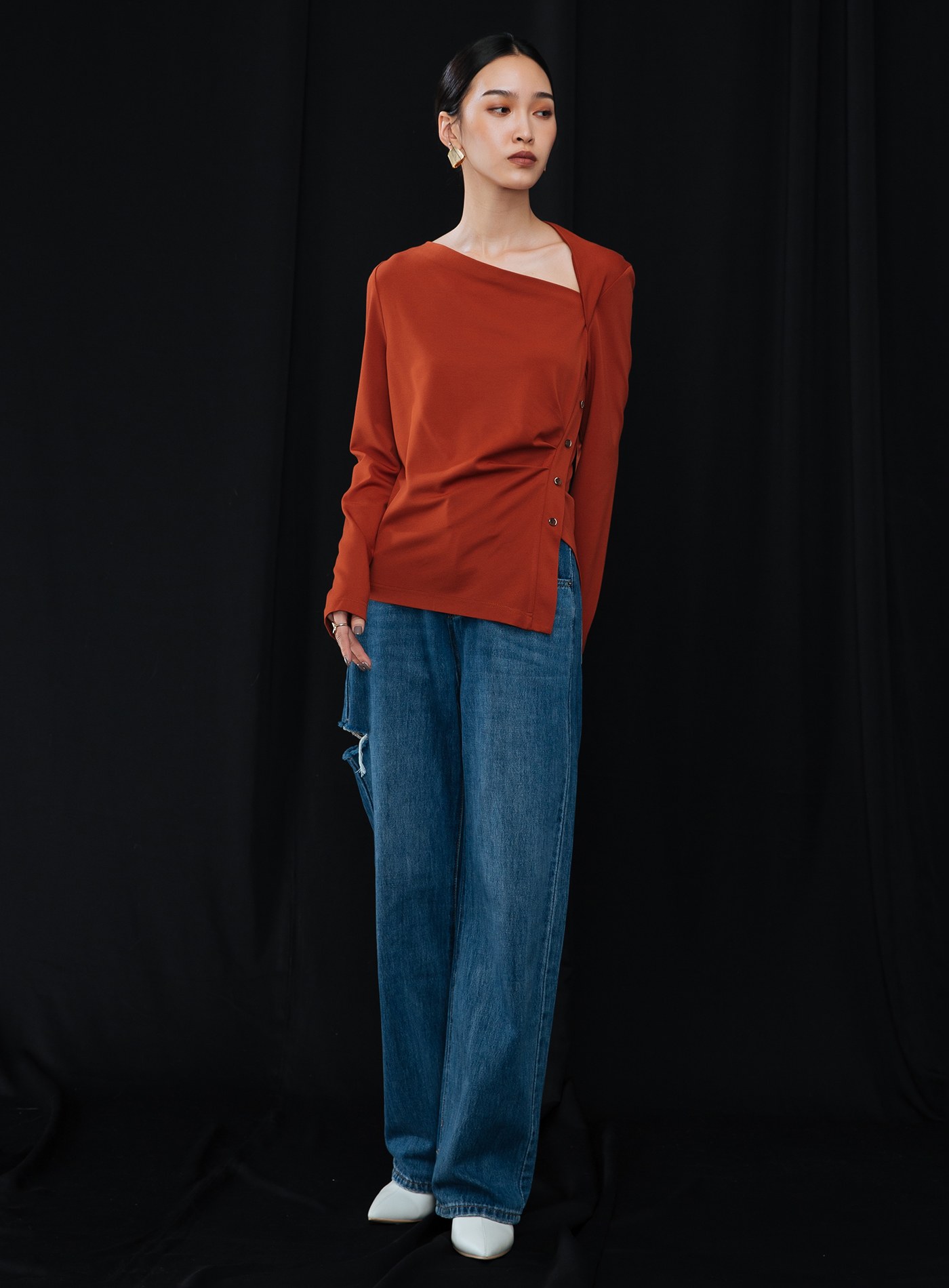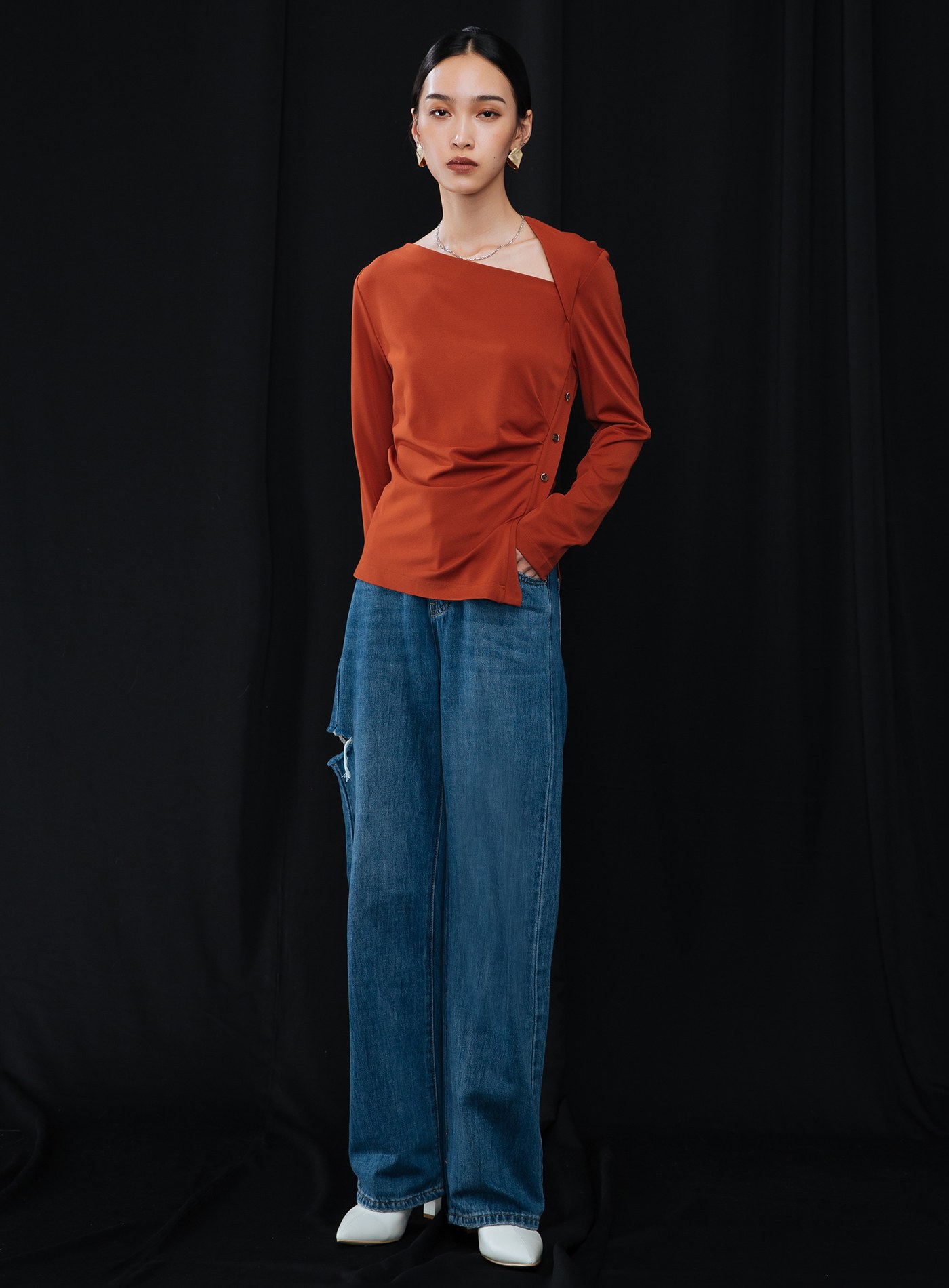 不對稱露肩廓型寬鬆罩衫$63 USD