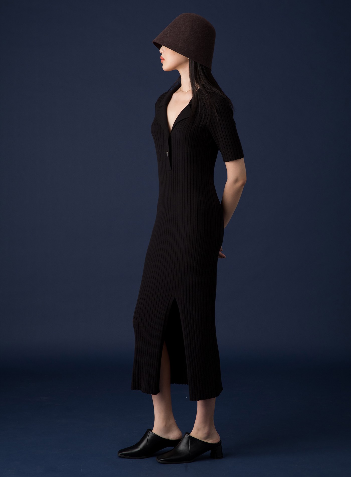 不對稱肩帶盪領斜裁洋裝$86 USD