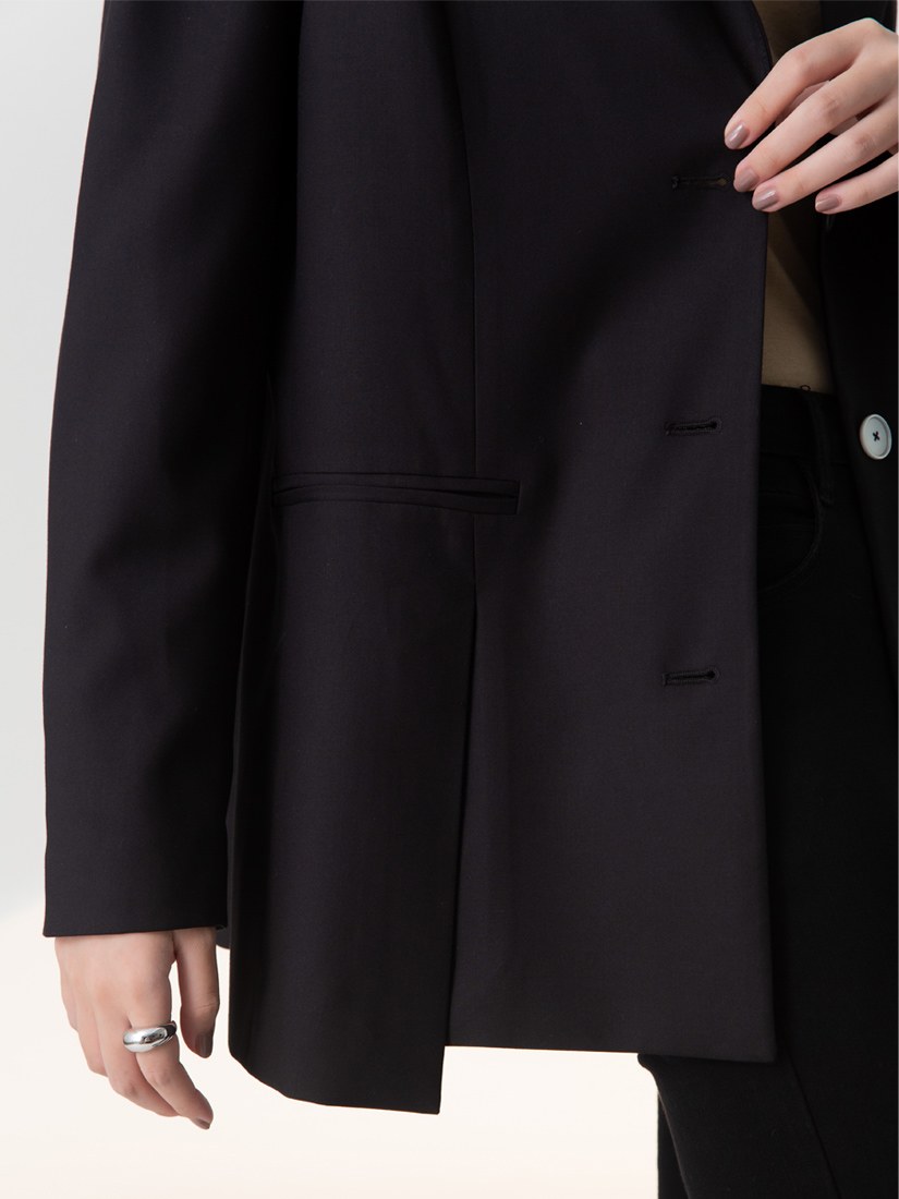羊毛雙面呢圓領不對稱拼接大衣$191 USD