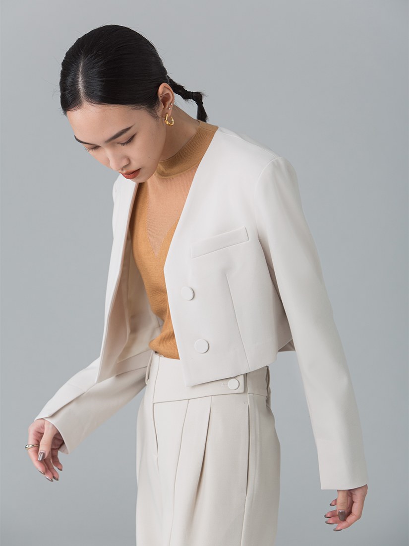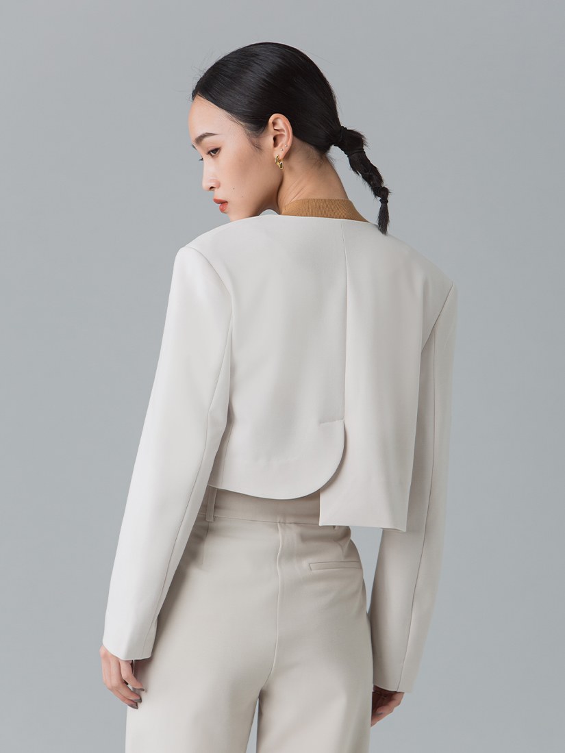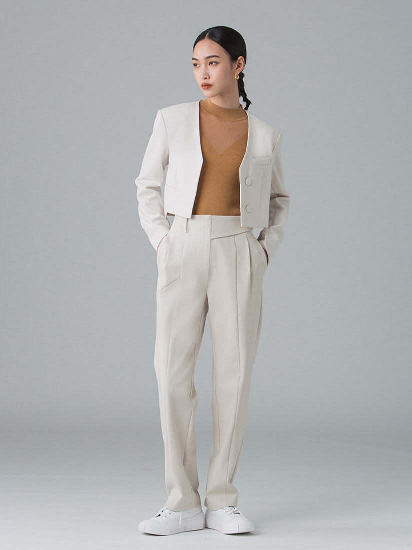 羊毛雙面呢圓領不對稱拼接大衣$191 USD