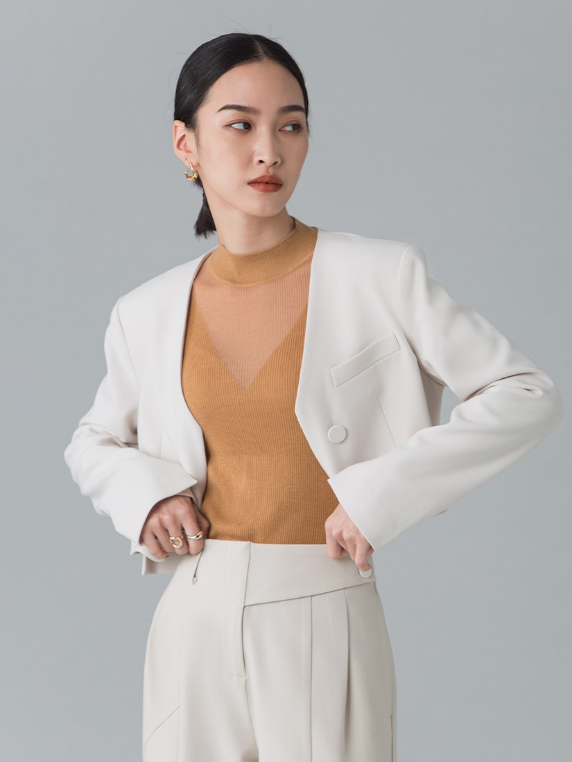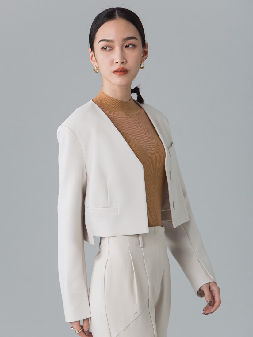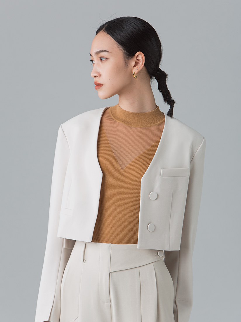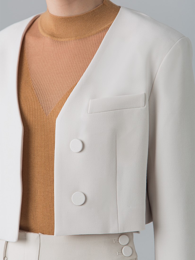 羊毛雙面呢圓領不對稱拼接大衣$191 USD