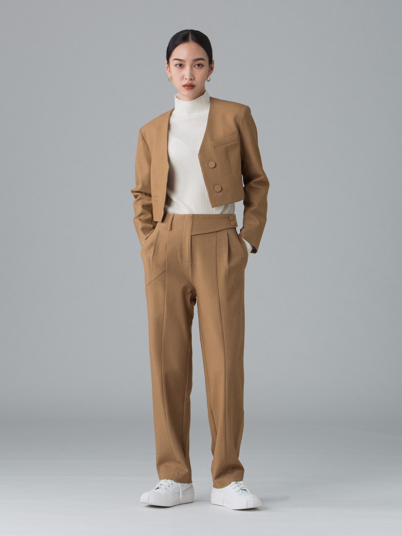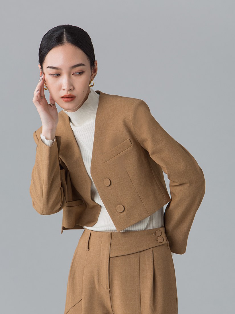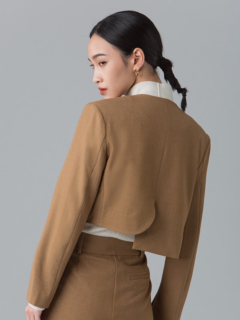 鋪棉立體坑條不對稱領型西裝外套$127 USD