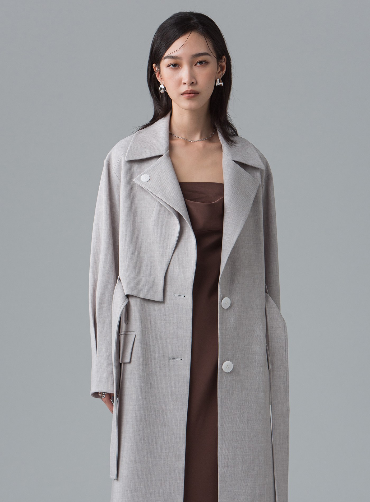 俐落輕挺寬鬆落肩風衣外套$124 USD