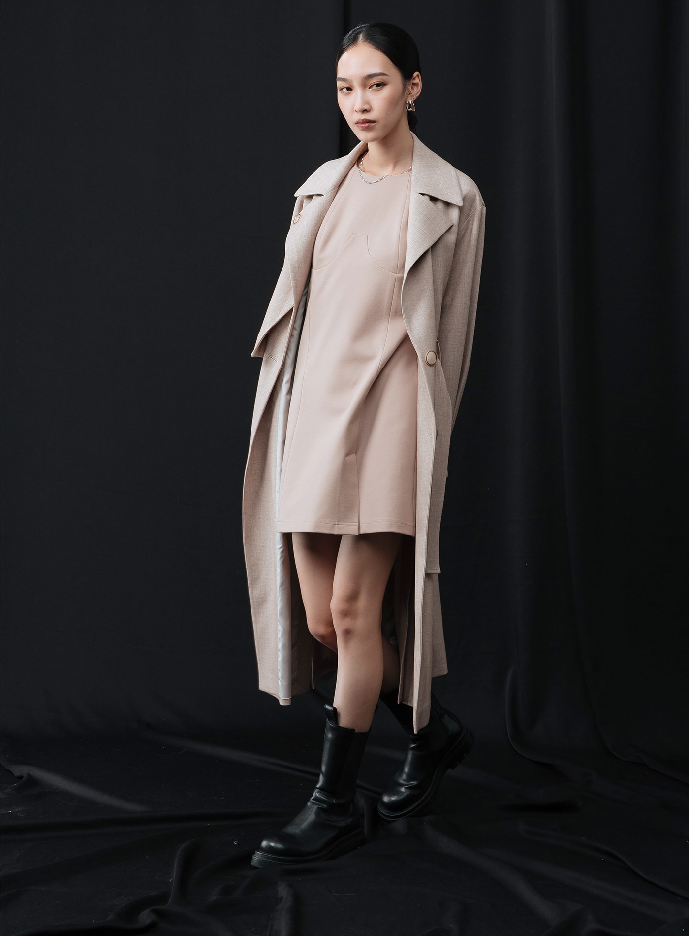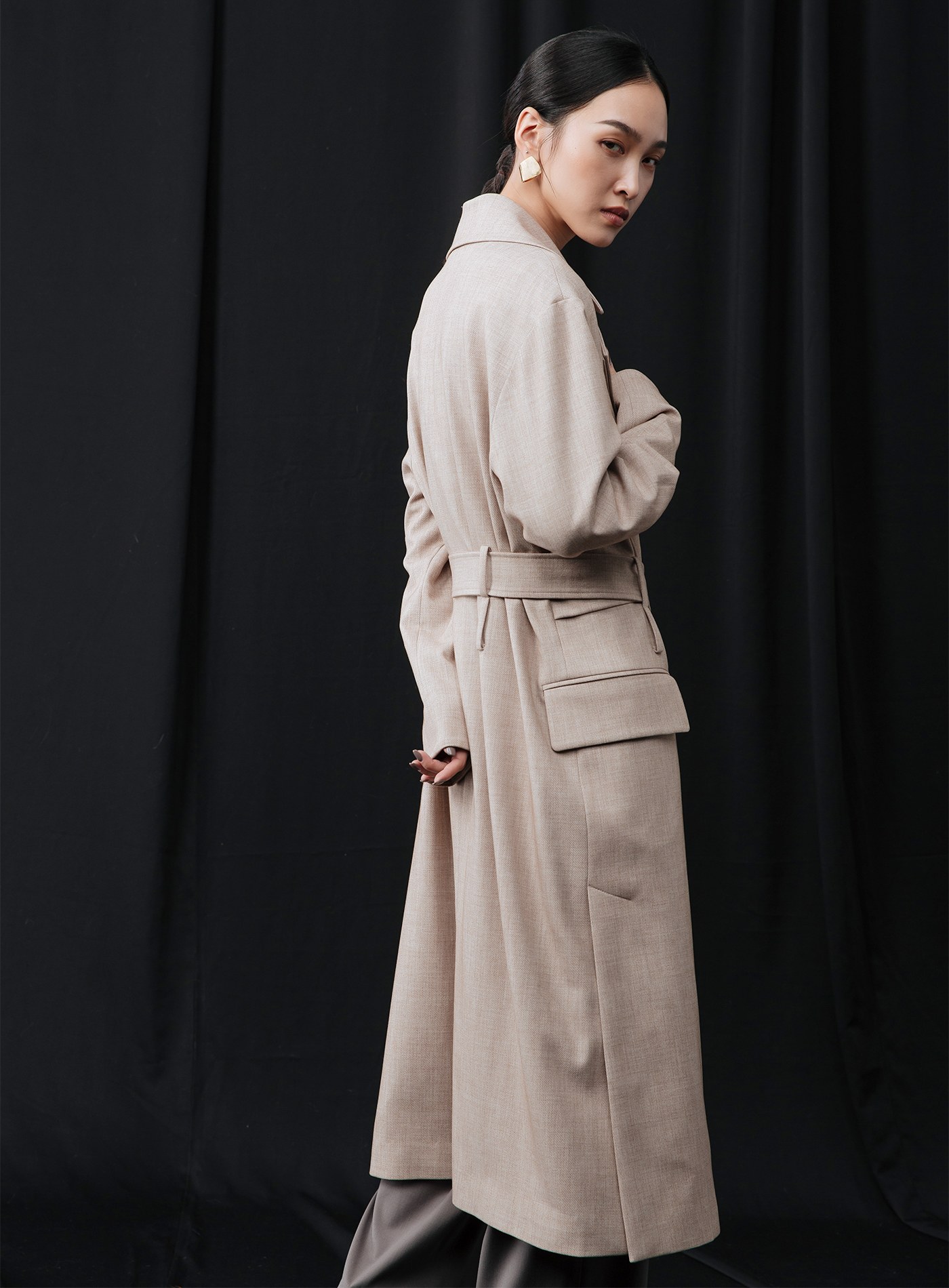 俐落輕挺寬鬆落肩風衣外套$124 USD