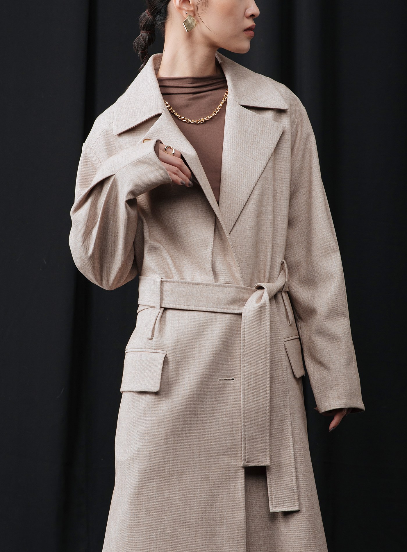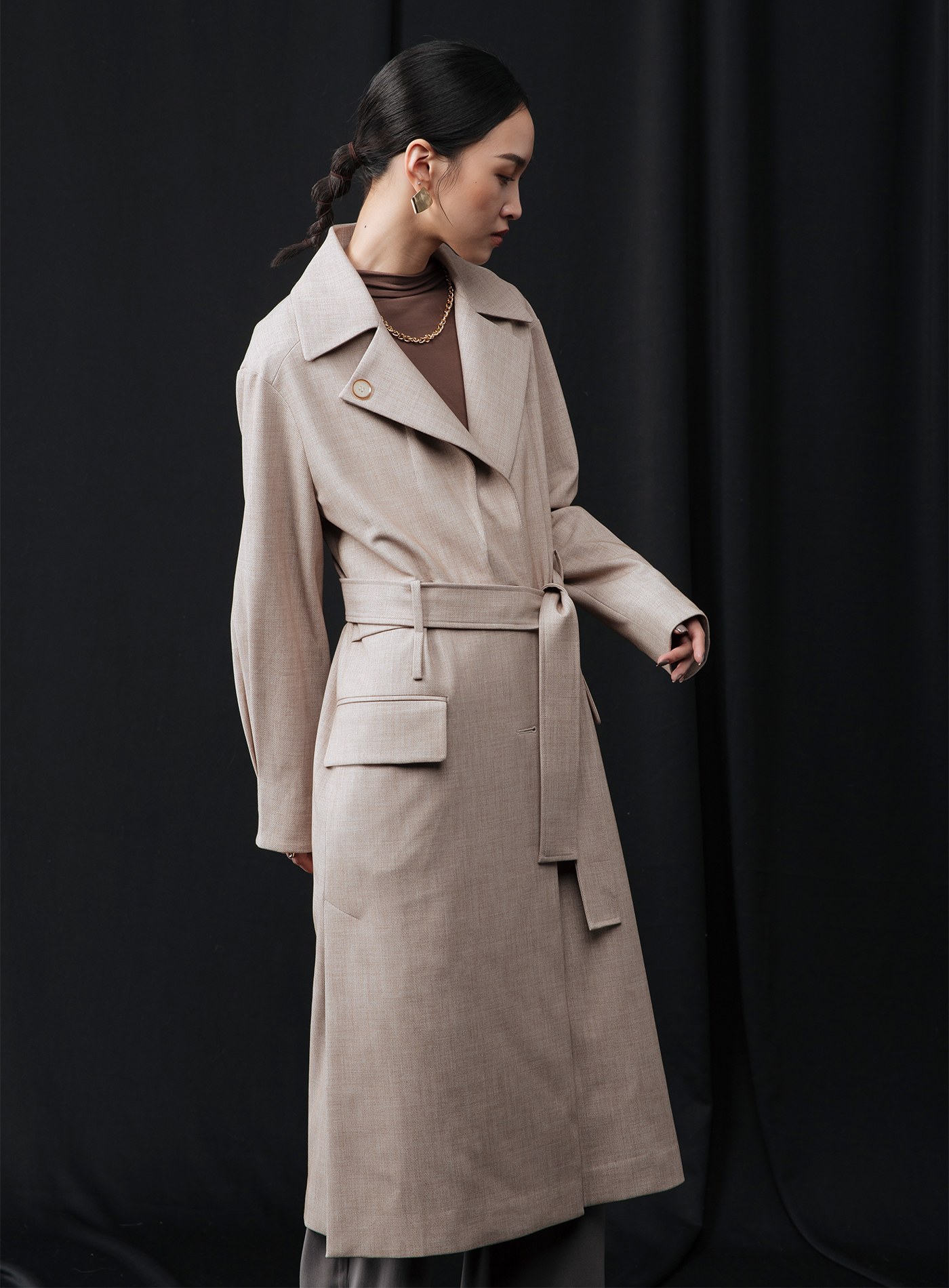 微繭型側釦長版大衣$137 USD