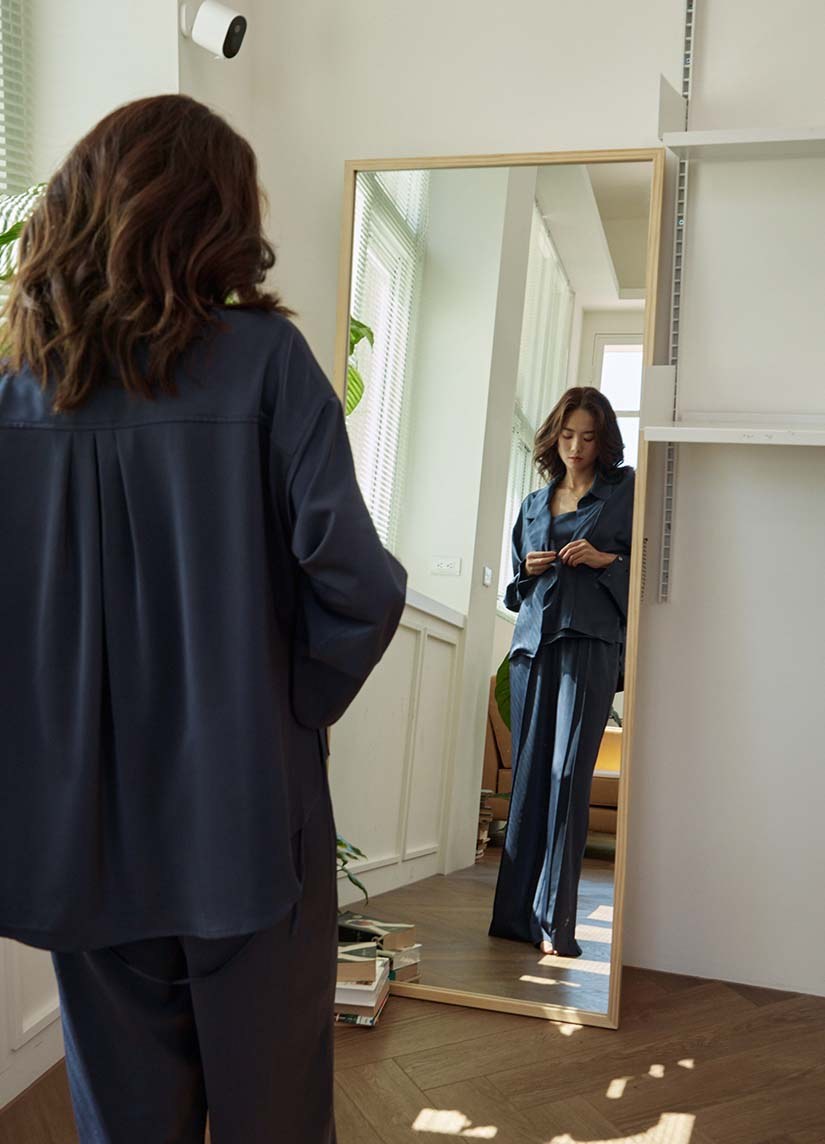 - 前身不對稱立體縫線,讓視覺比例更加立體有型