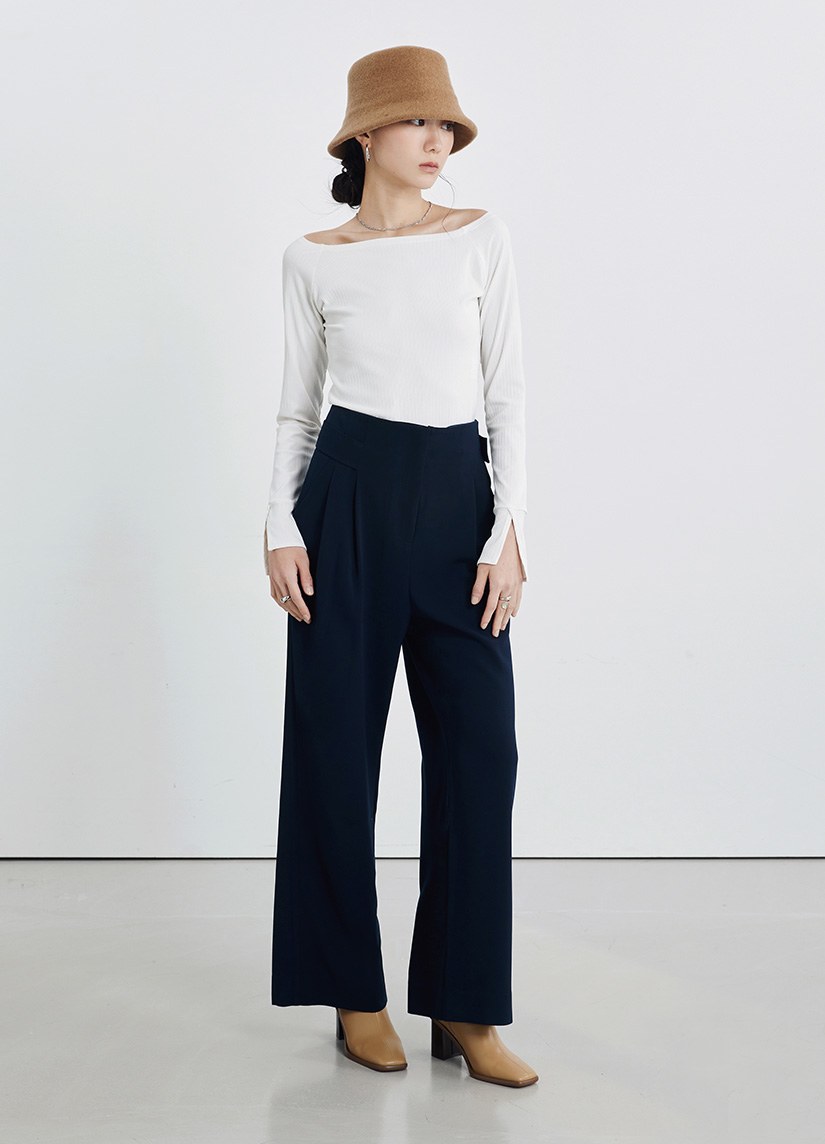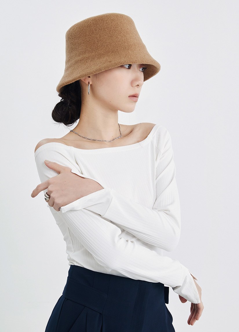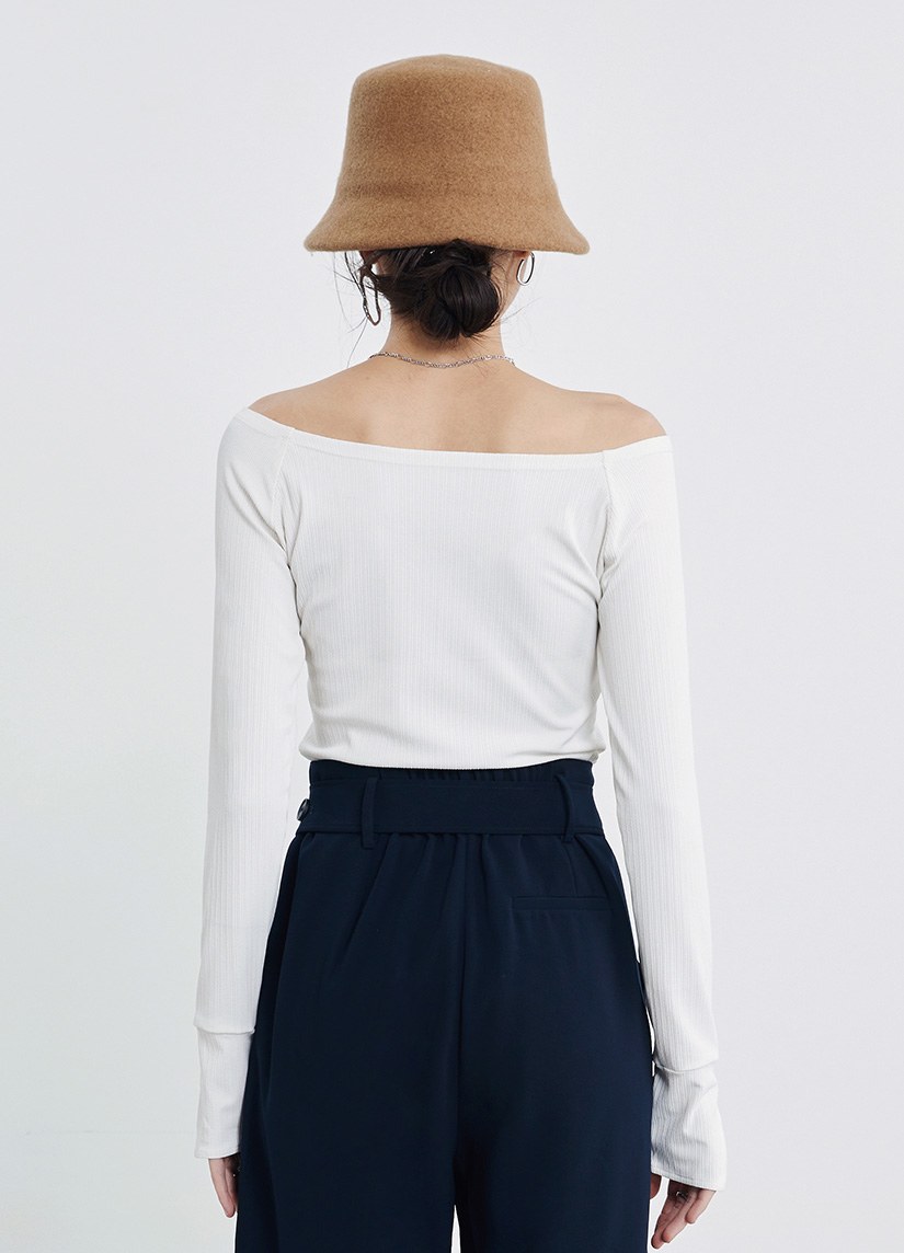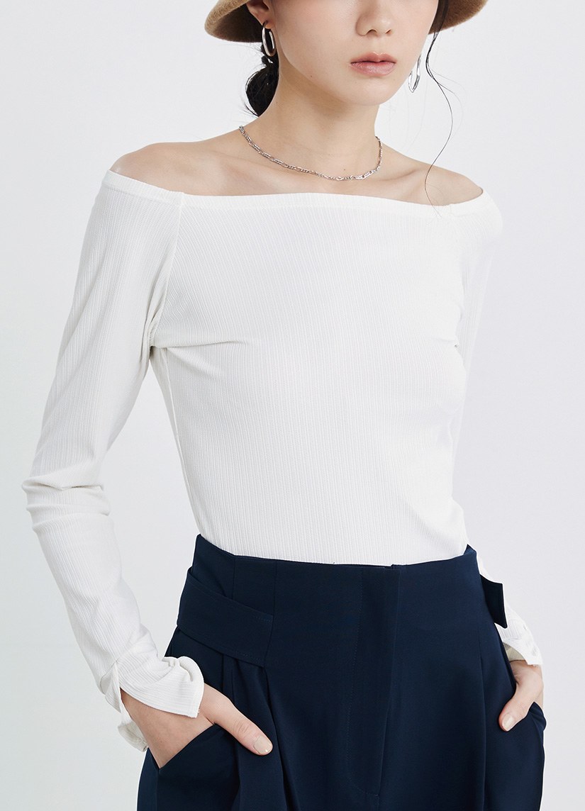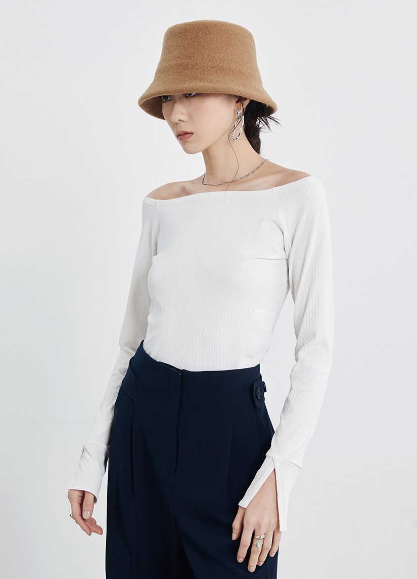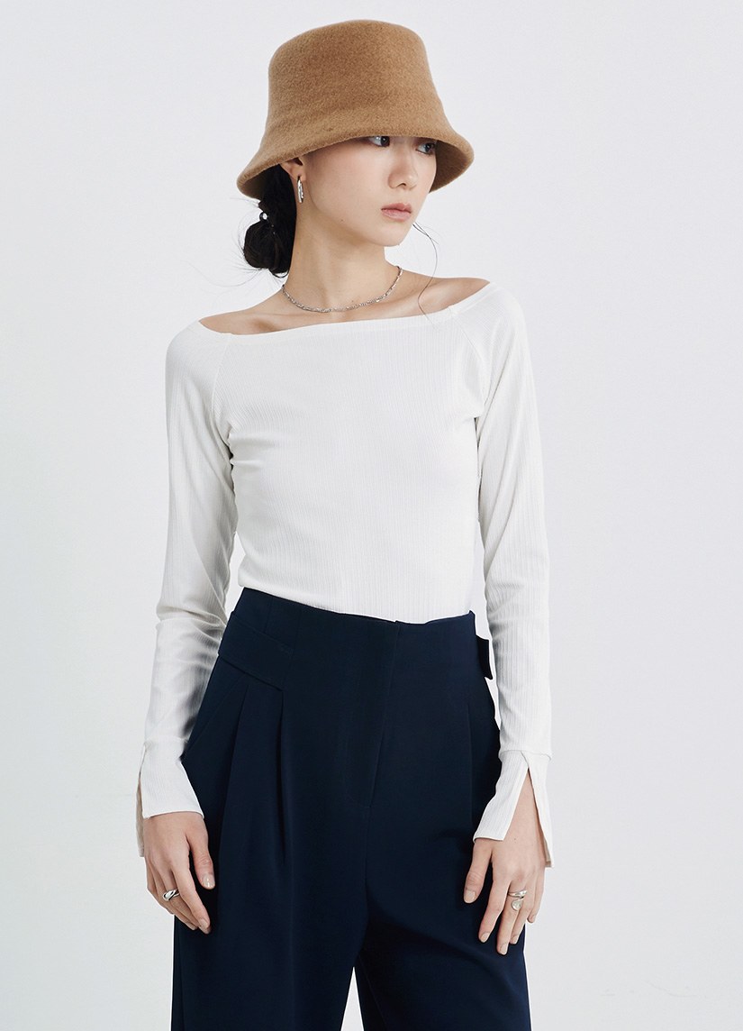 • 領口大方領設計,可拉成一字領,造型多變/袖口交疊細節設計