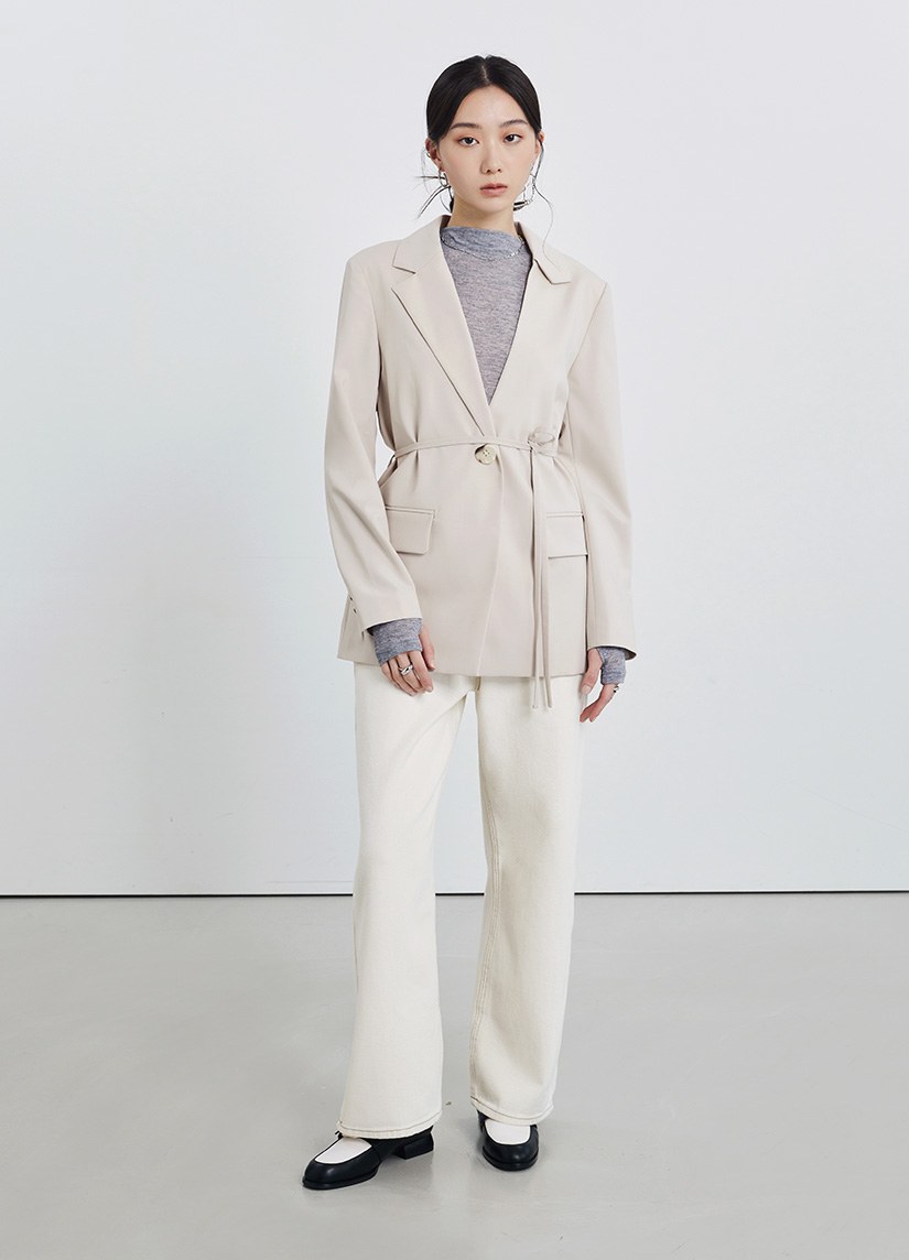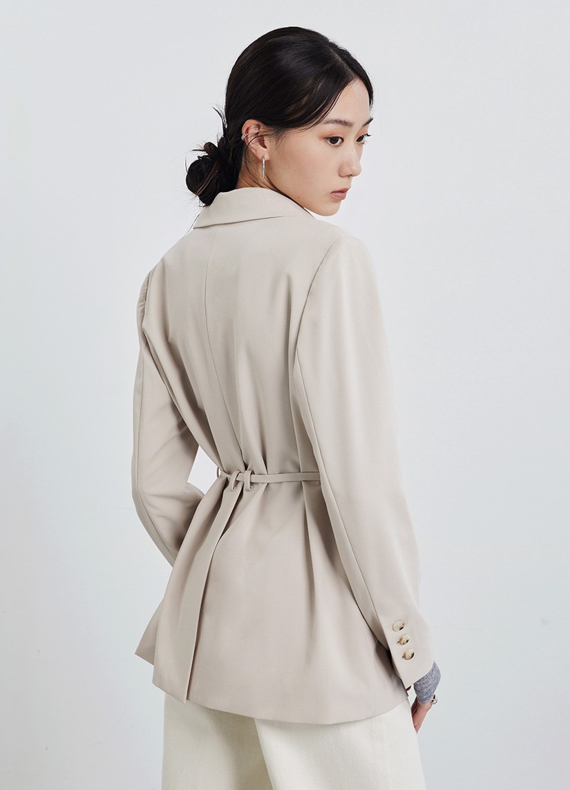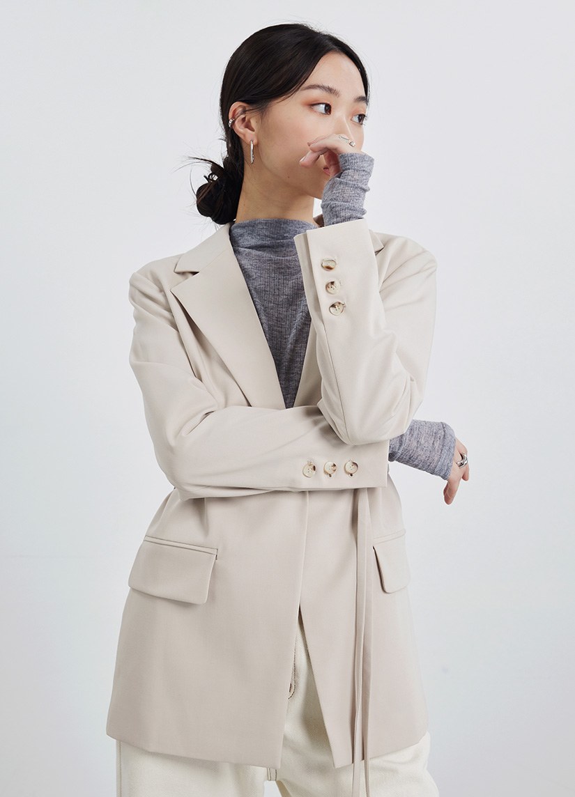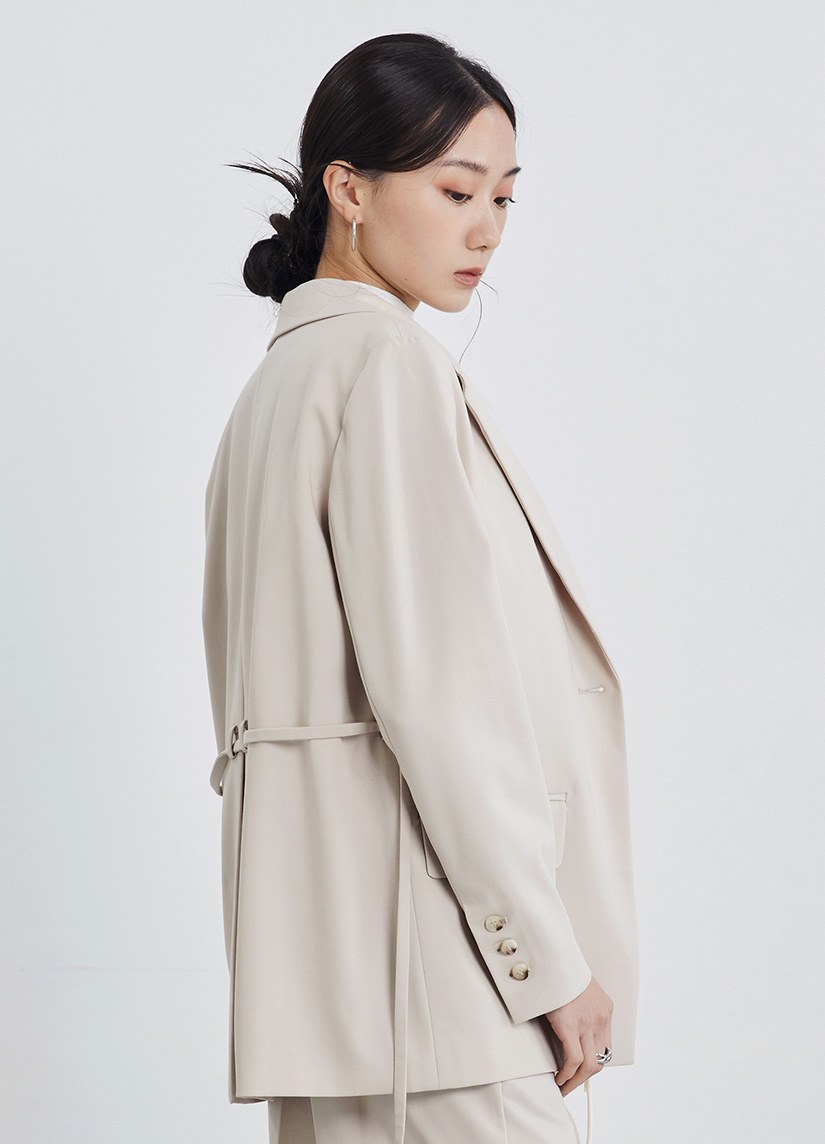 - 經典寬鬆西裝外套/附可拆細腰帶/左側下擺開衩