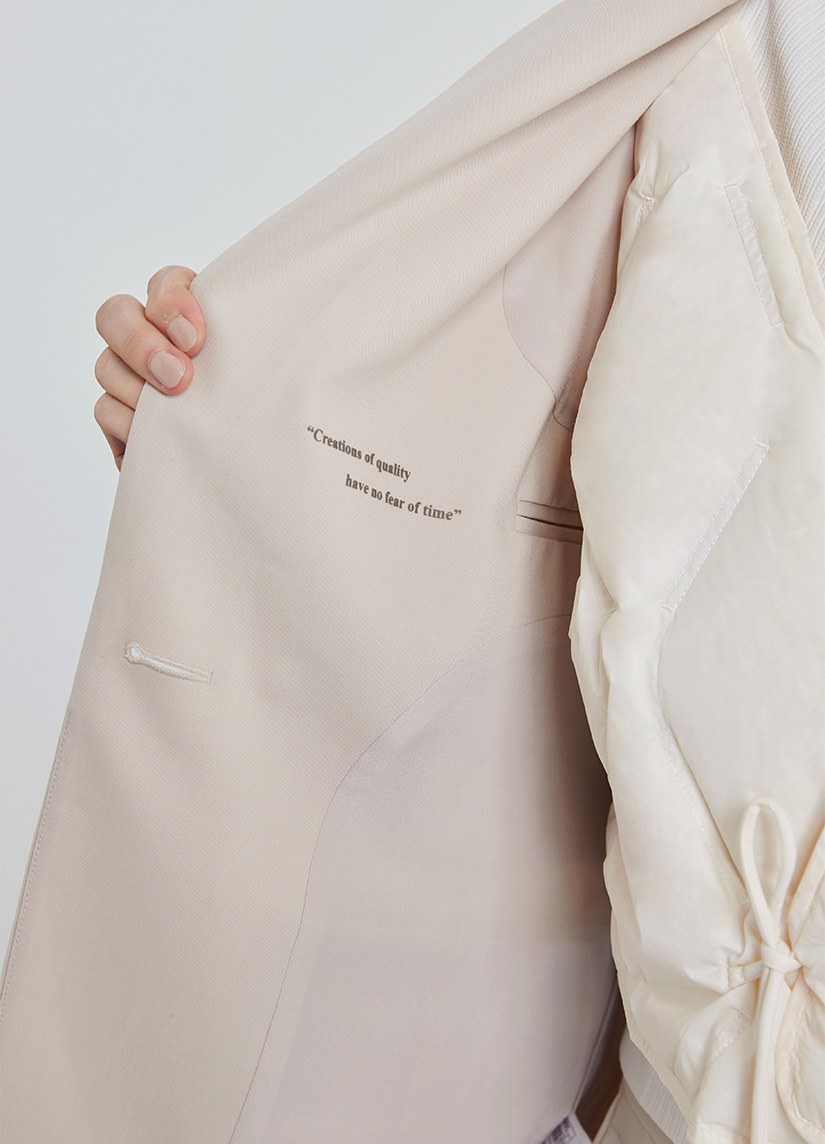 - 內理貼邊有內口袋和標語印花 'Creations of quality have no fear of time' 代表著有品質的創作不畏時間歷練,也不跟隨一時的流行。