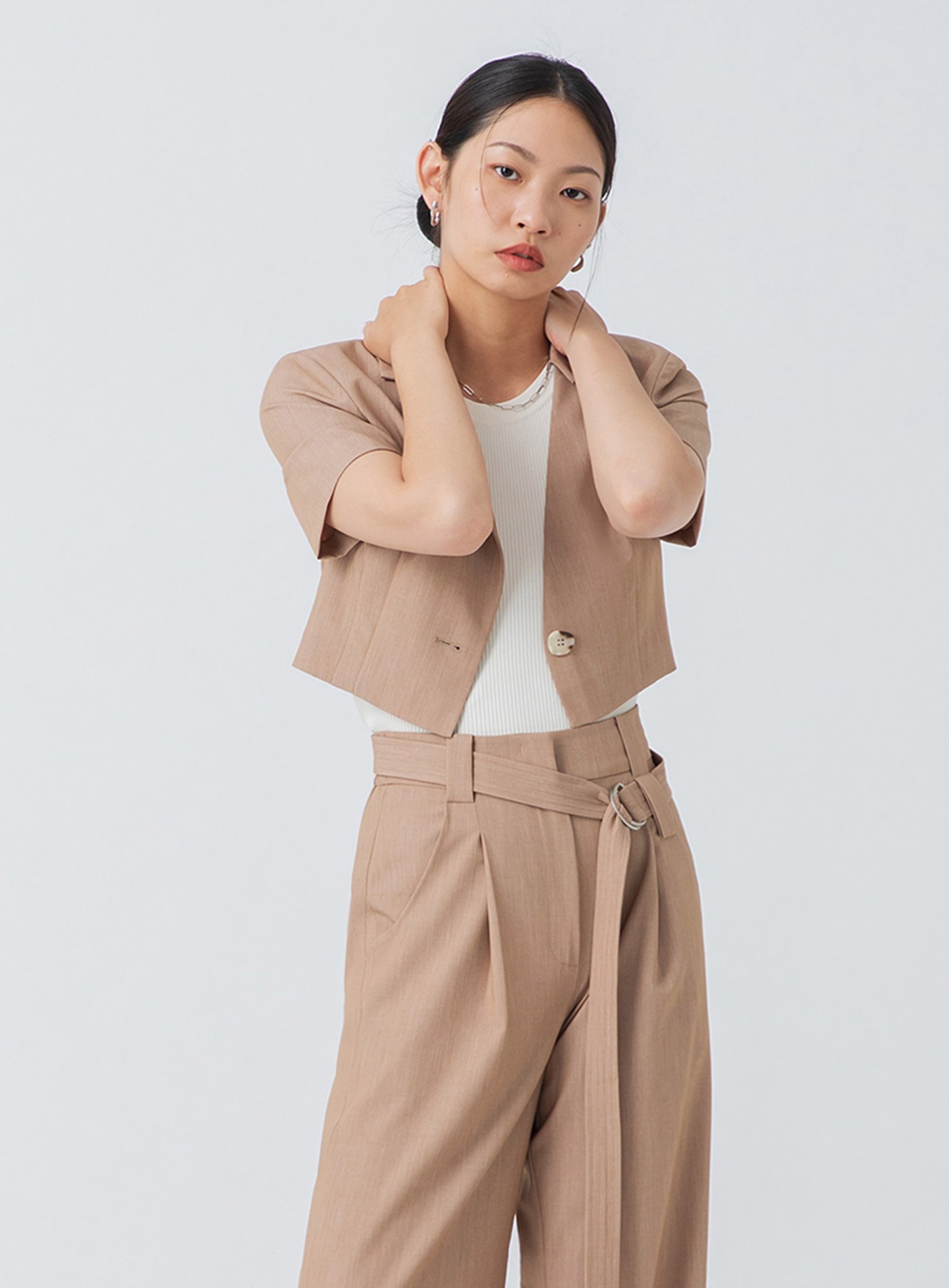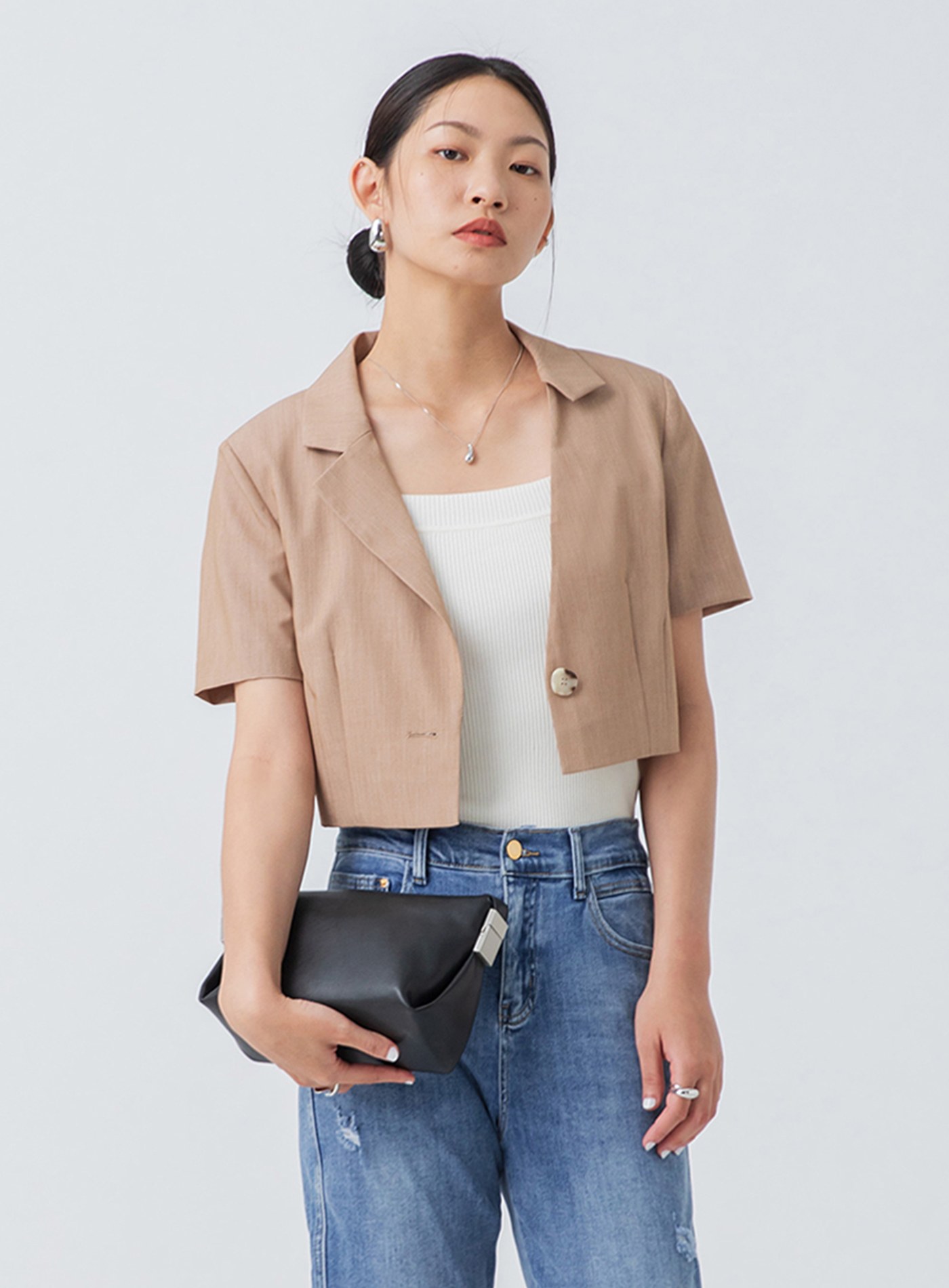 俐落無領短版西裝外套$95 USD