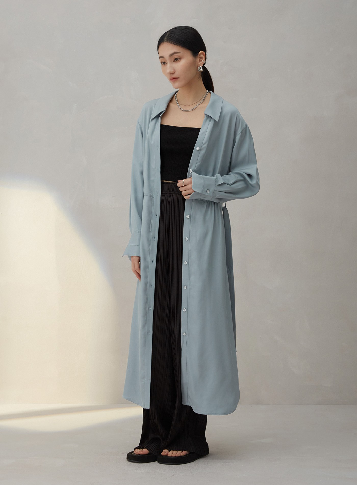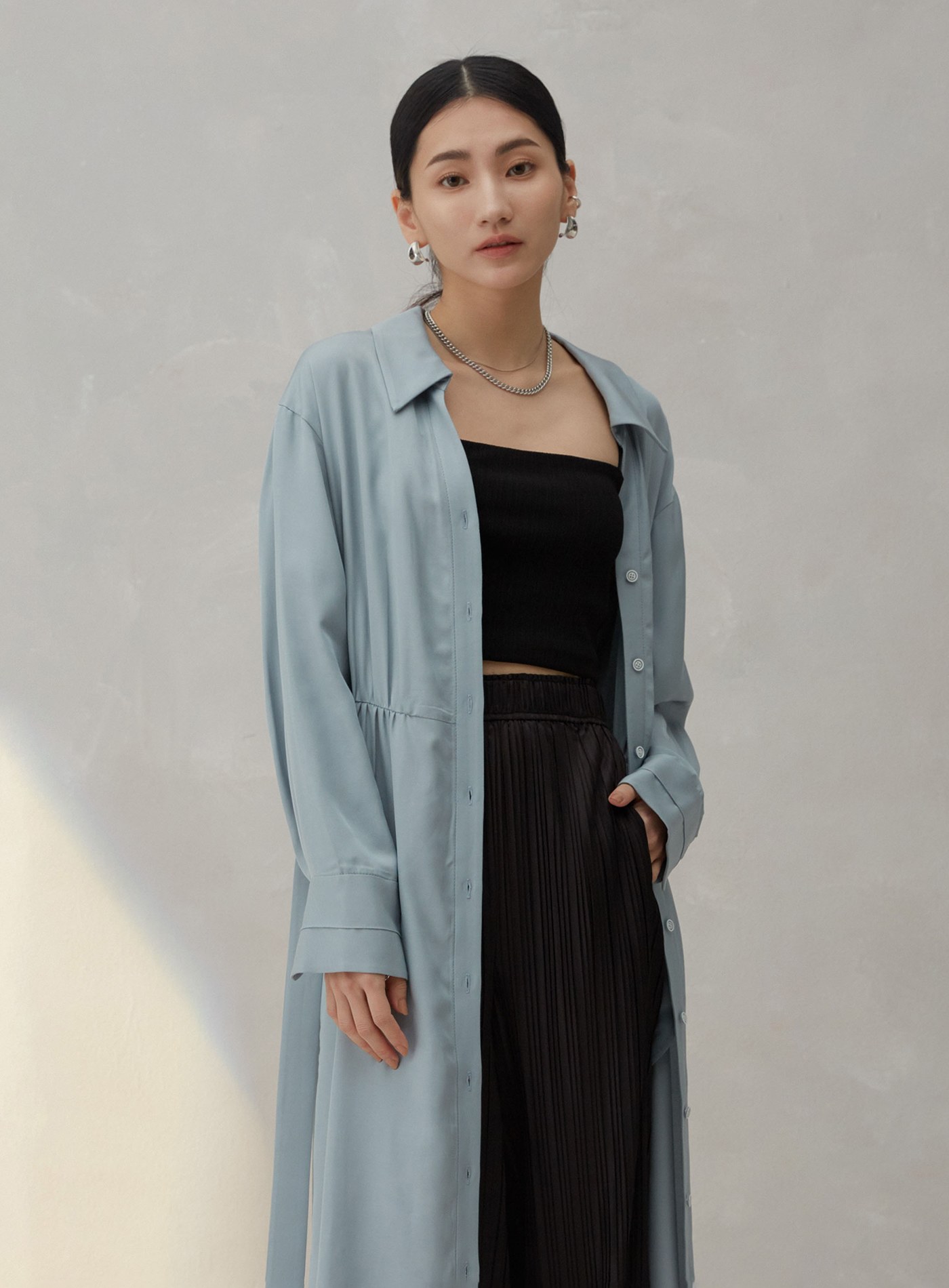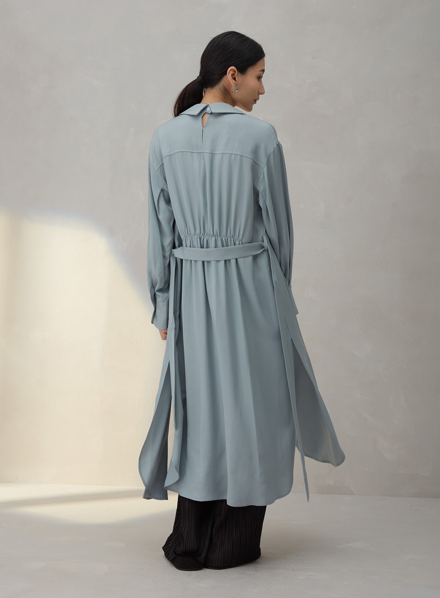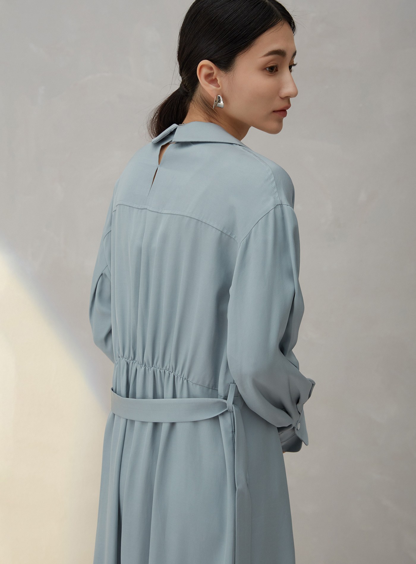 不對稱領收腰襯衫洋裝$95 USD