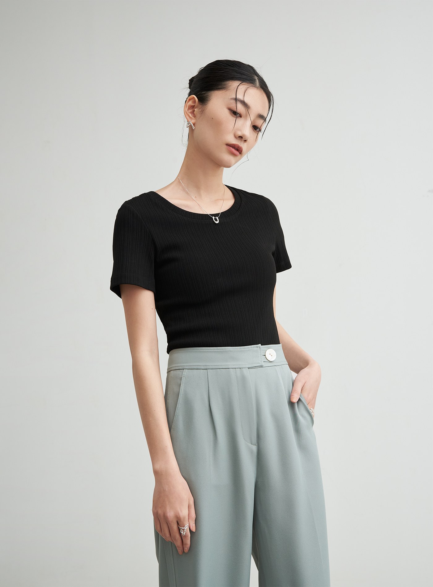 短版俐落寬肩無袖休閒襯杉$60 USD