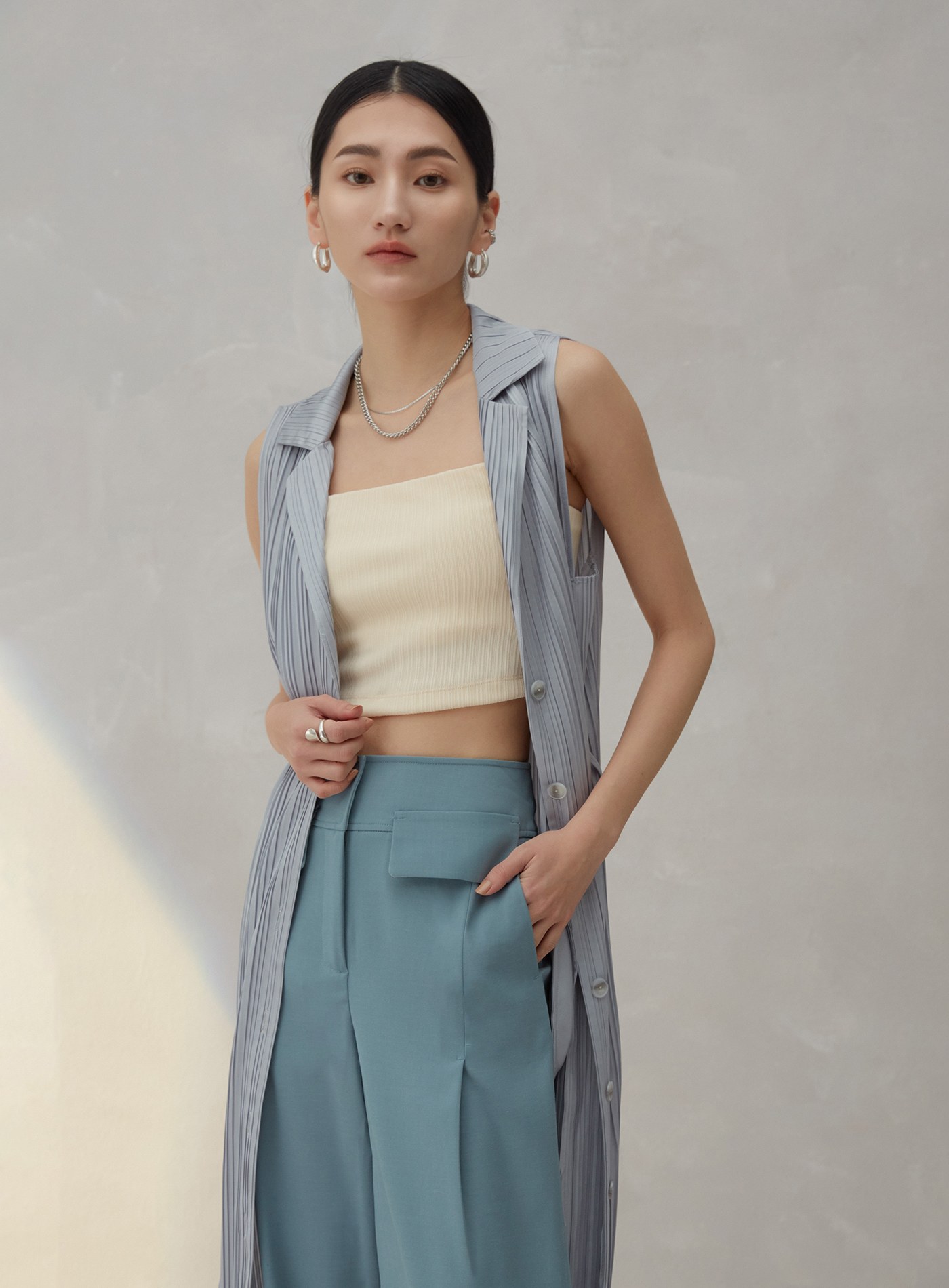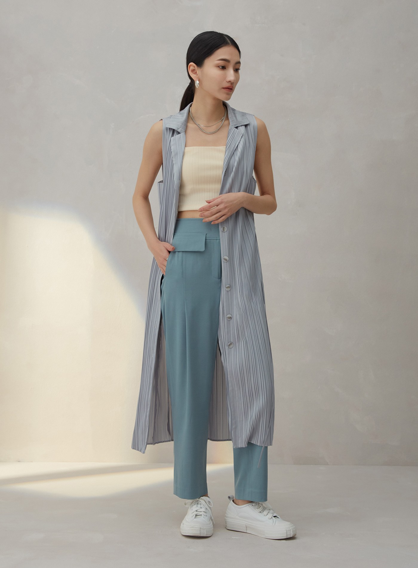 馬甲造型後活褶無袖襯衫$60 USD