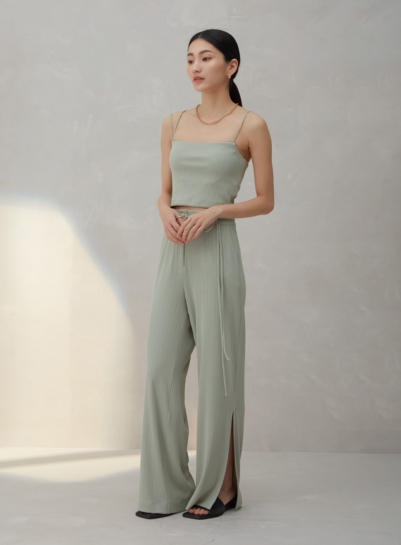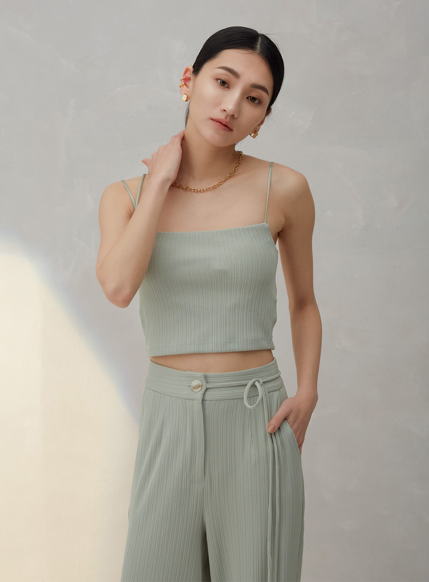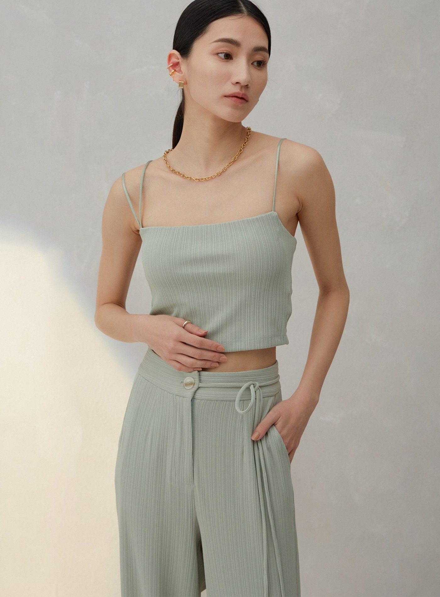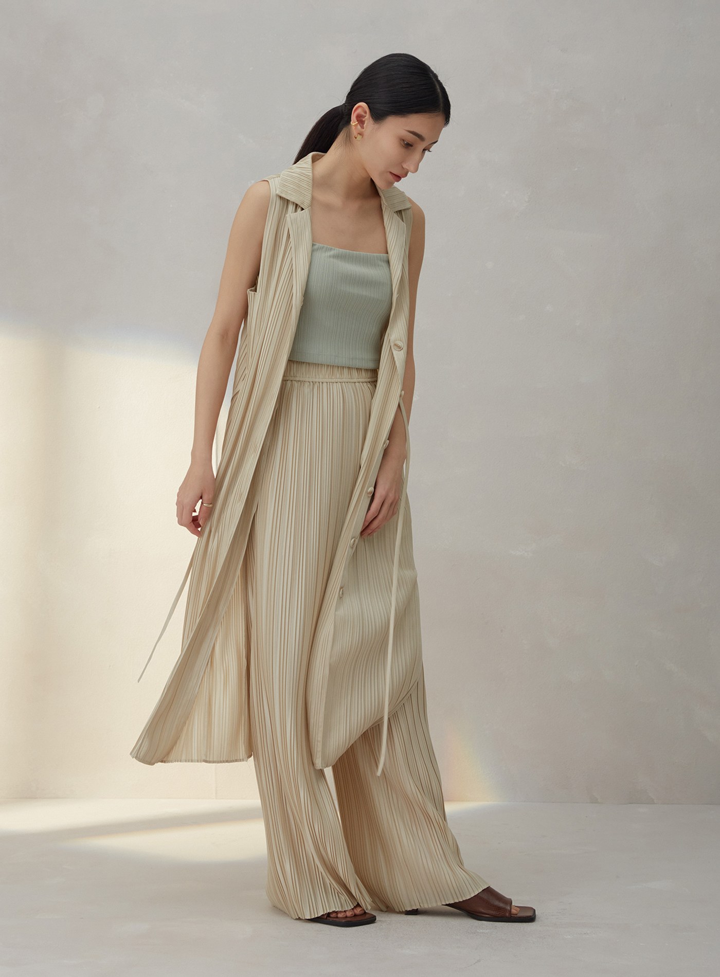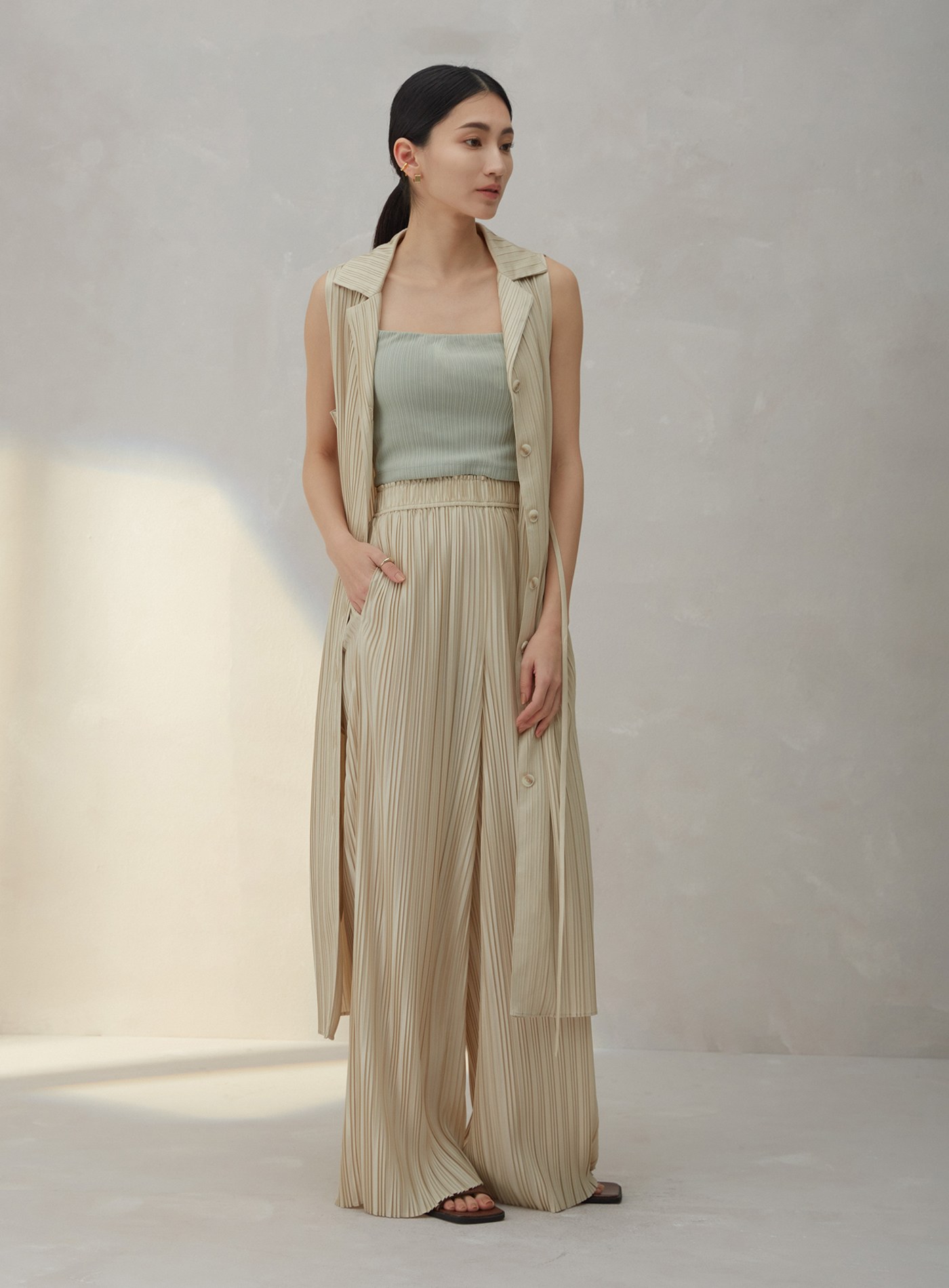 短版俐落寬肩無袖休閒襯杉$60 USD