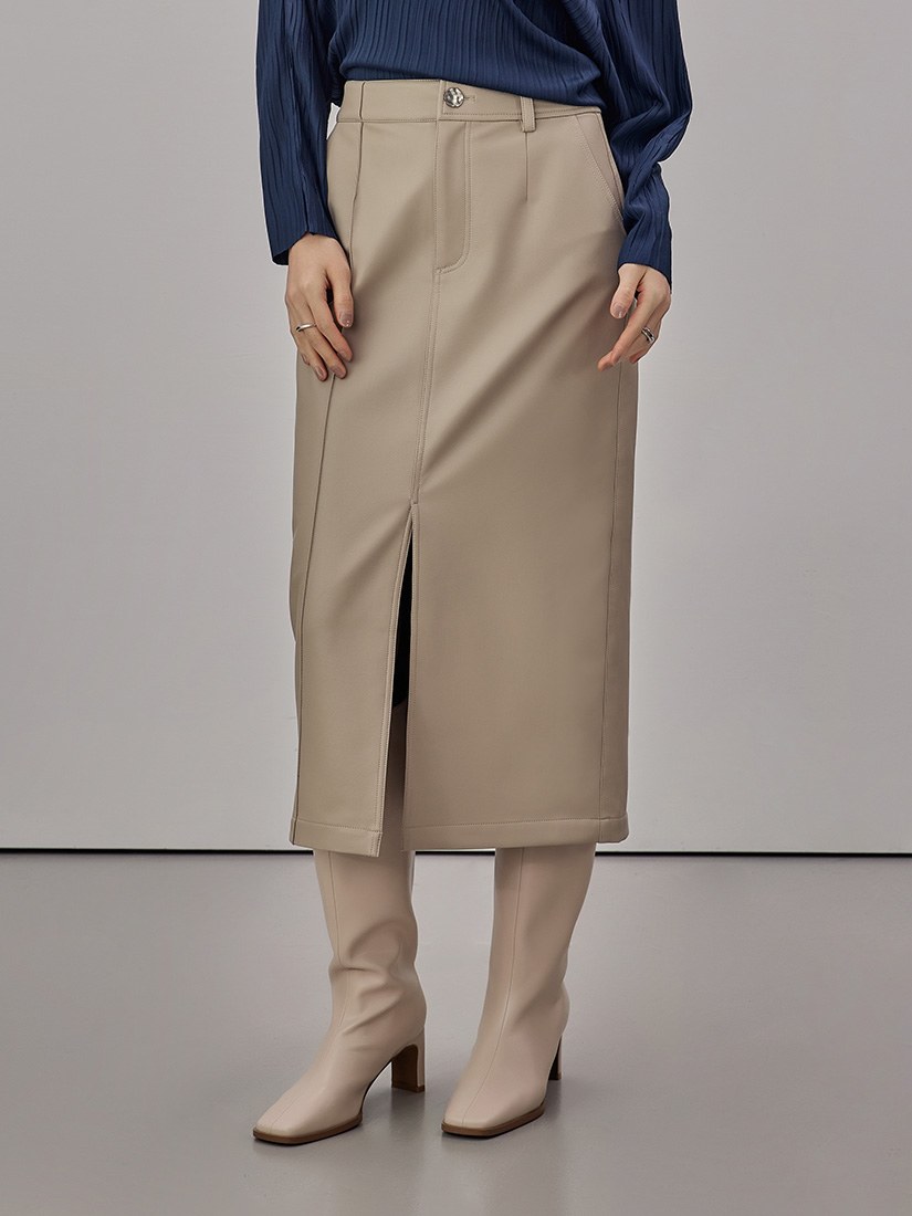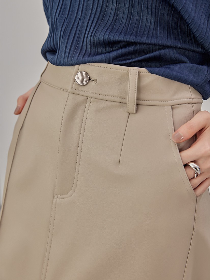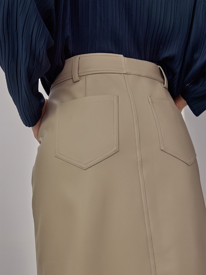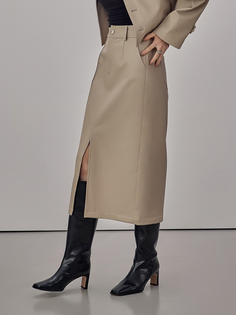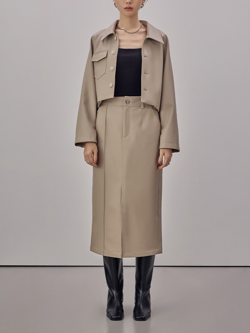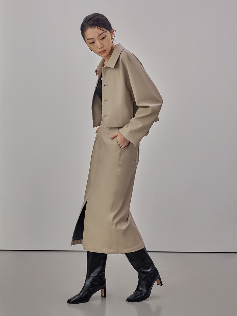 - 可與 '俐落短版襯衫領皮革外套' 搭成一套