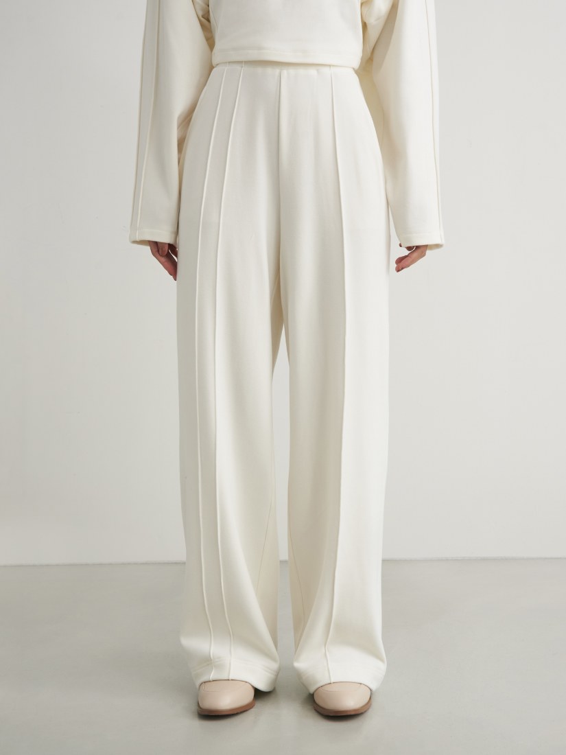 - 直筒寬褲版型/前身不對稱立體挺縫線設計,讓視覺比例更加立體有型/有口袋