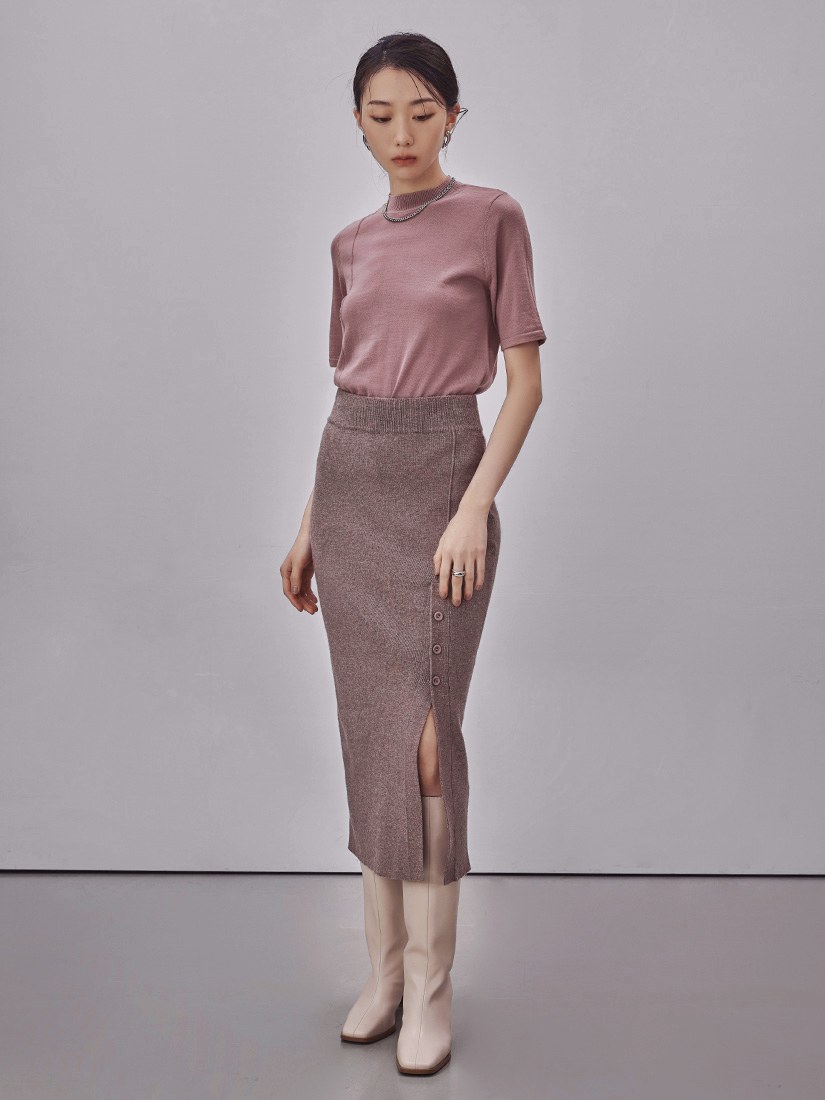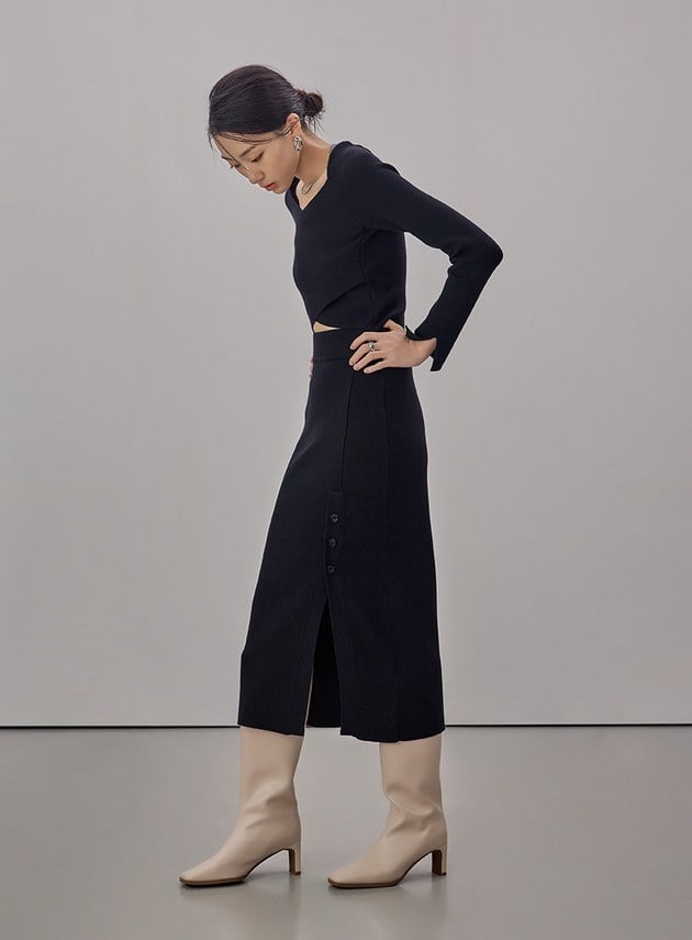 - 高腰針織合身直筒裙型/腰部鬆緊帶設計,穿著更舒適穩定