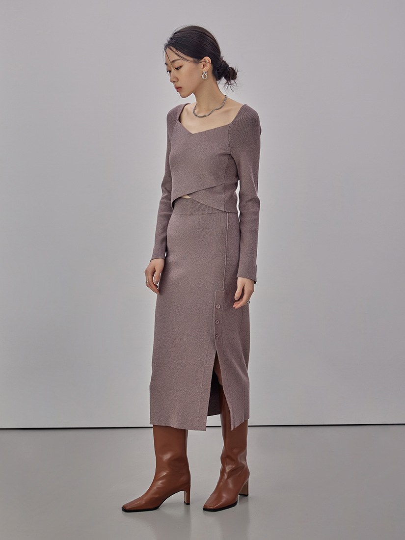 - 可與 '坑條合身針織交叉長袖上衣' 搭成一套