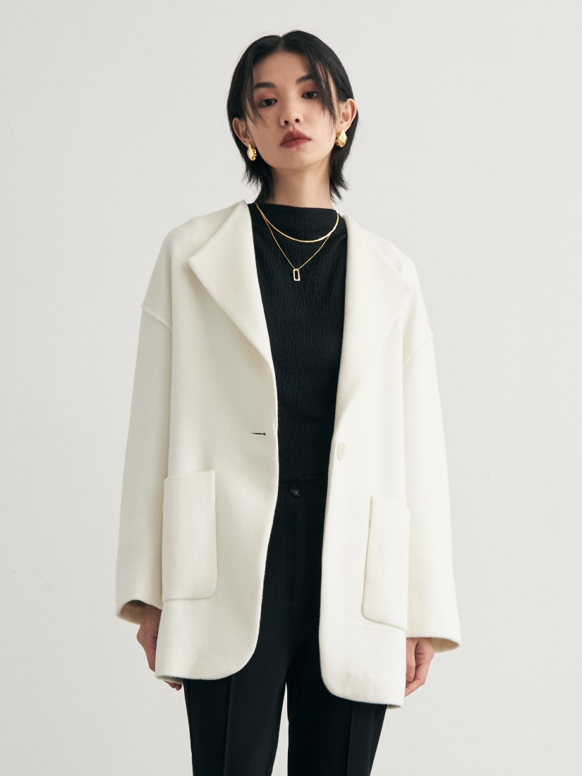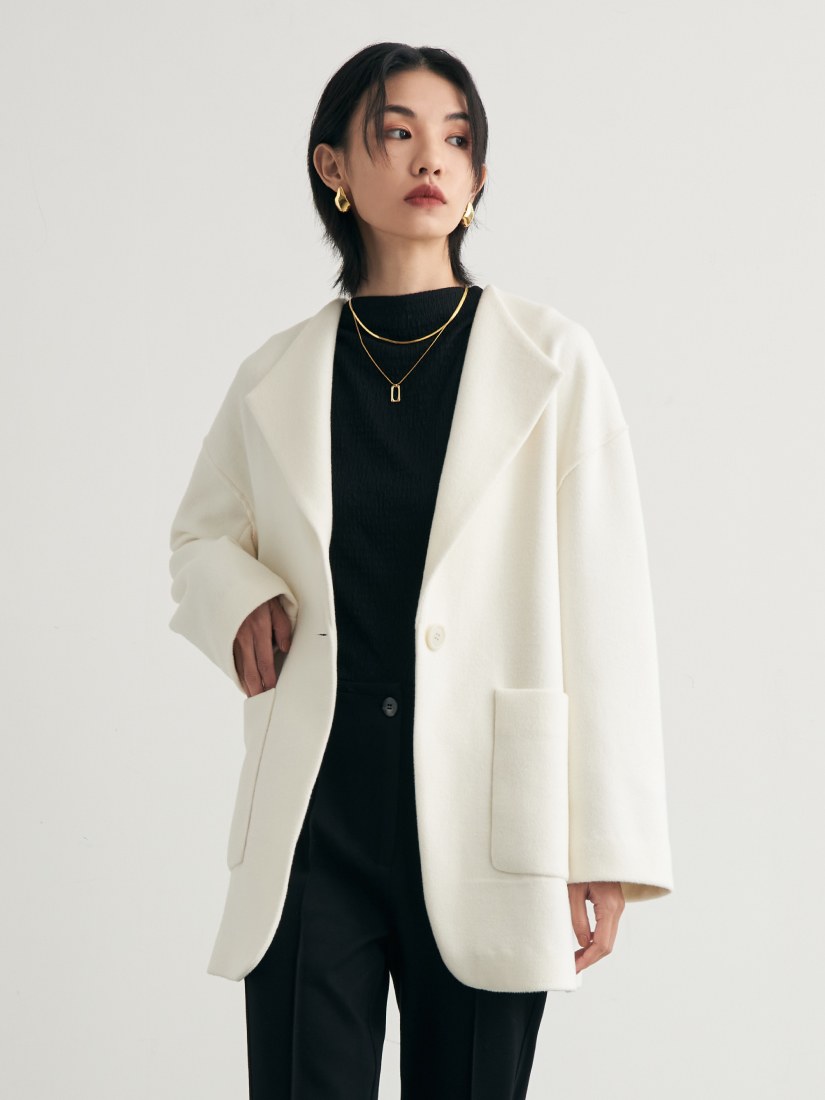 - 選用柔軟高級羊毛大衣料,羊毛50% 聚酯纖維50%