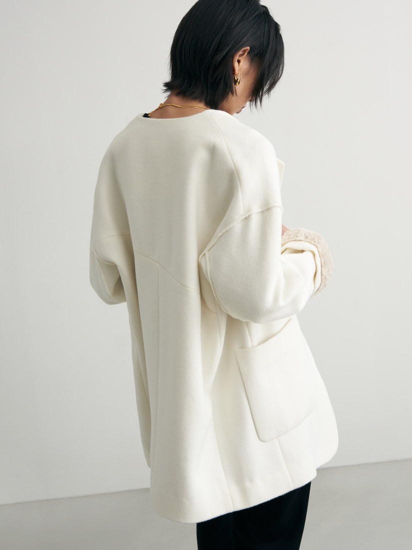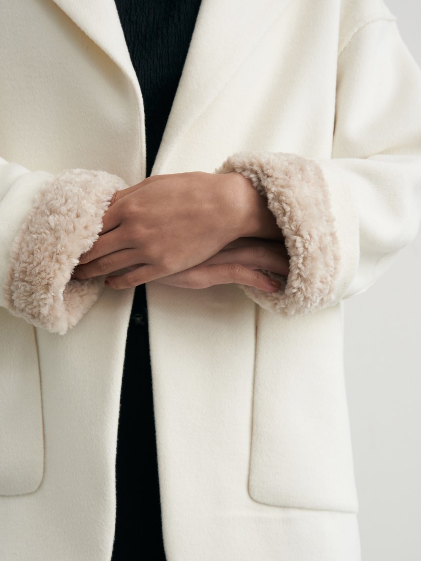 - 袖口反摺處羊羔毛配色拼接,造型多變