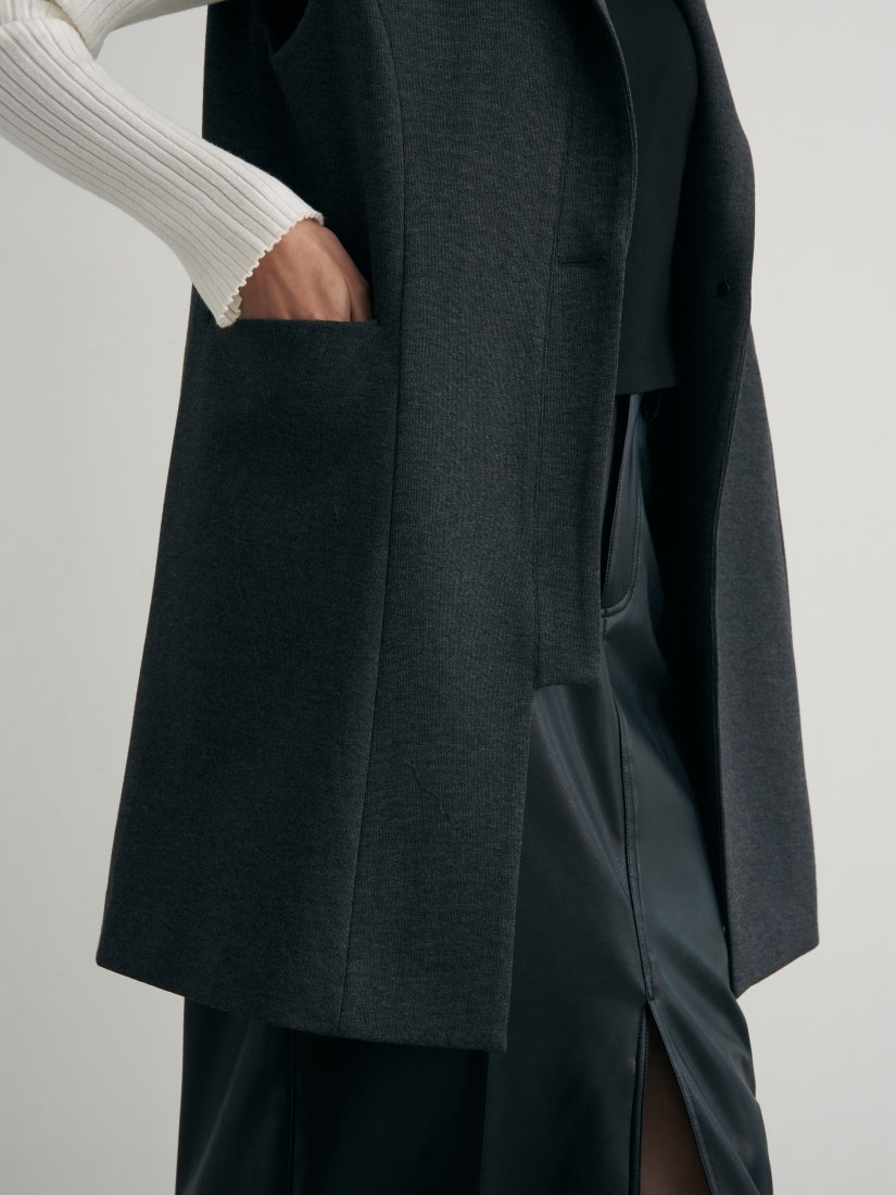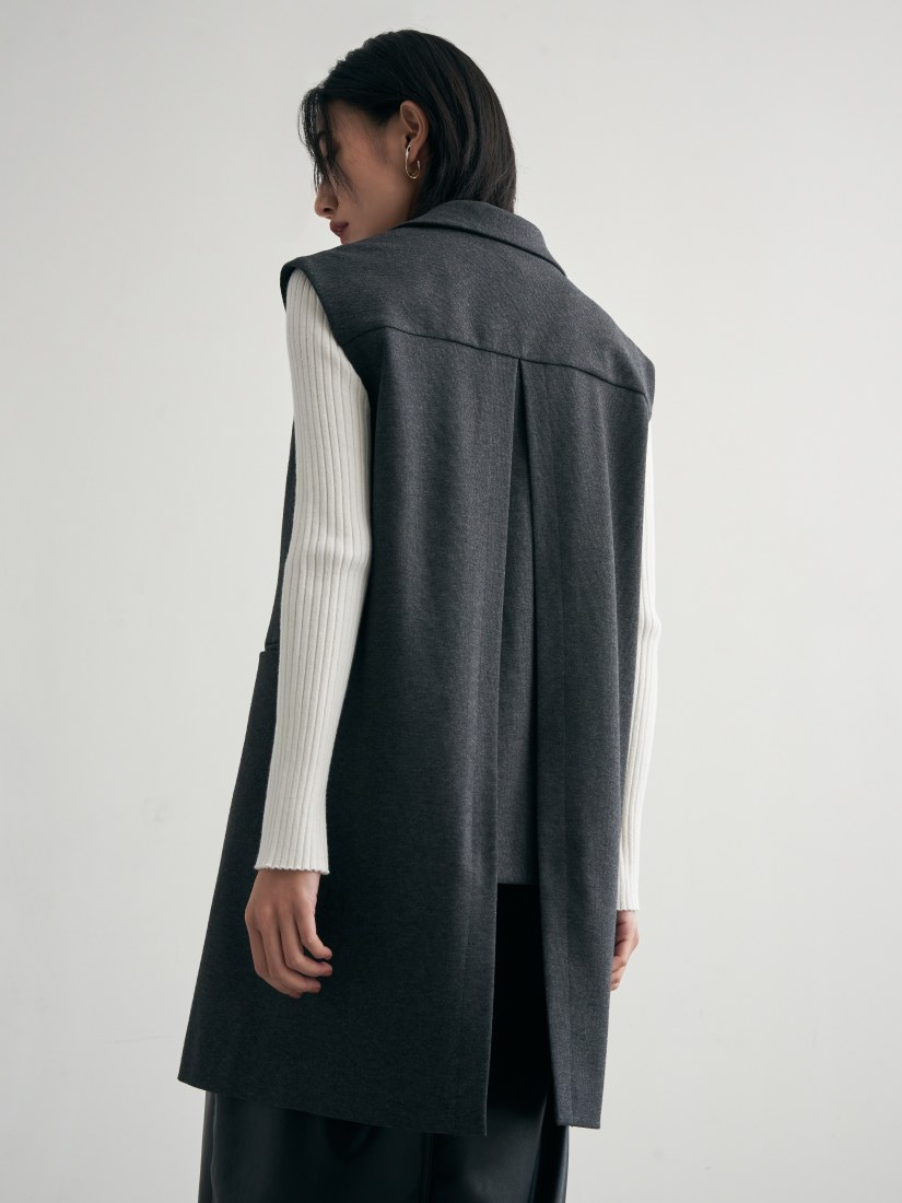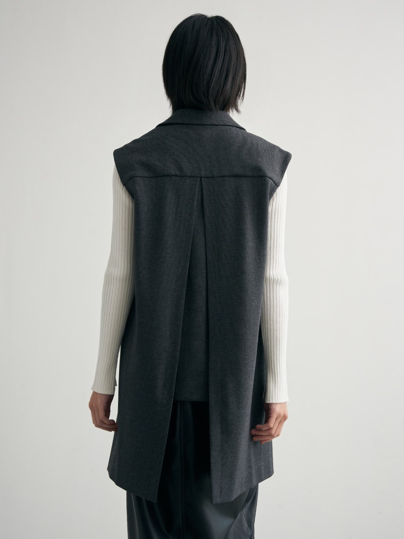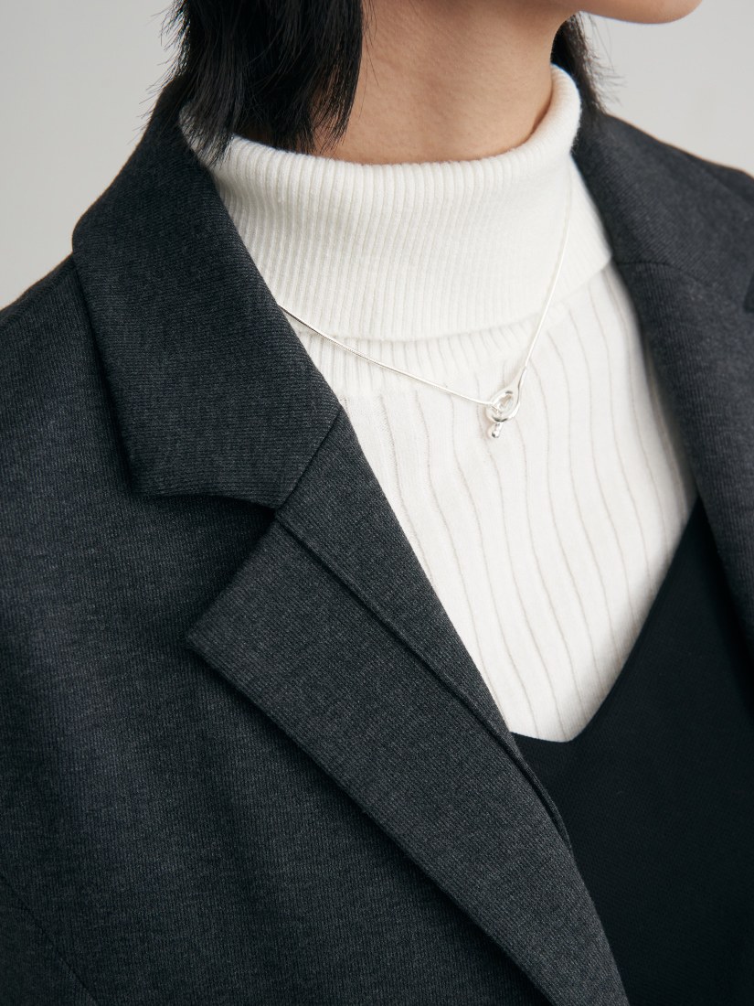 - 前身右領片立體挺縫線設計,加上不對稱門襟設計,營造假兩件效果