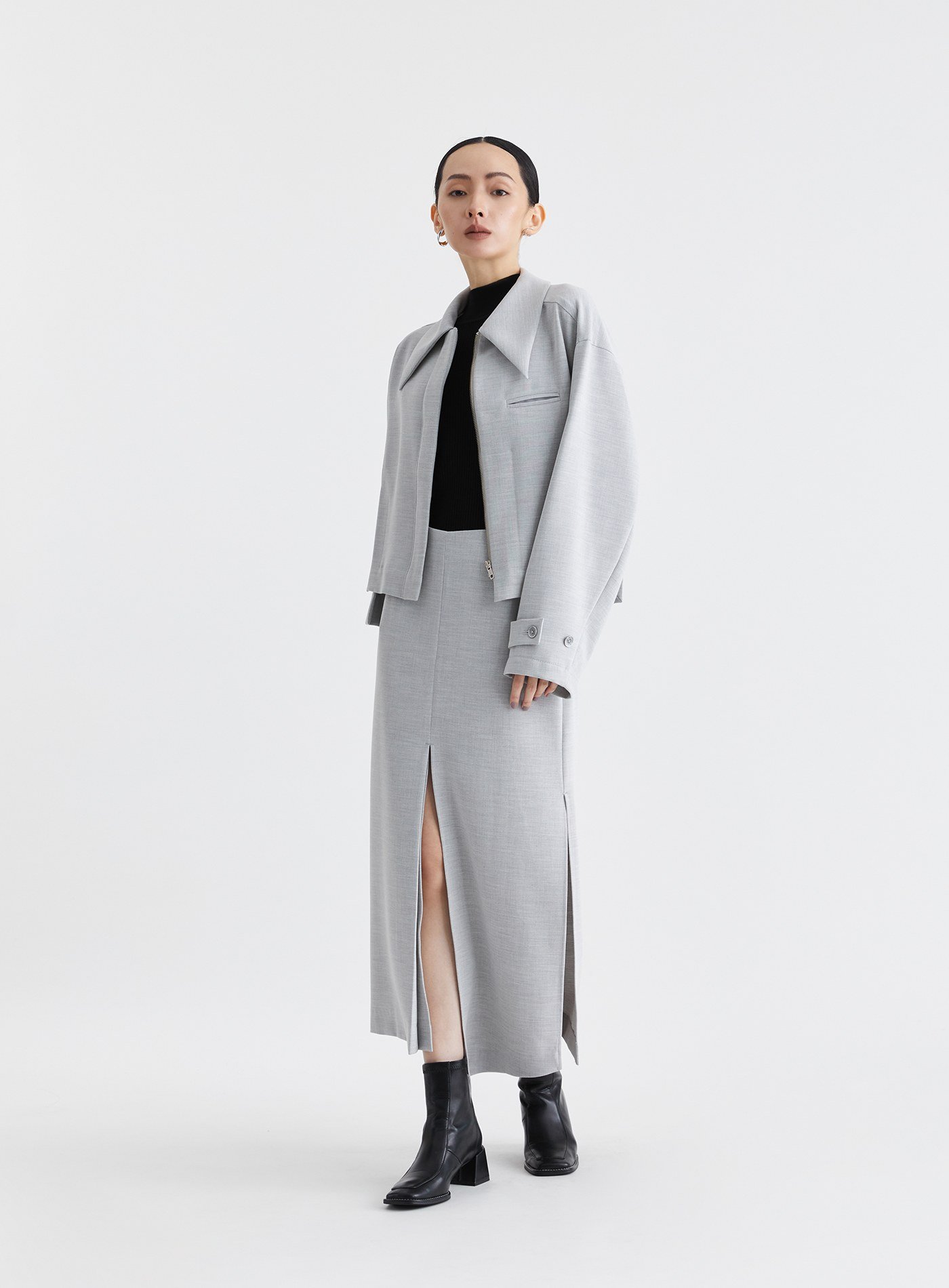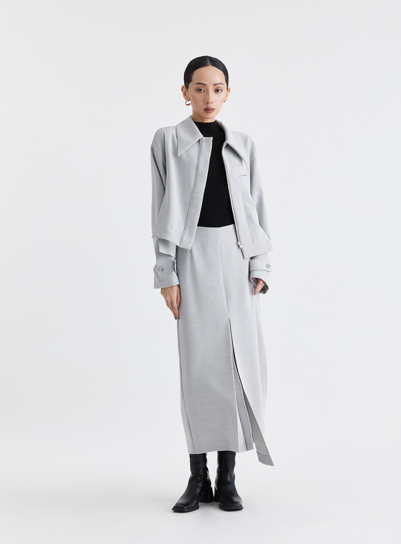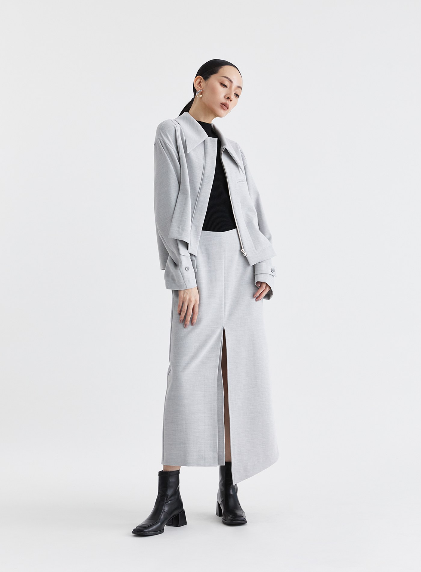 - 不對稱多下擺設計,直筒版型修飾臀型