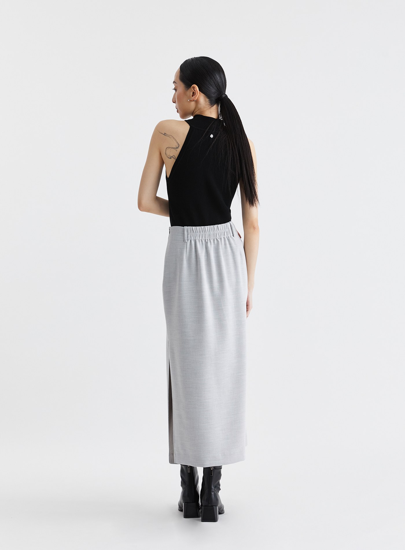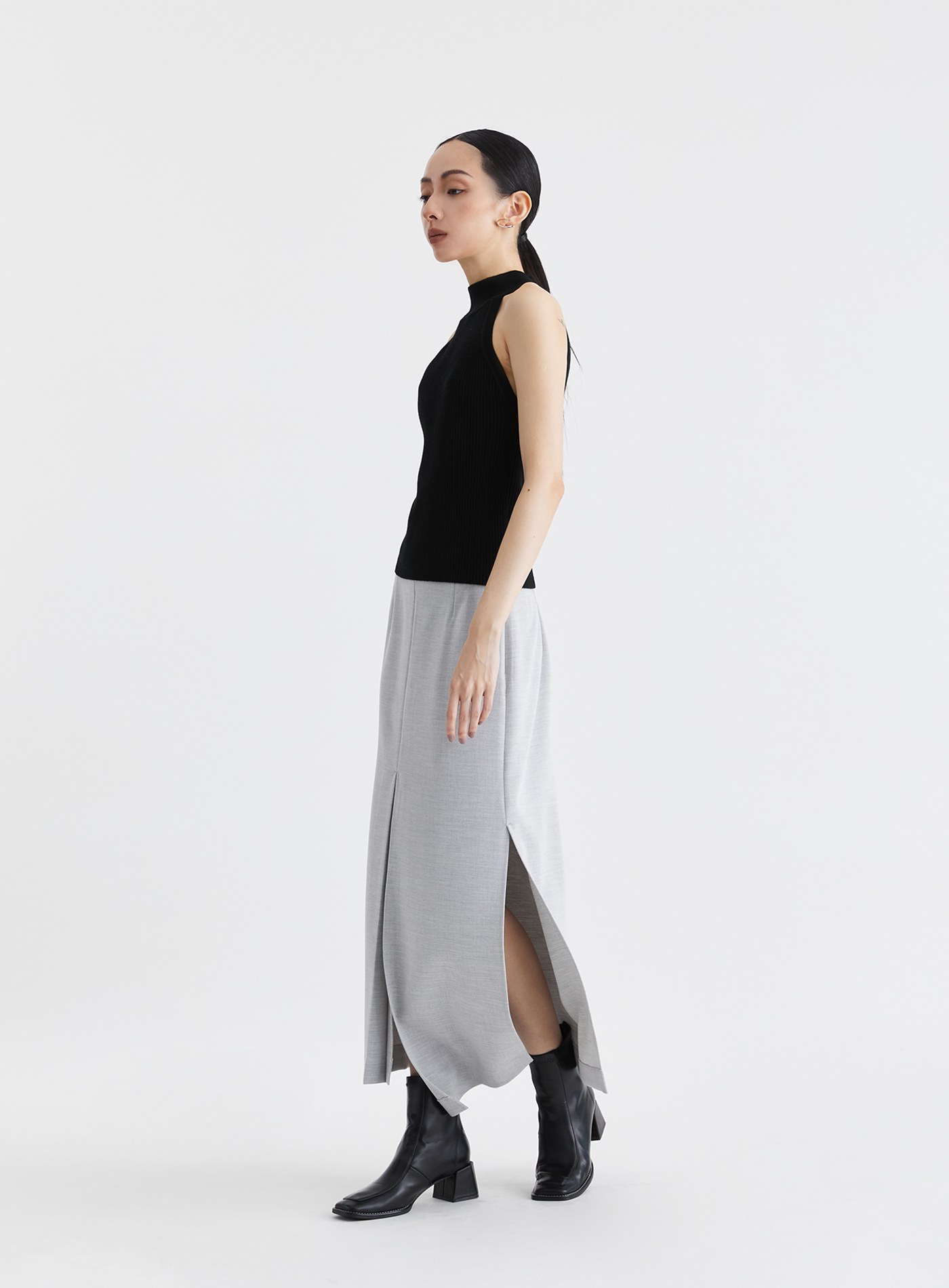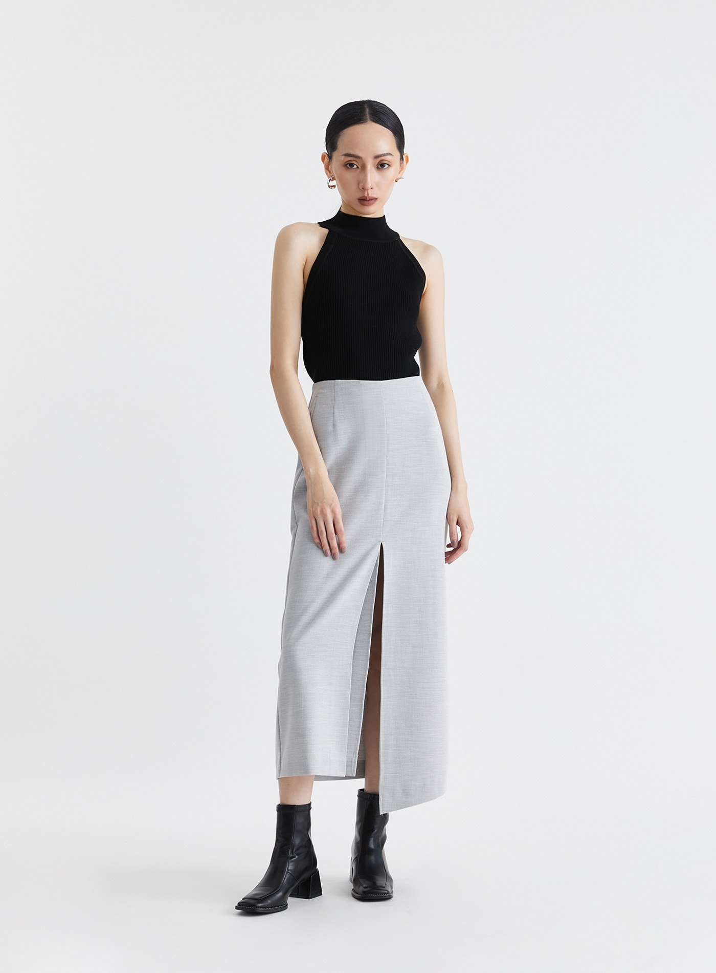 - 不對稱多下擺設計,直筒版型修飾臀型