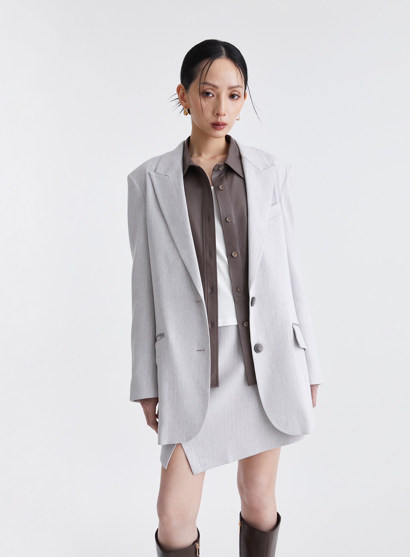 - 選用經典人字紋面料,略有光澤感,穿著舒適親膚