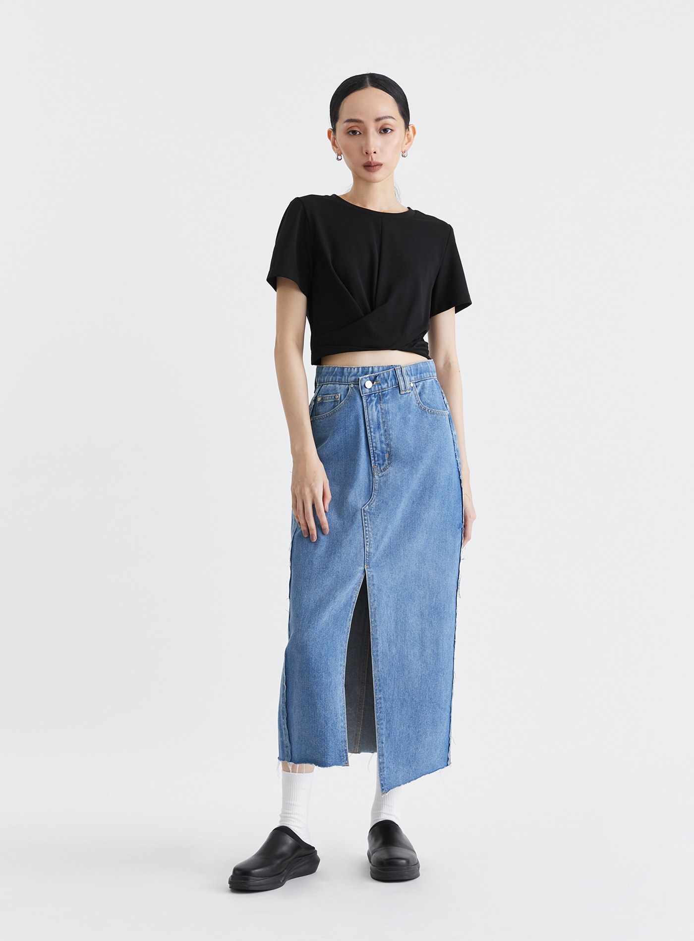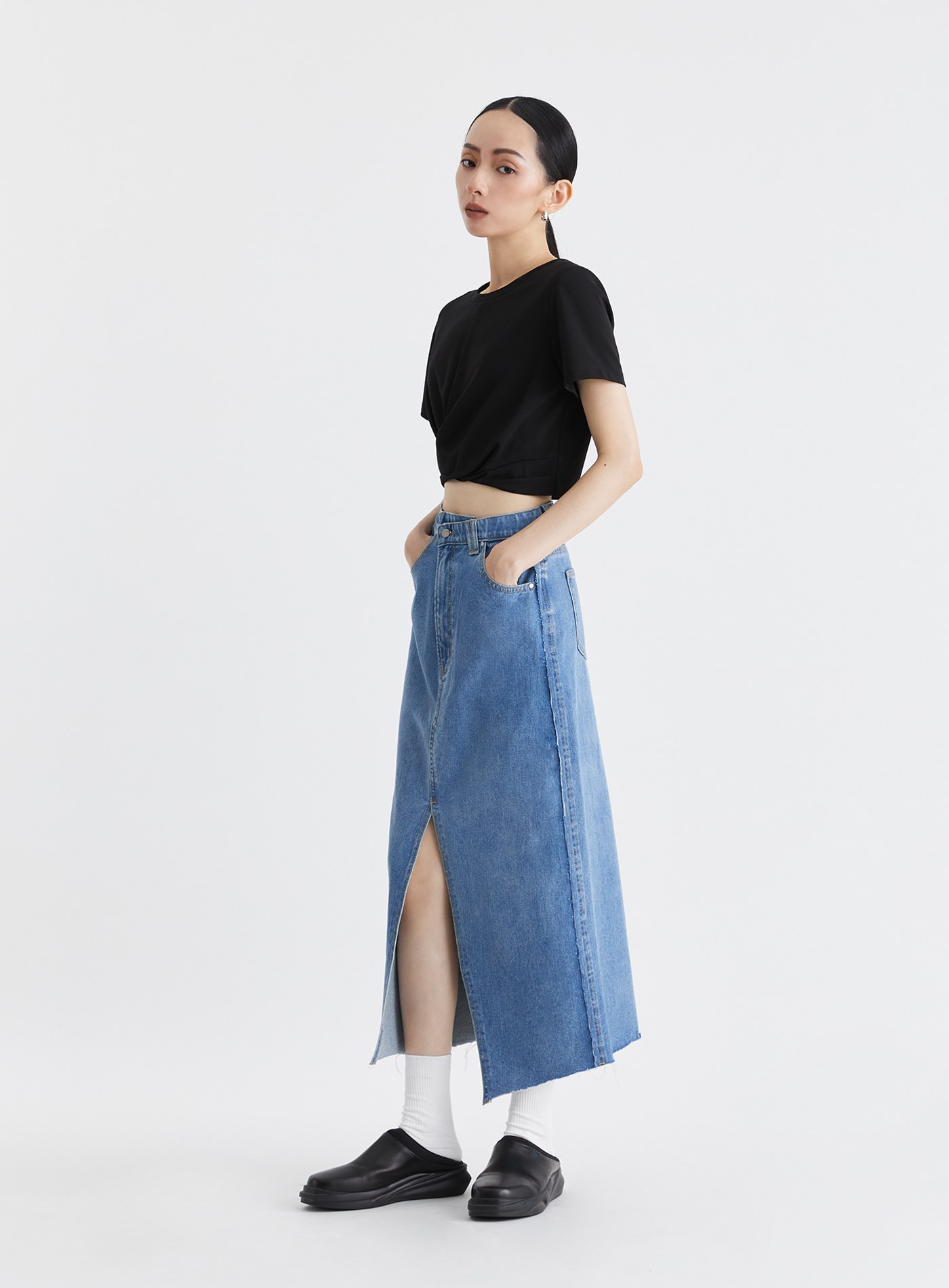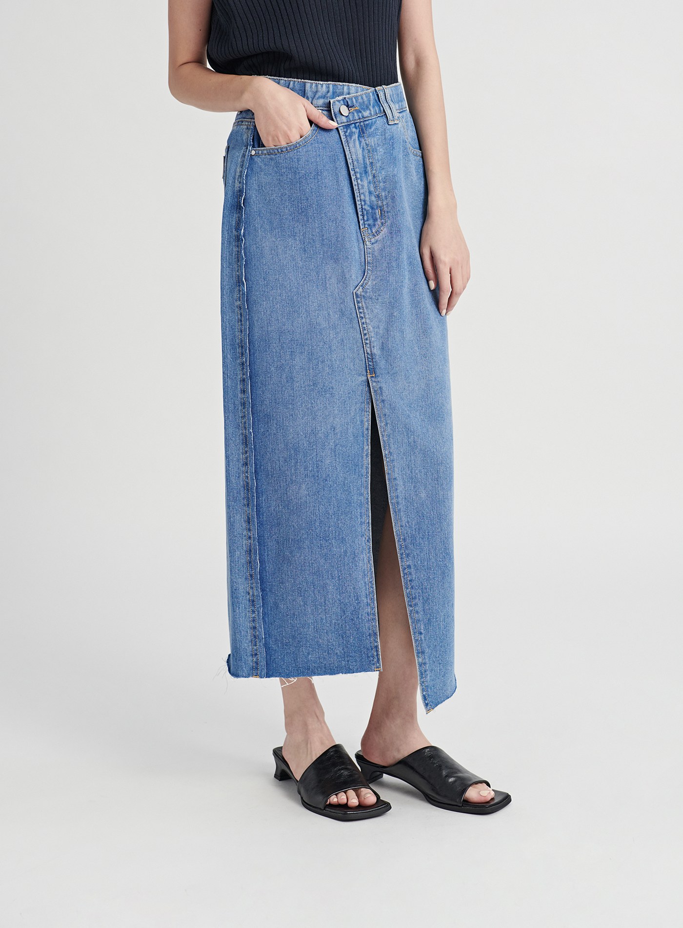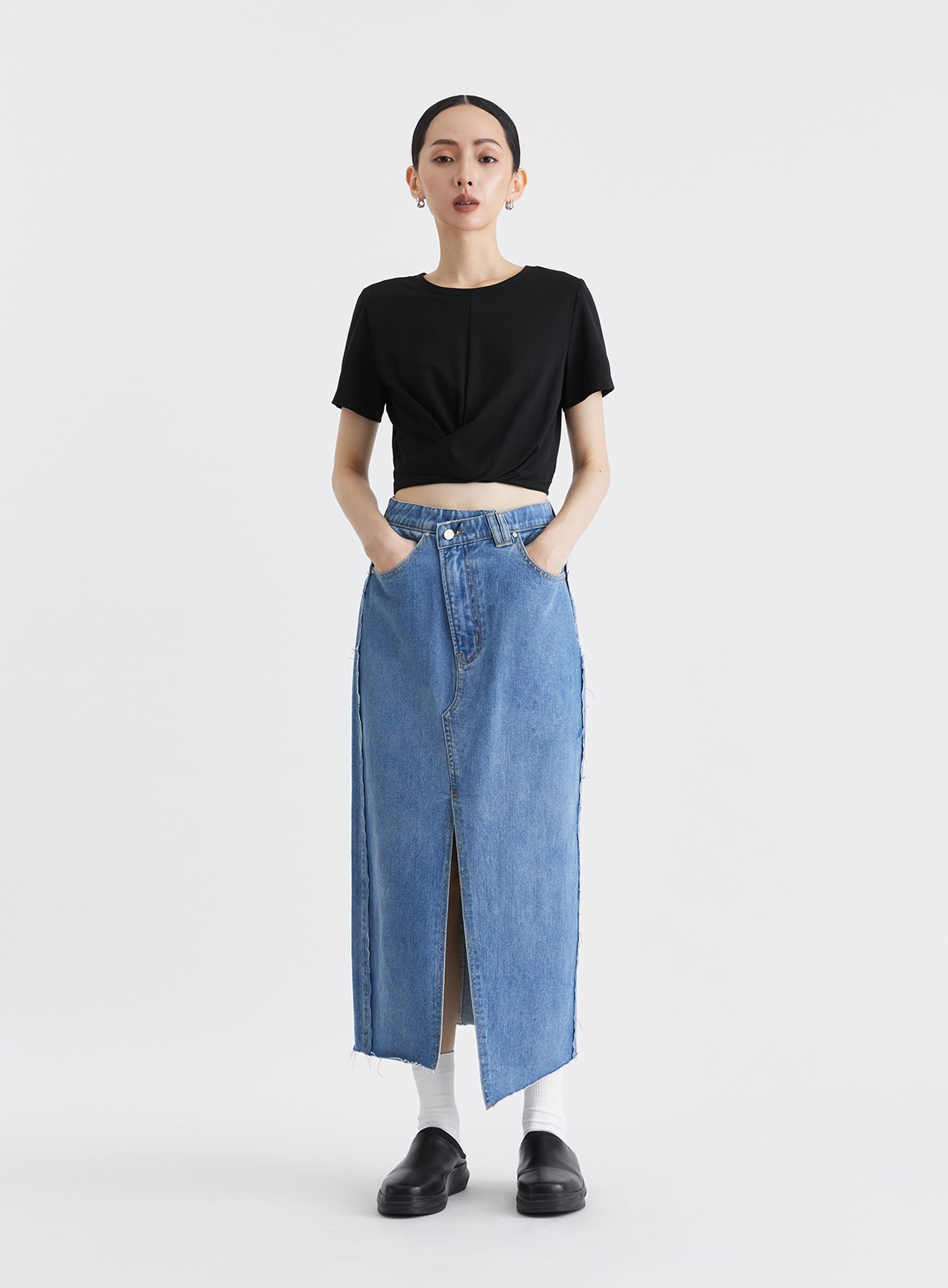 不對稱修身開衩直筒長裙$73 USD