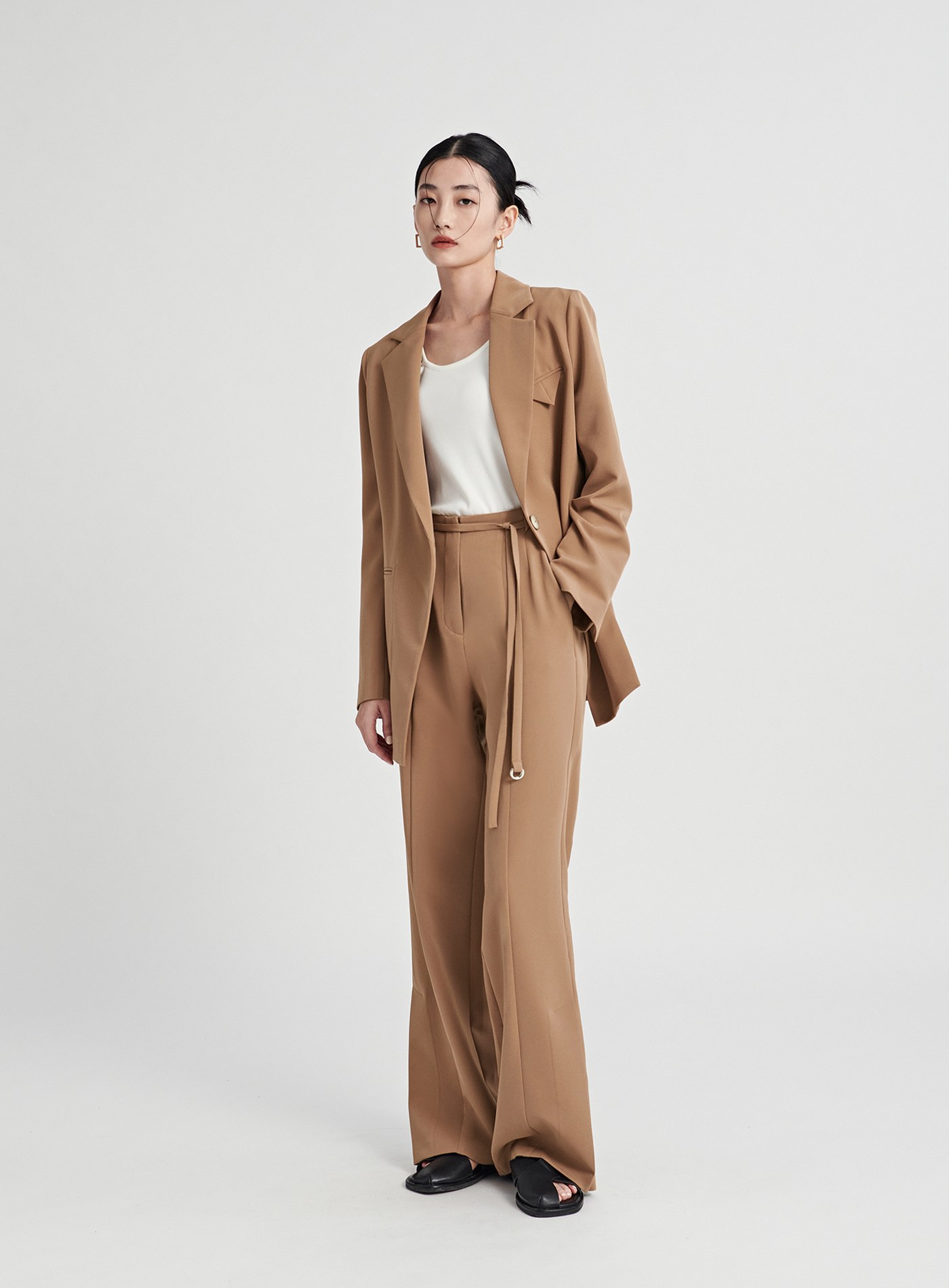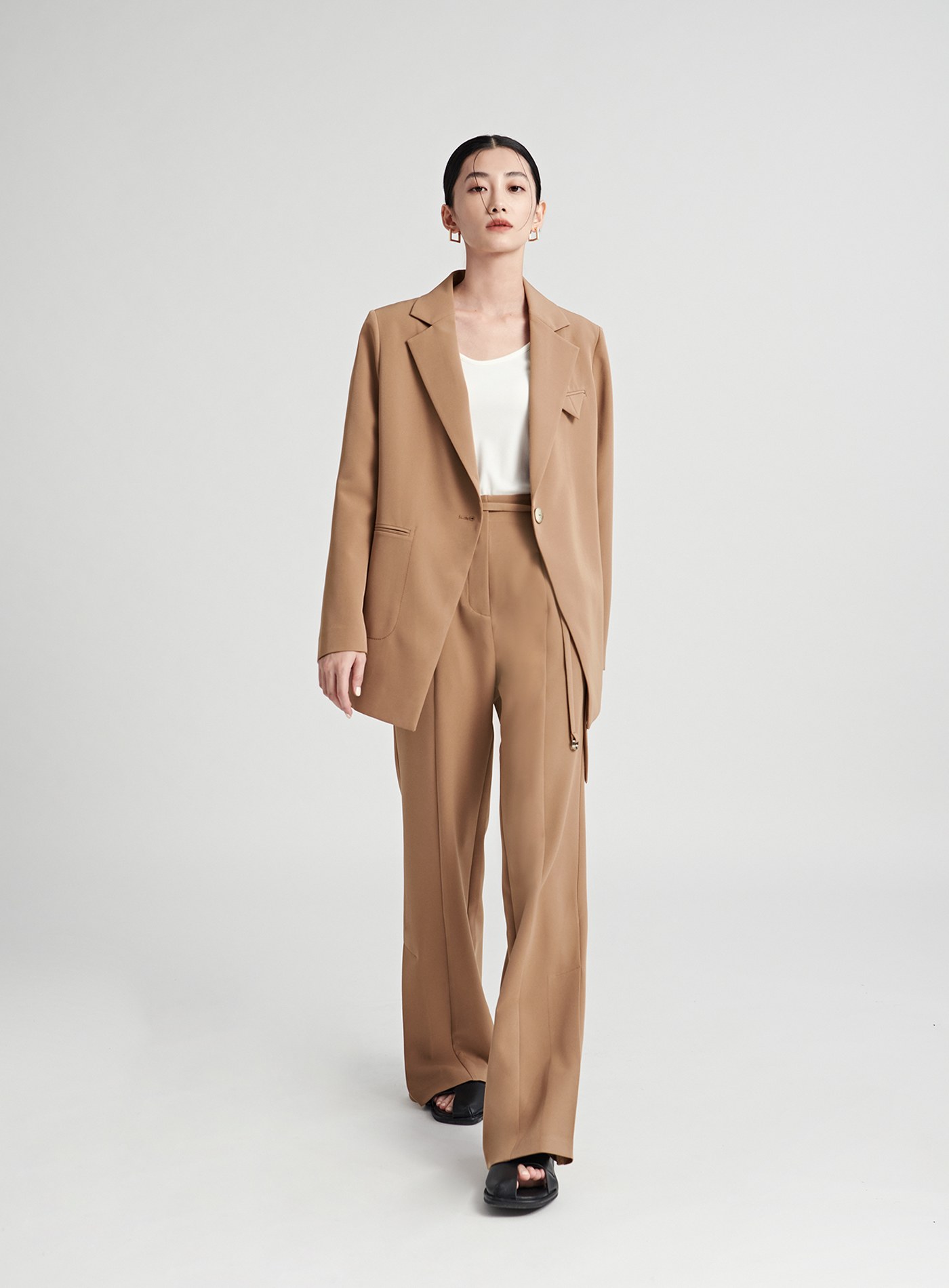 - 選用垂墜感西裝面料,手感挺闊抗皺
