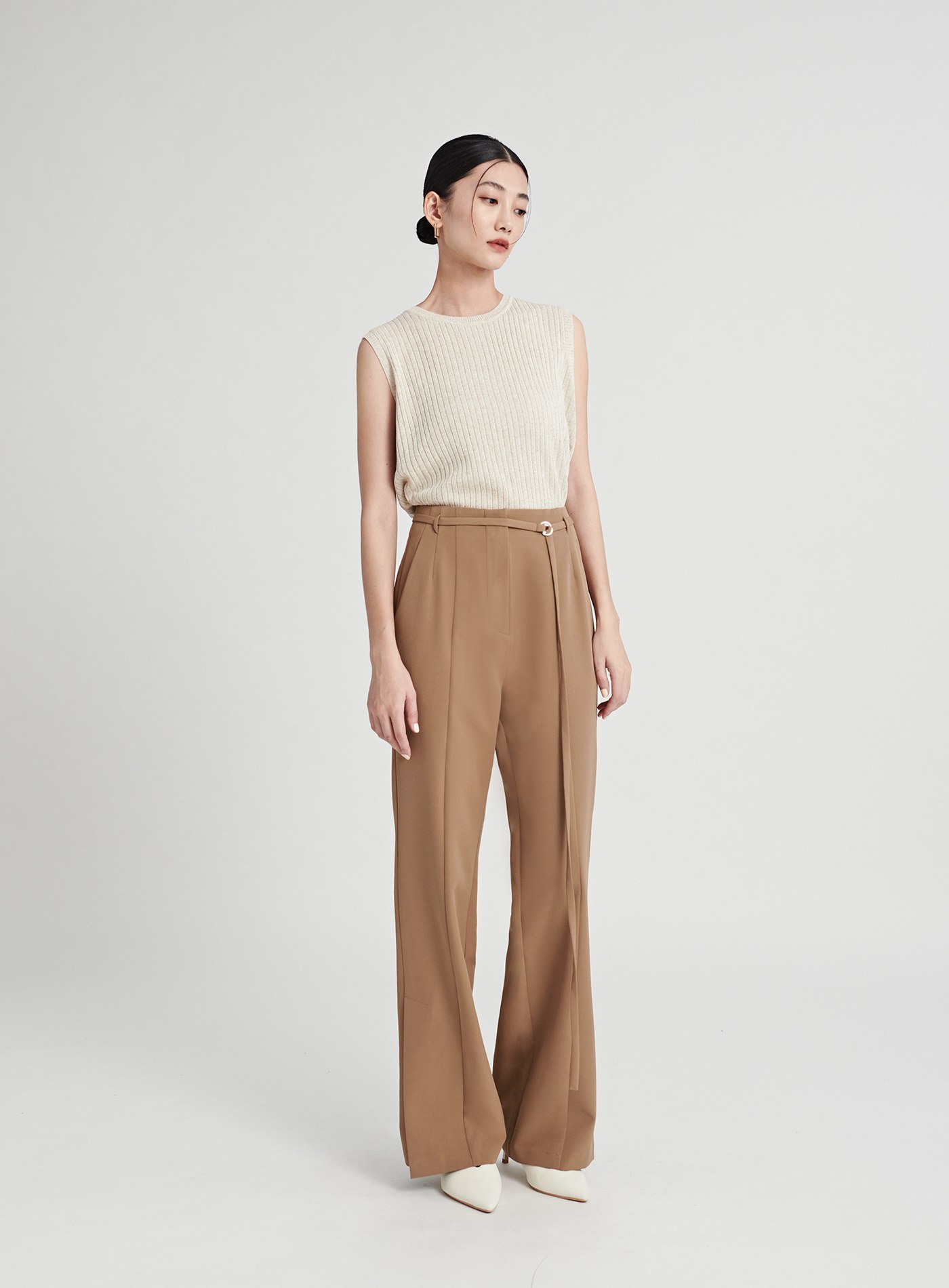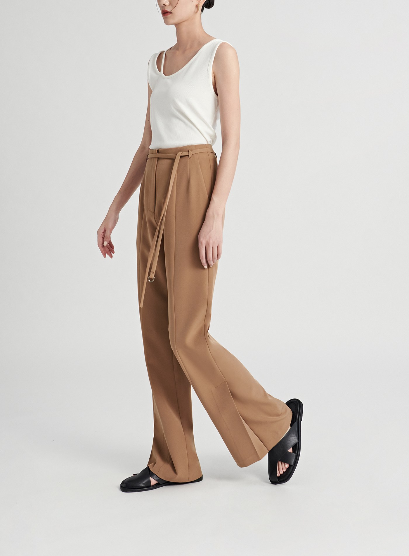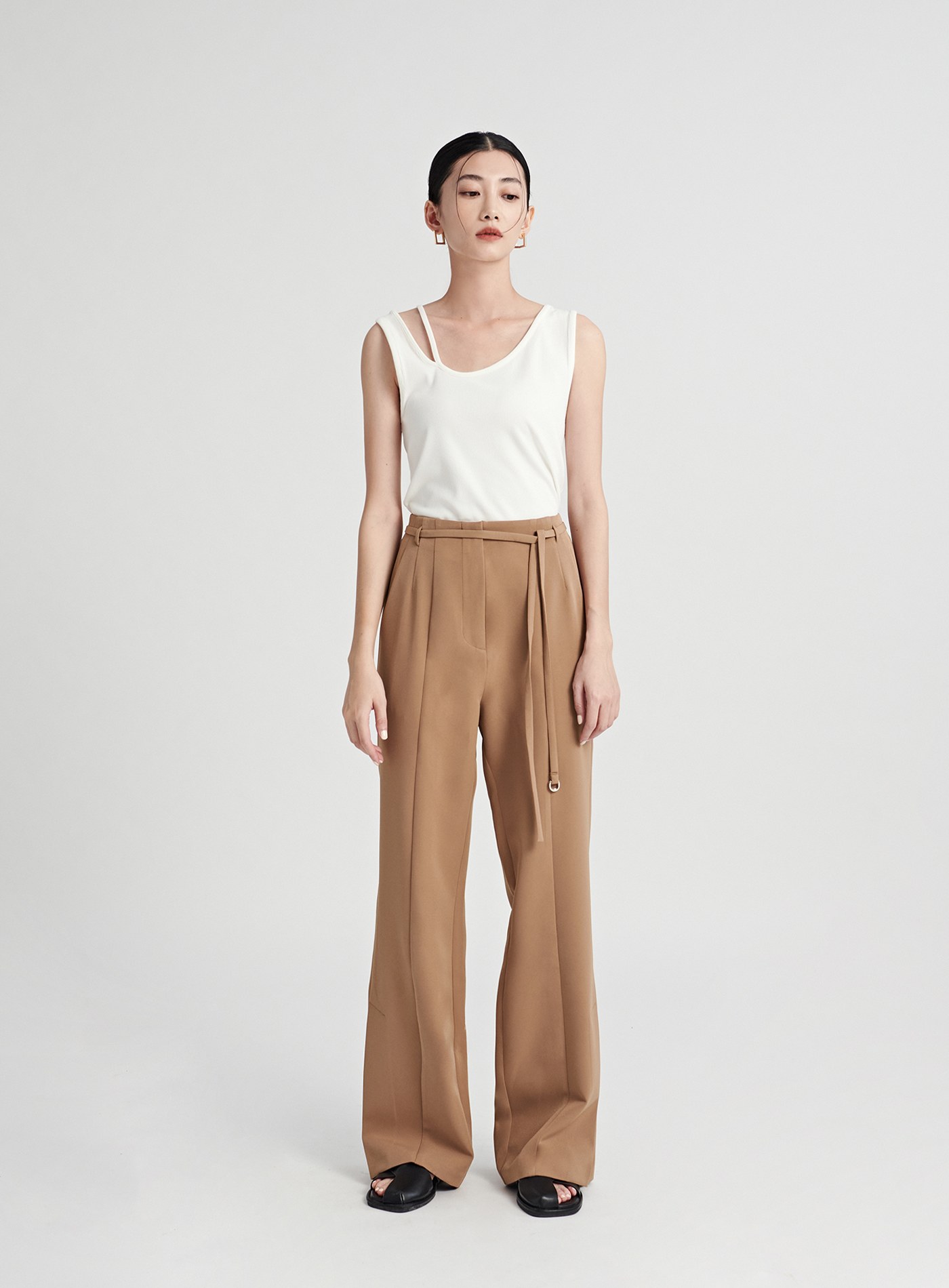 - 無腰頭中高腰寬褲設計,修飾臀腿視覺效果