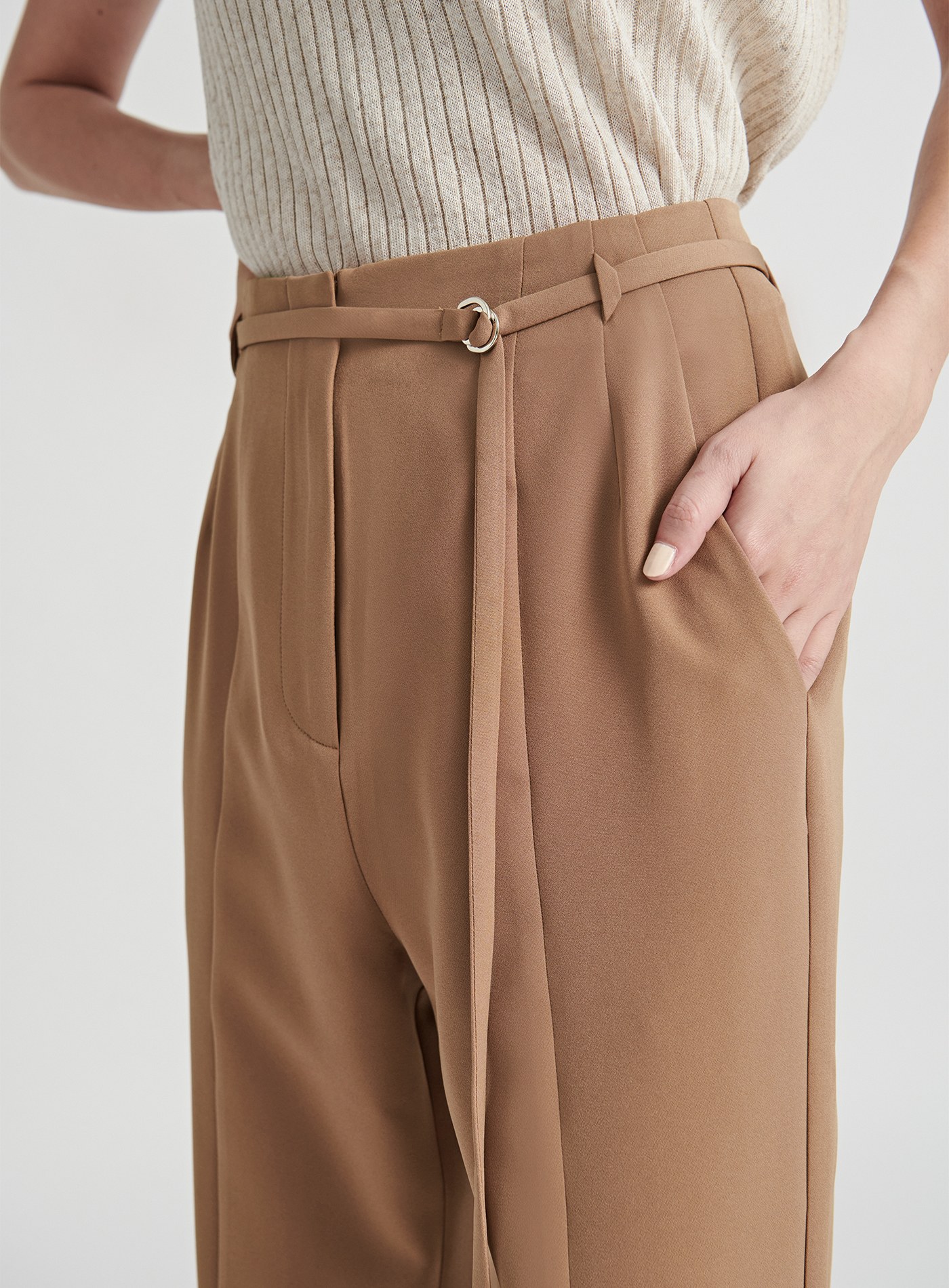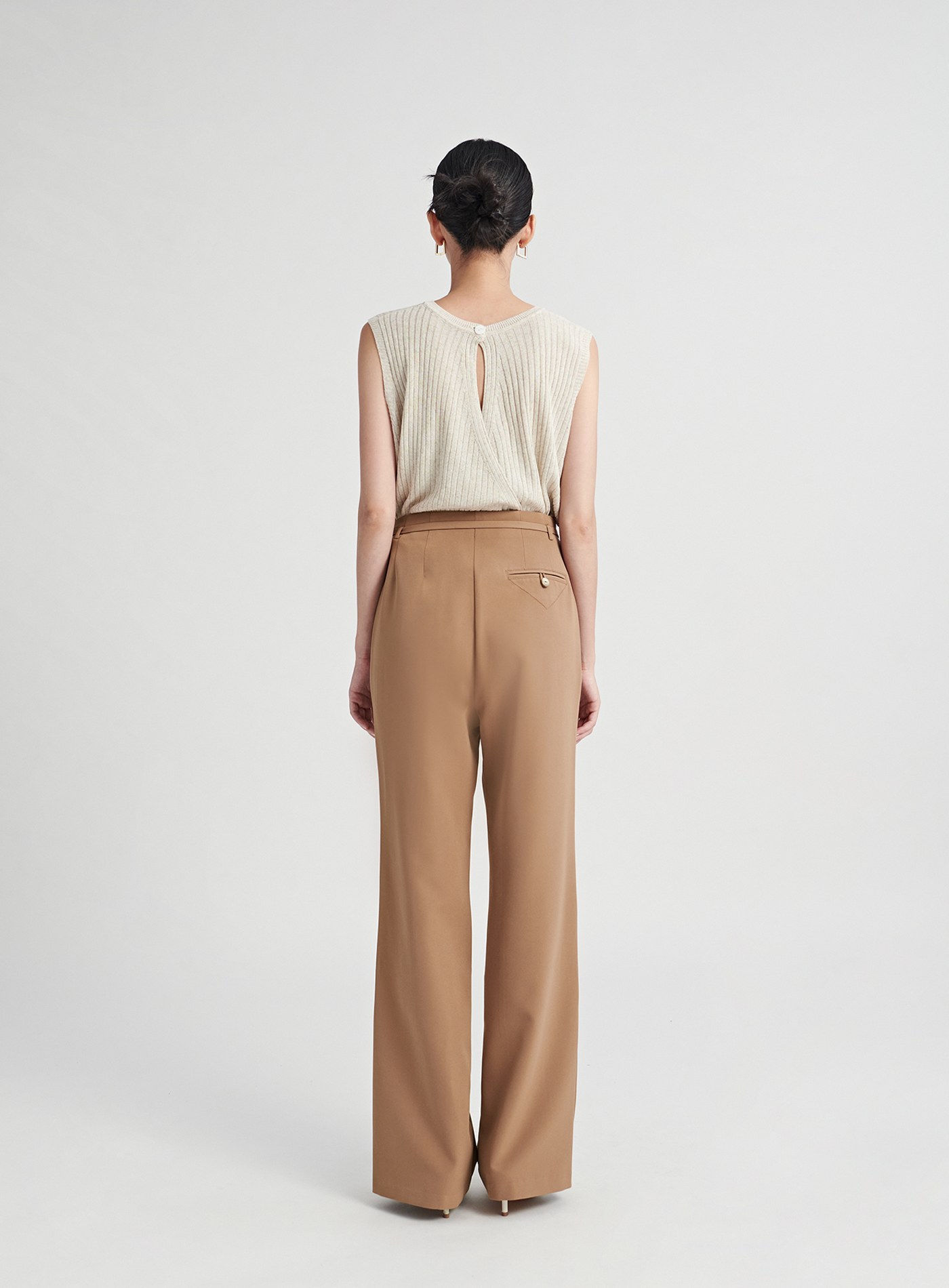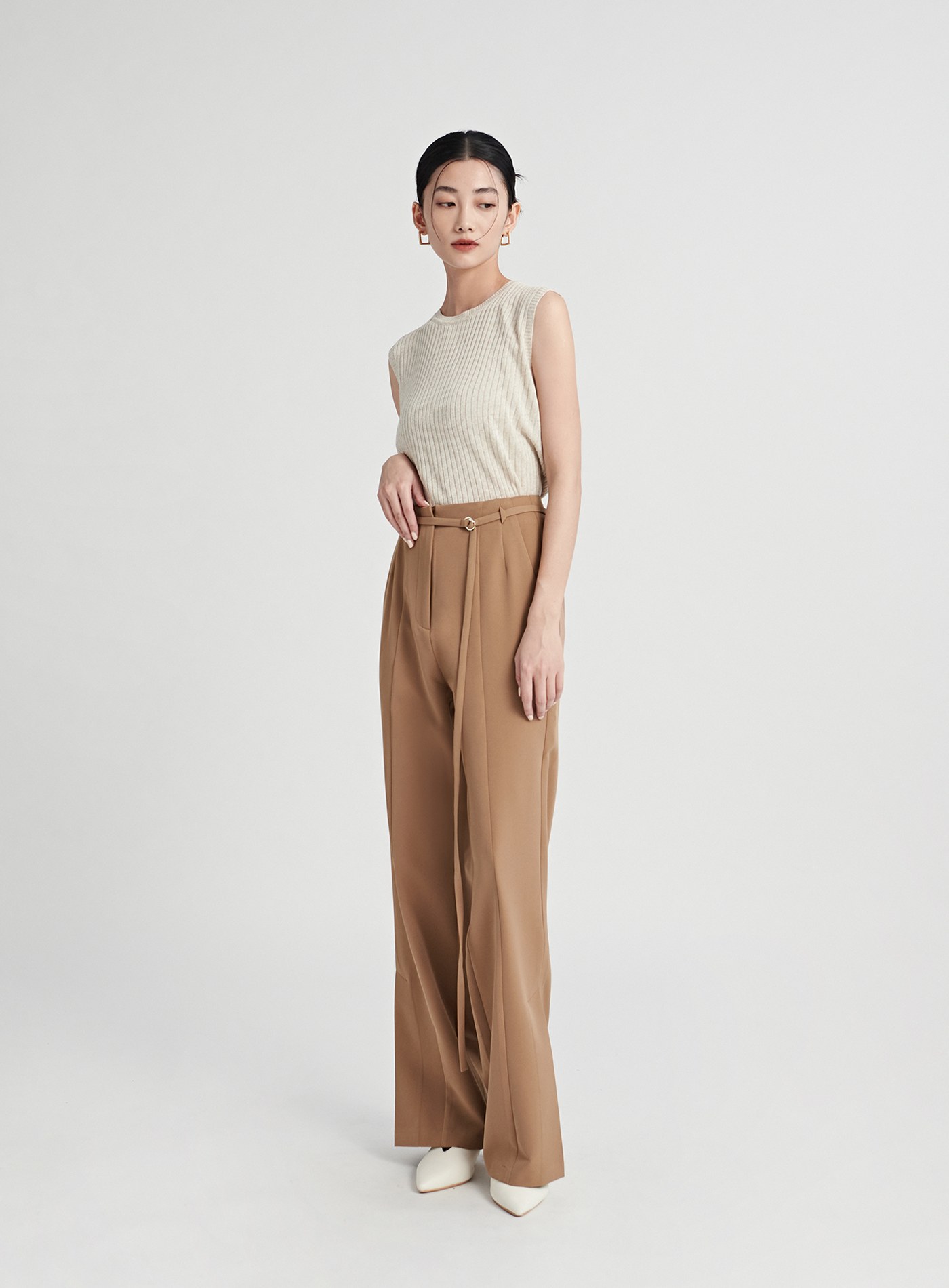 - 無腰頭中高腰寬褲設計,修飾臀腿視覺效果
