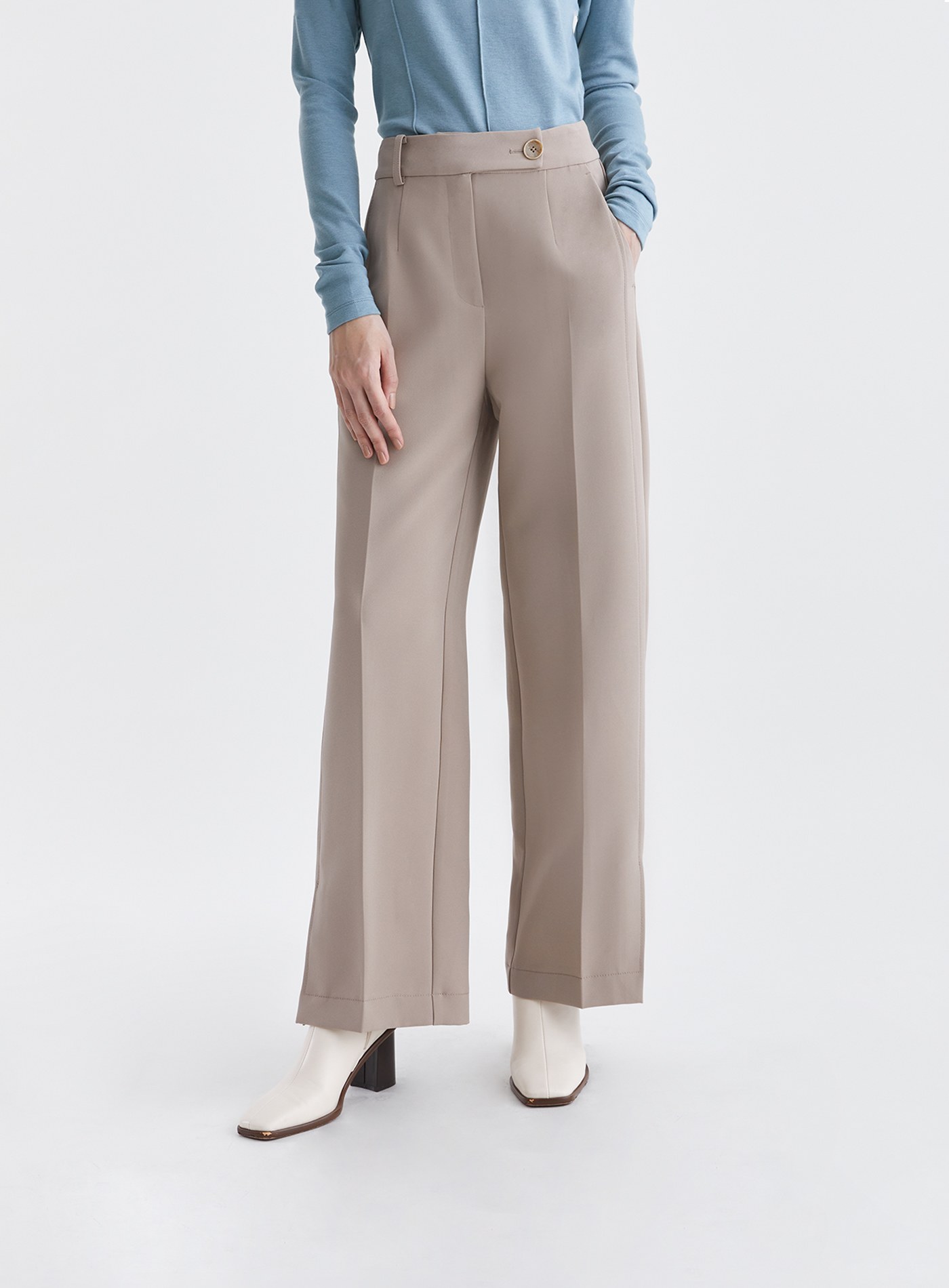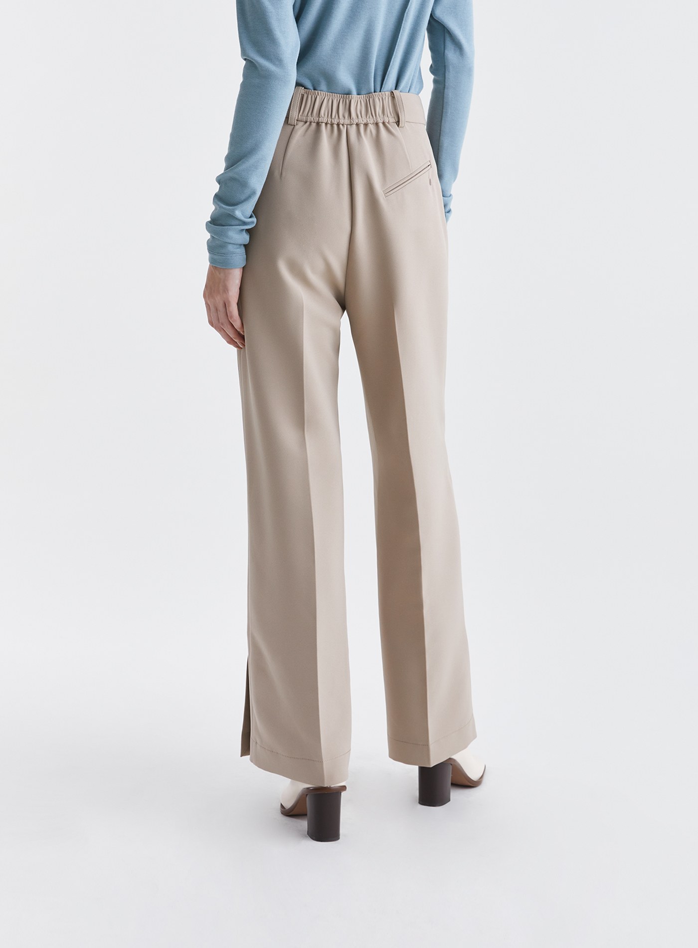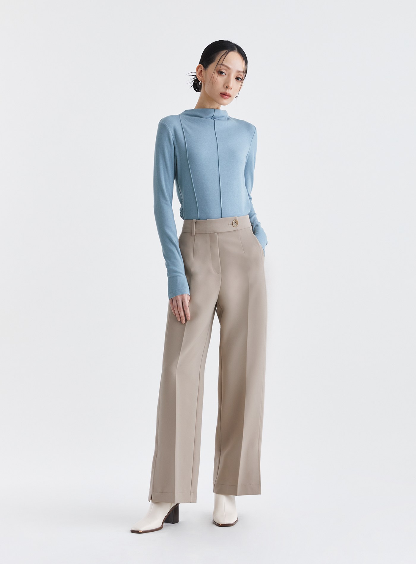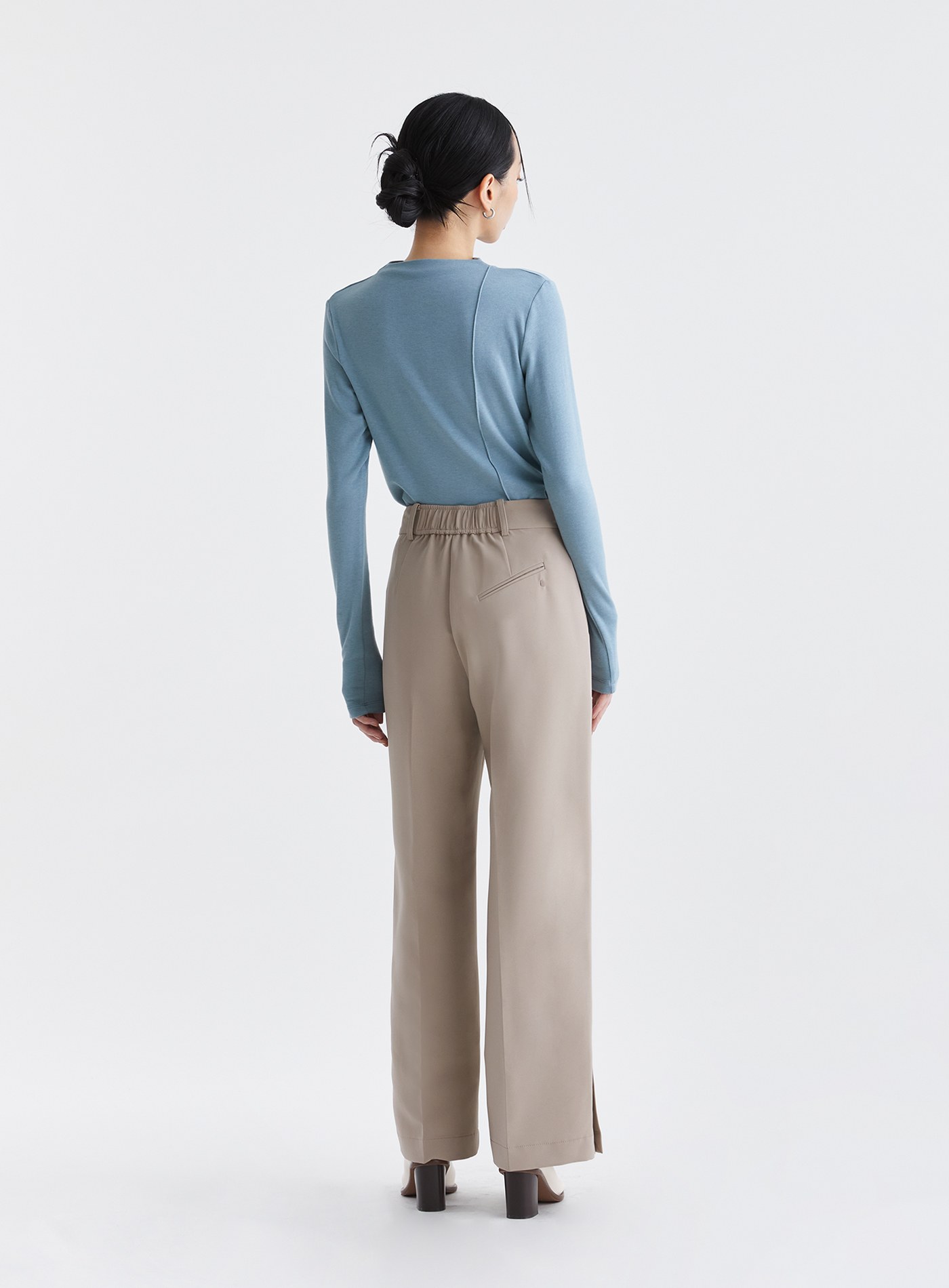 - 褲身側邊剪接壓粗線,褲口開衩增添流動感
