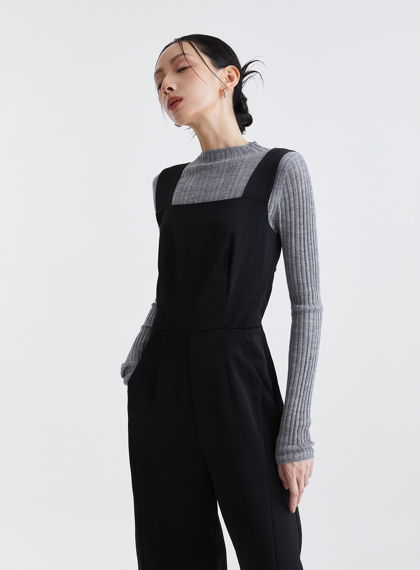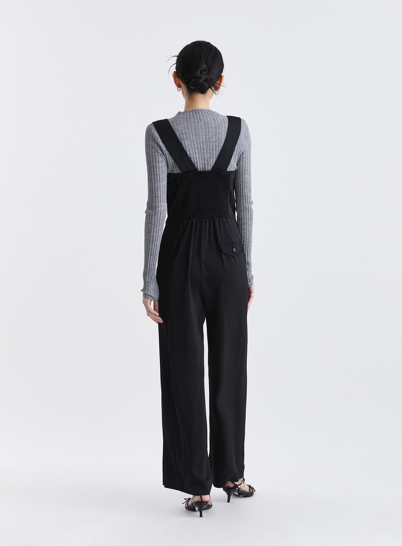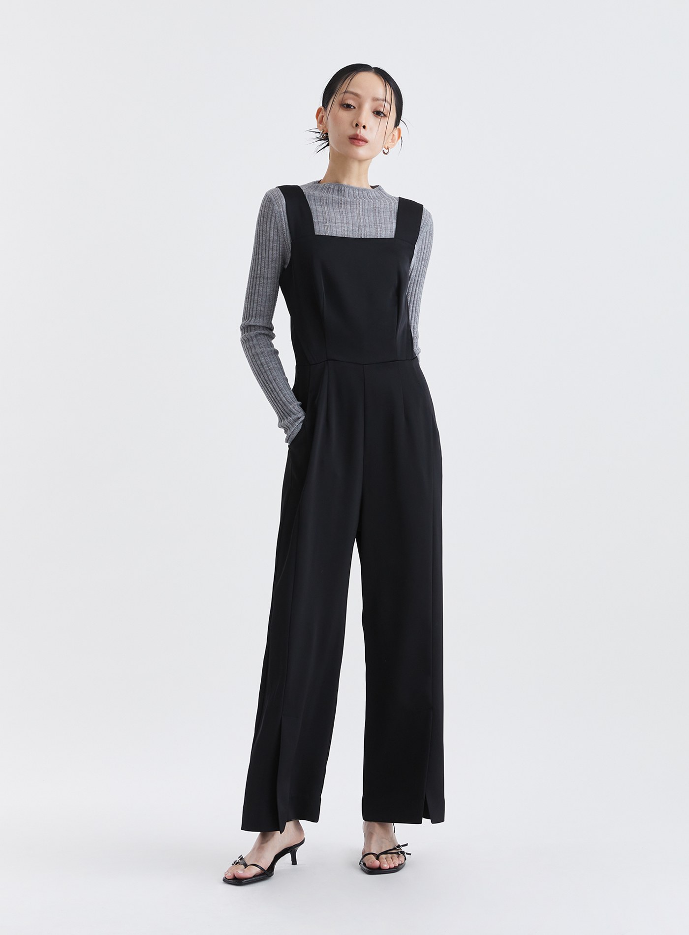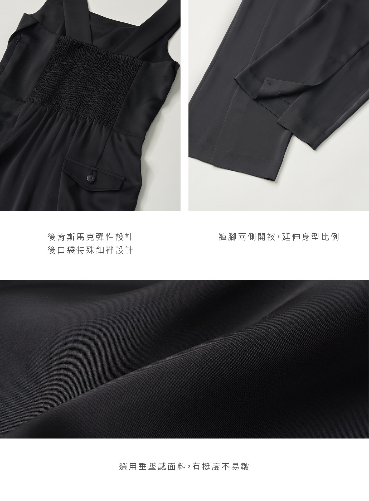 - 褲腳開衩,後口袋特殊釦袢設計,左斜邊隱形拉鍊
