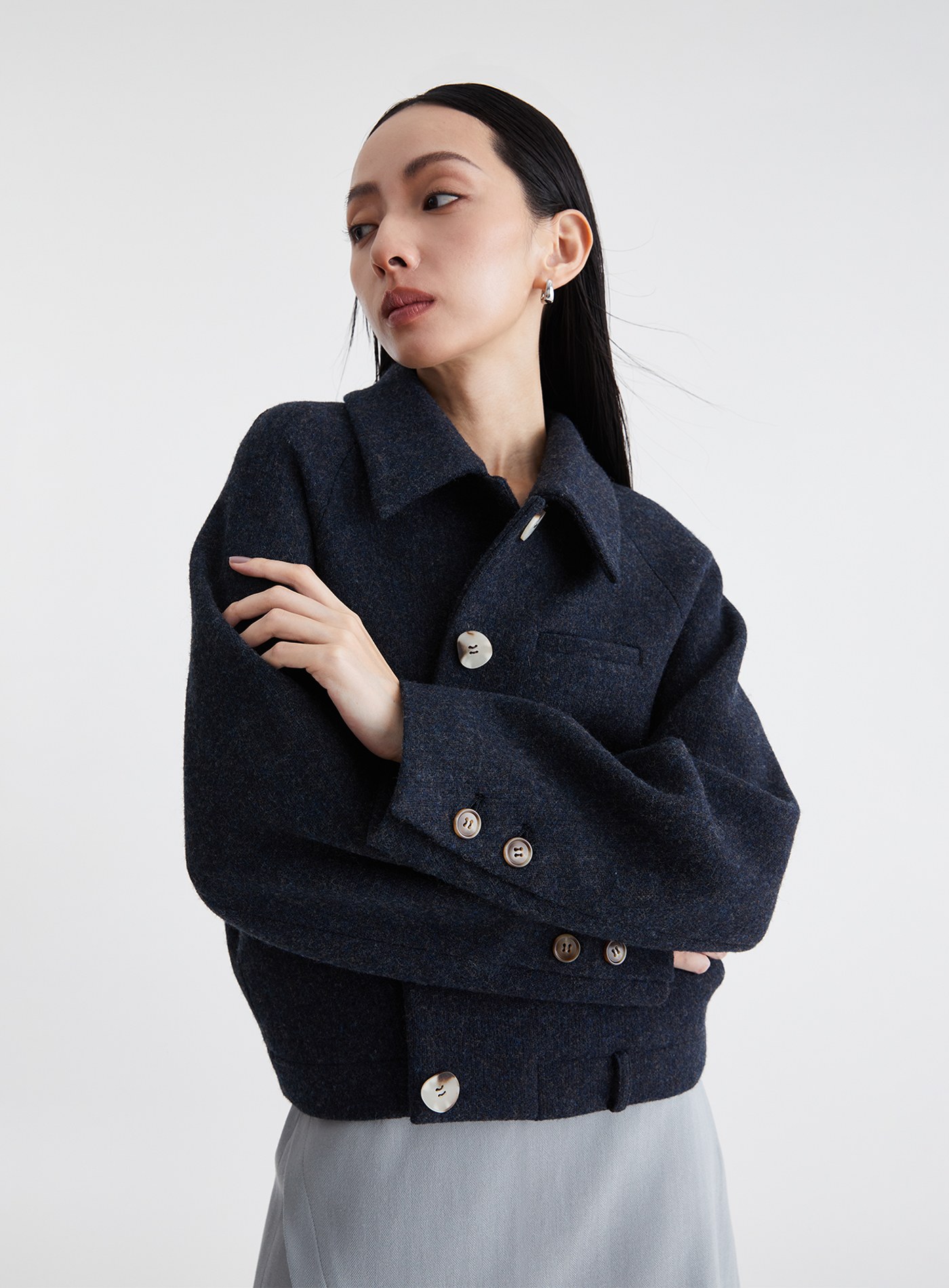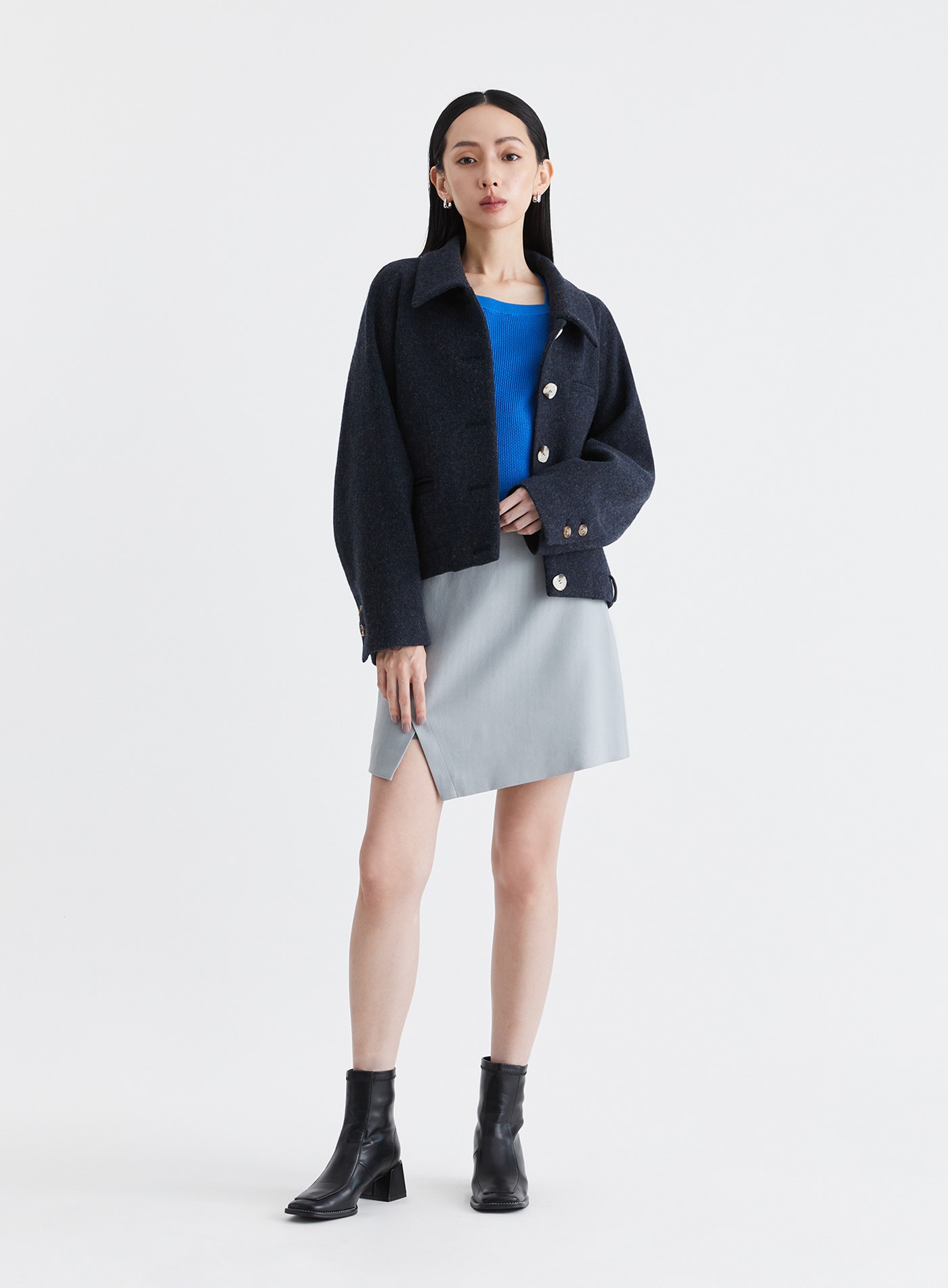 - 選用獨家開發針織毛料,面感蓬鬆,獨特交織紗線色
