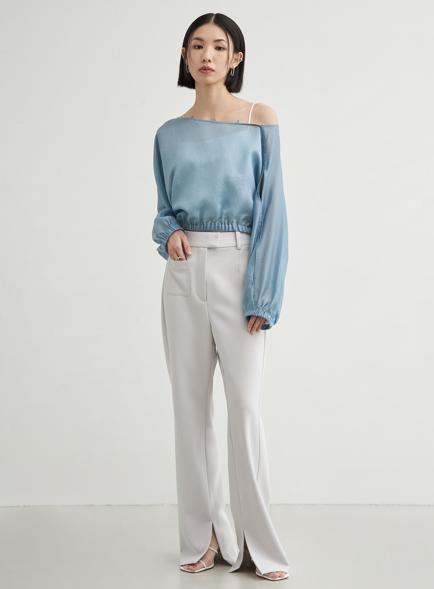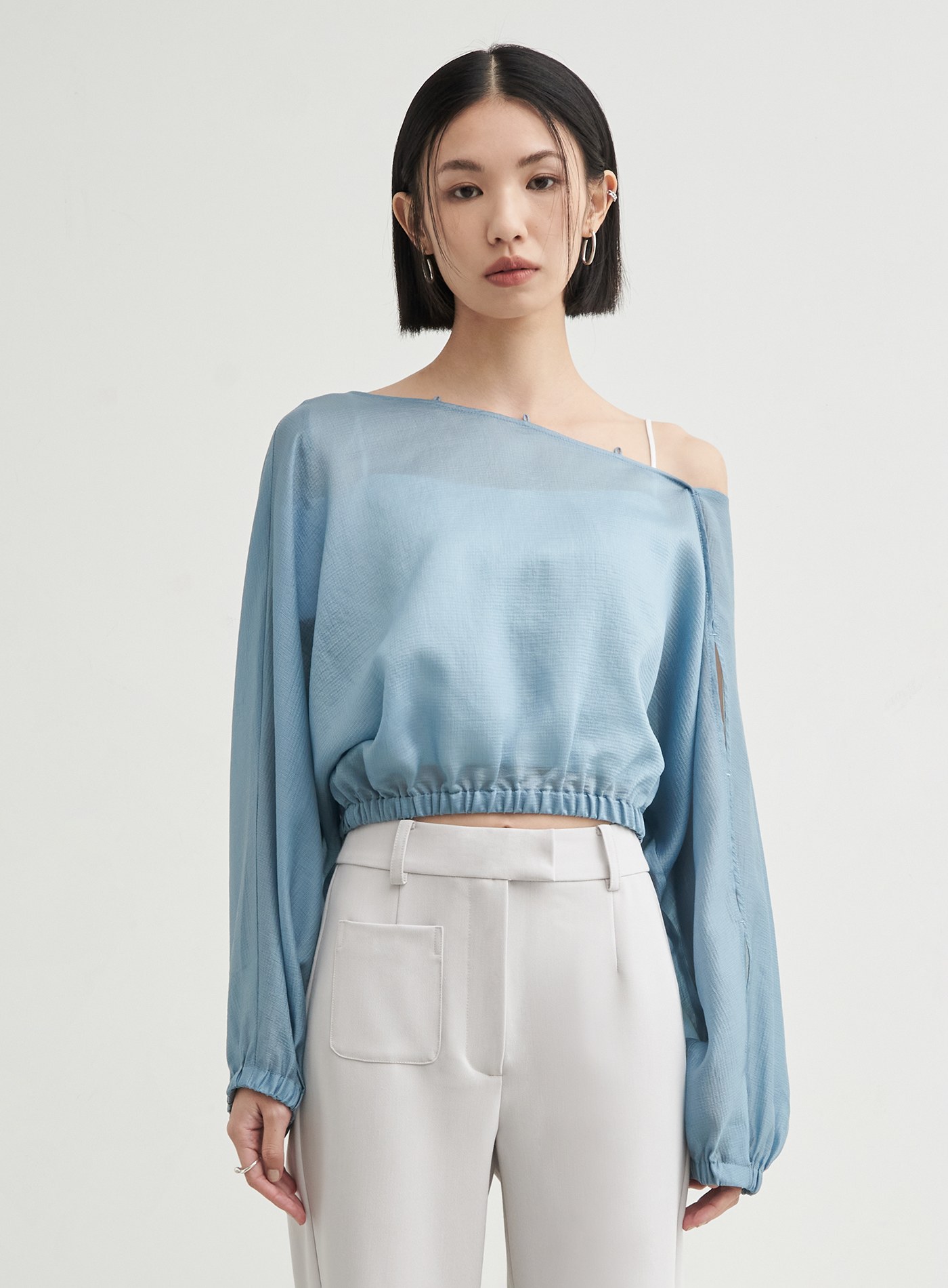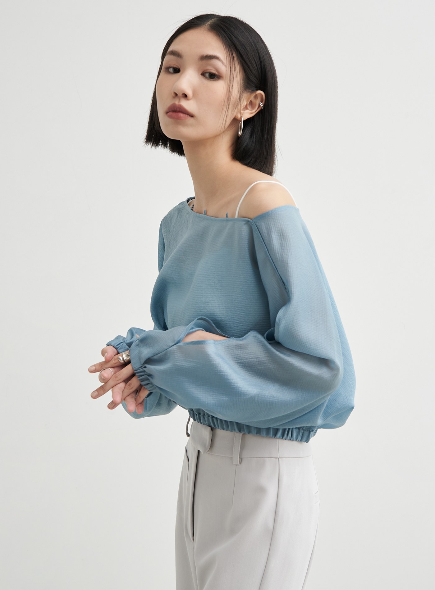 - 領口釦根設計與袖身簍空細節,隨興中營造出優雅氛圍