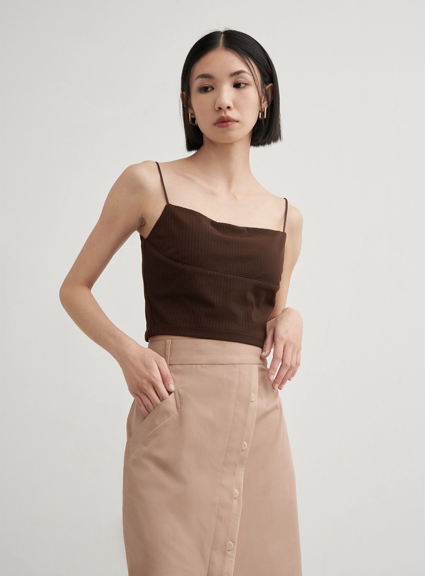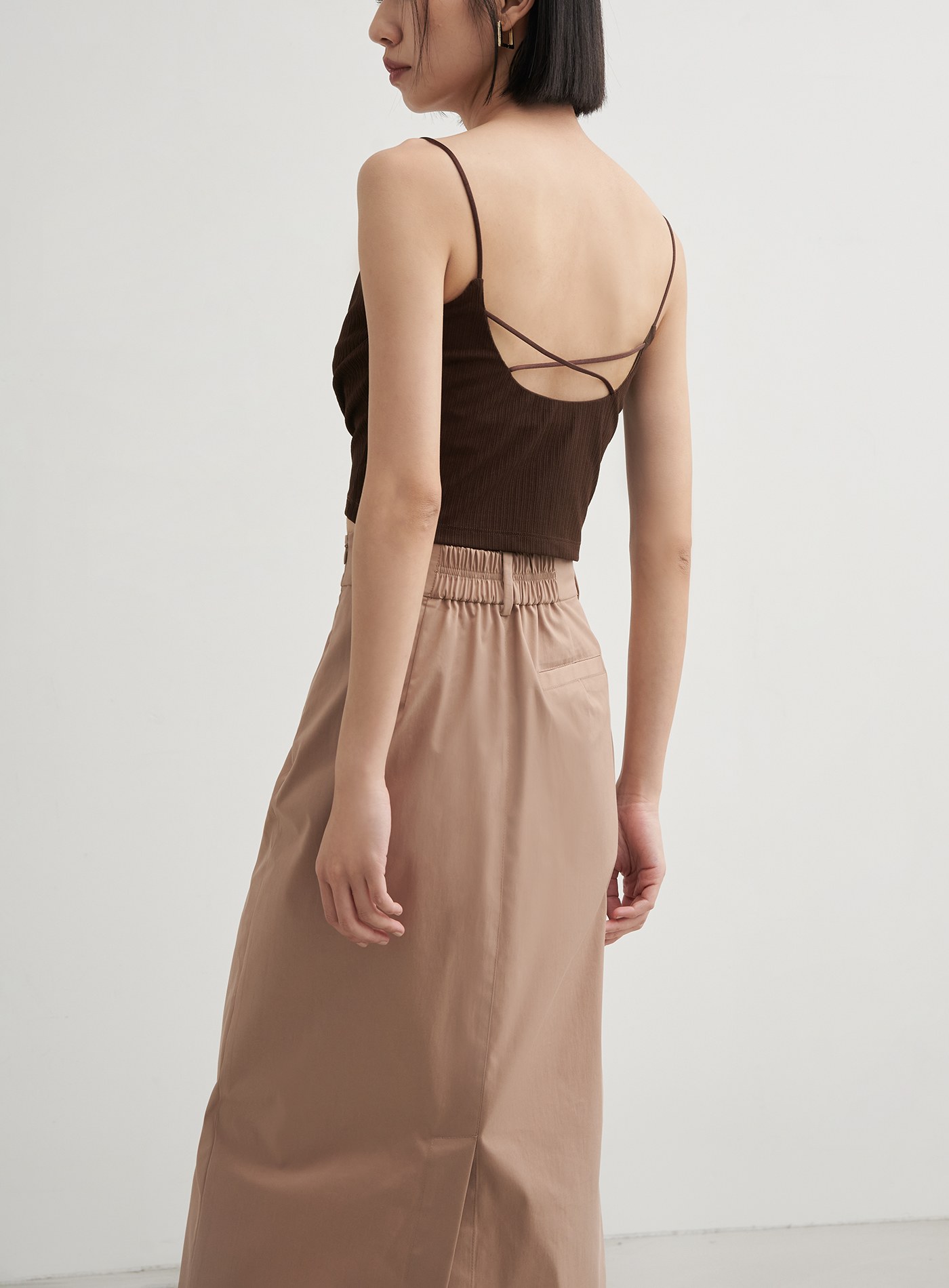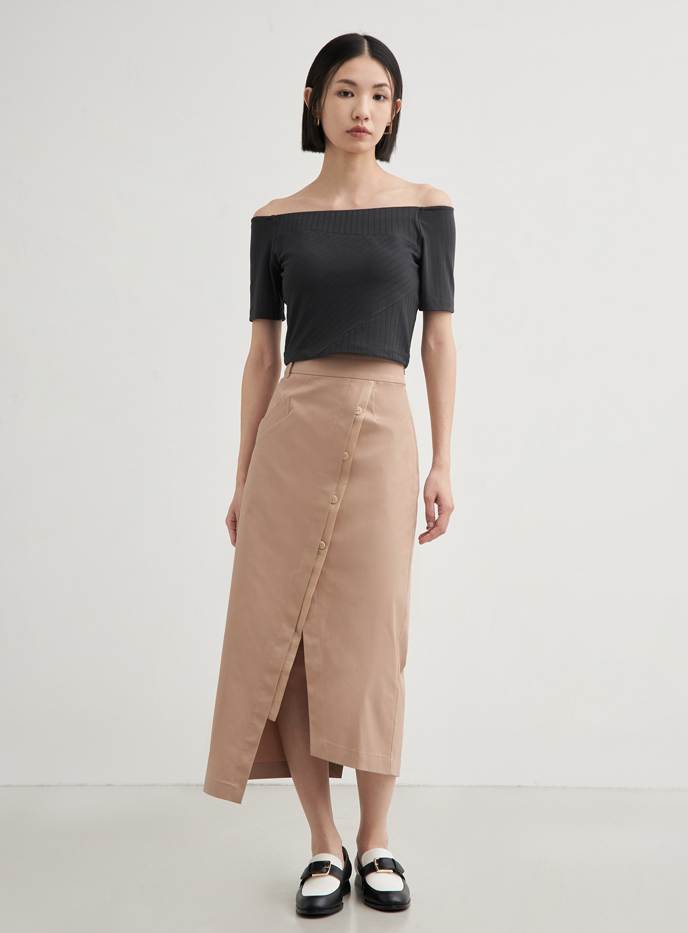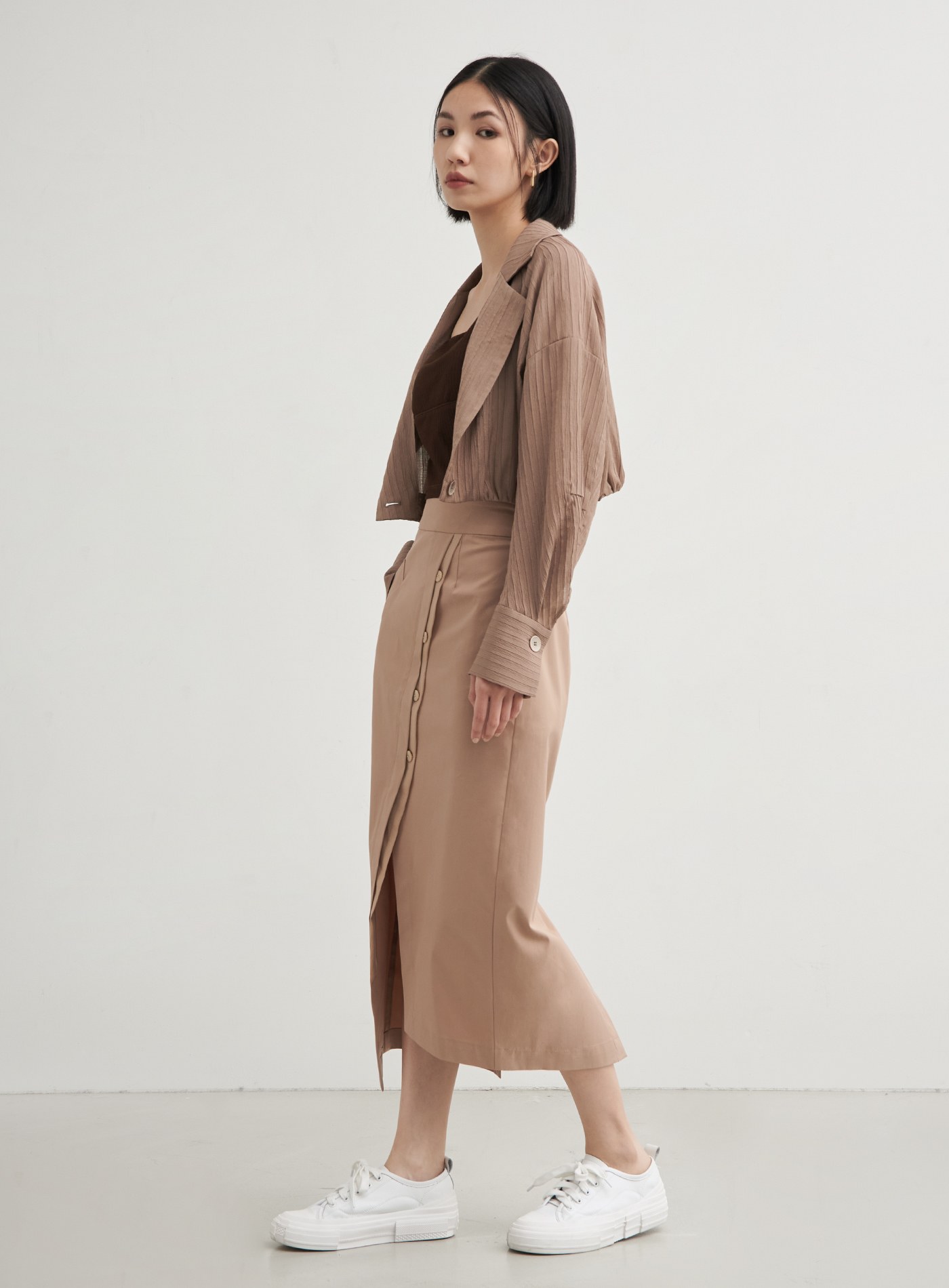 - H型直筒裙型,下擺不對稱開衩設計,拉伸視覺比例