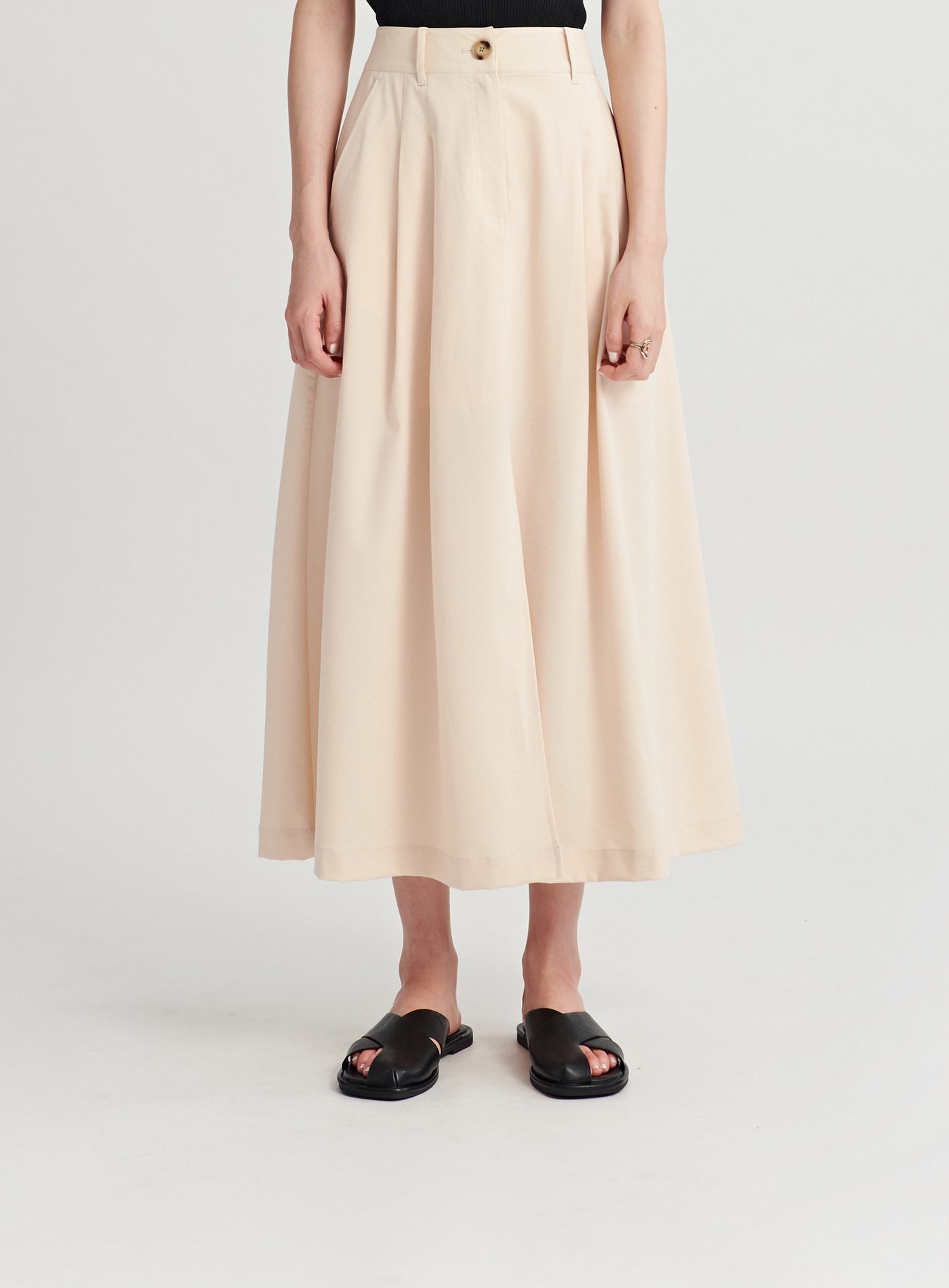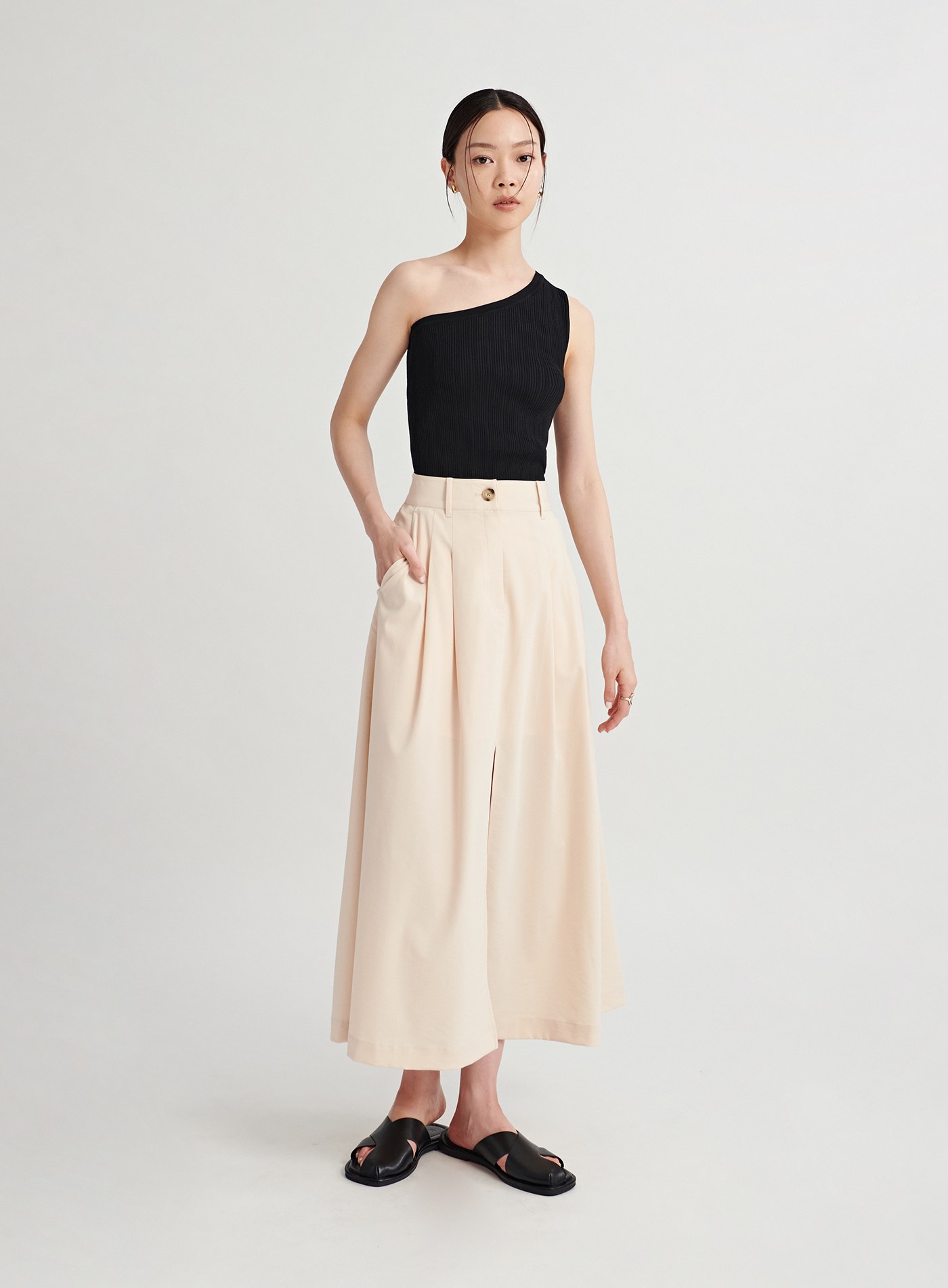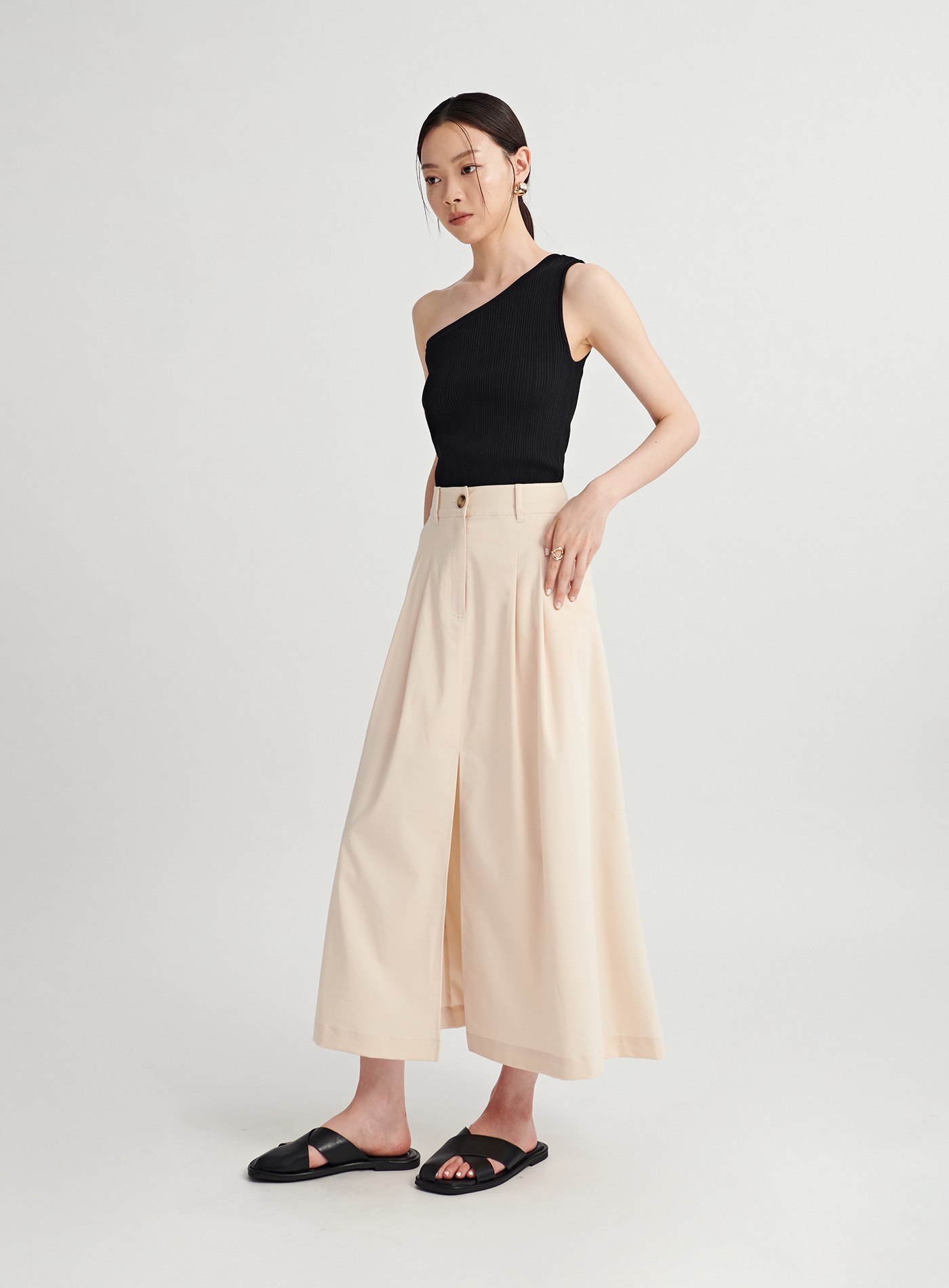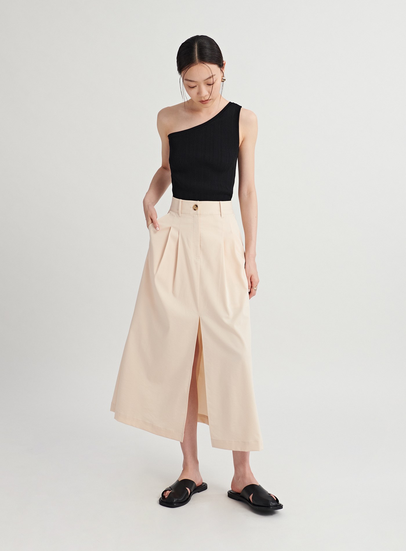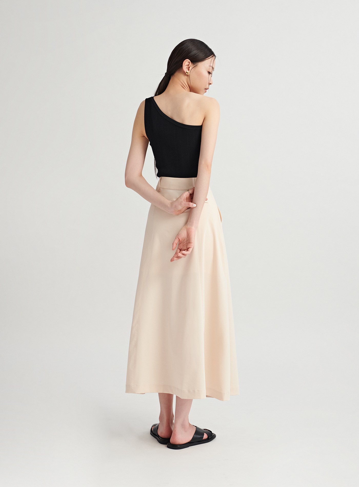 - 中高腰A字裙版型,極簡裙身剪裁,視覺提高腰線,拉身比例